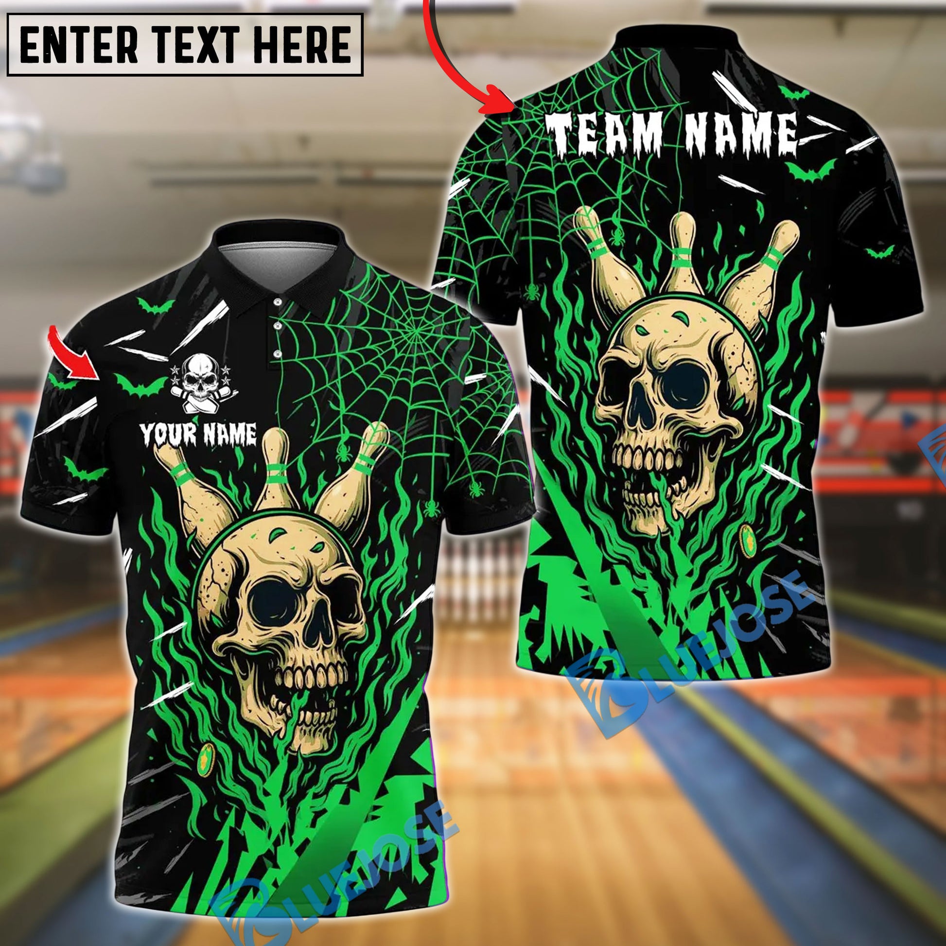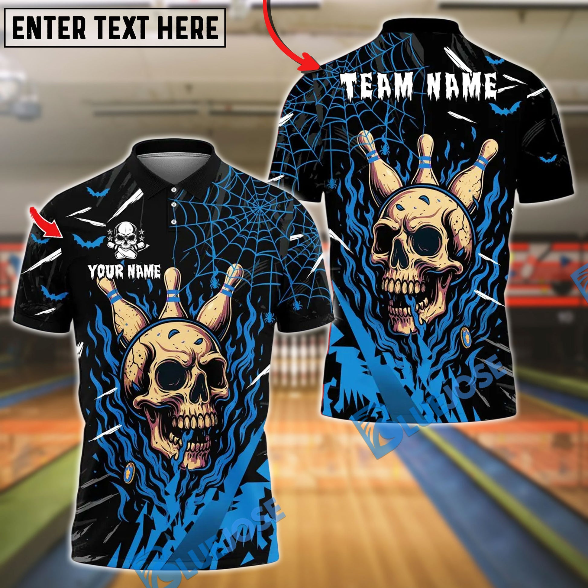 BlueJose Bowling And Pins Flame Bowling Skull Halloween Design Customized Name, Team Name 3D Shirt (4 Colors)