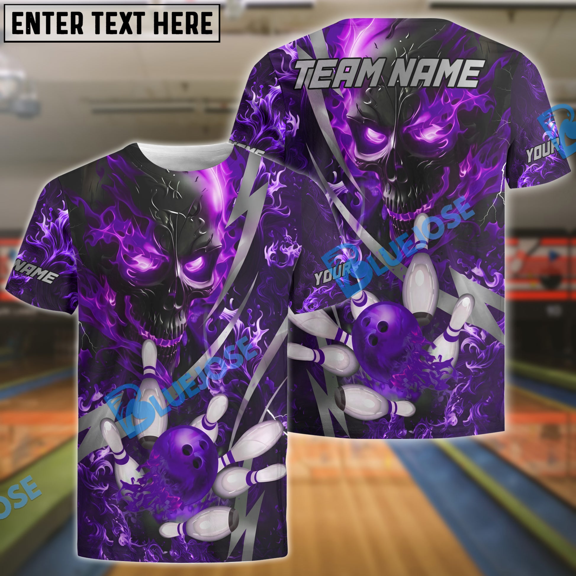BlueJose Bowling And Pins Flame Electric Skull Customized Name, Team Name 3D Shirt (4 Colors)