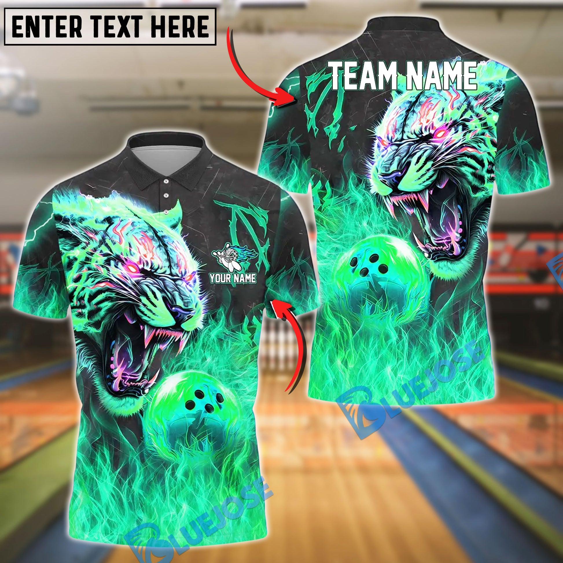BlueJose Bowling And Pins Flame Tiger King Customized Name, Team Name 3D Shirt (4 Colors)