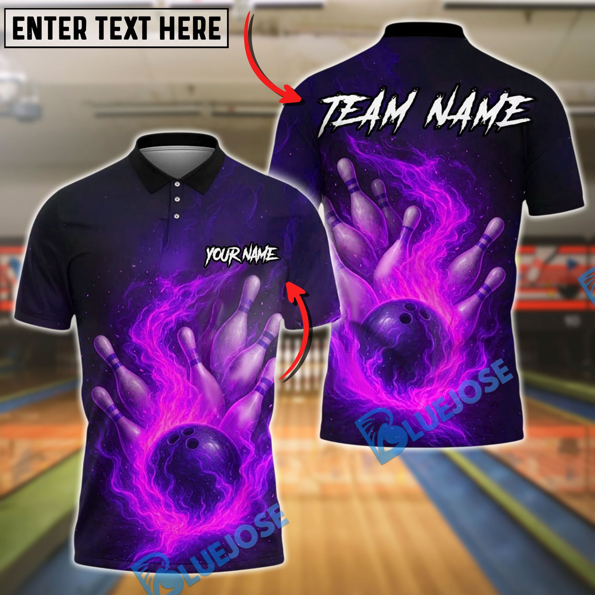 BlueJose Bowling And Pins Flaming Pins and Ball 2 Customized Name, Team Name 3D Shirt (4 Colors)