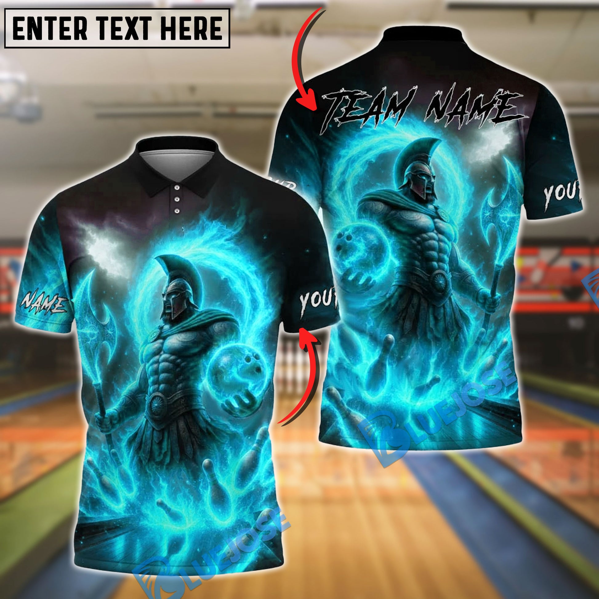BlueJose Bowling And Pins Flaming Spartan God of Fire Customized Name, Team Name 3D Shirt (4 Colors)