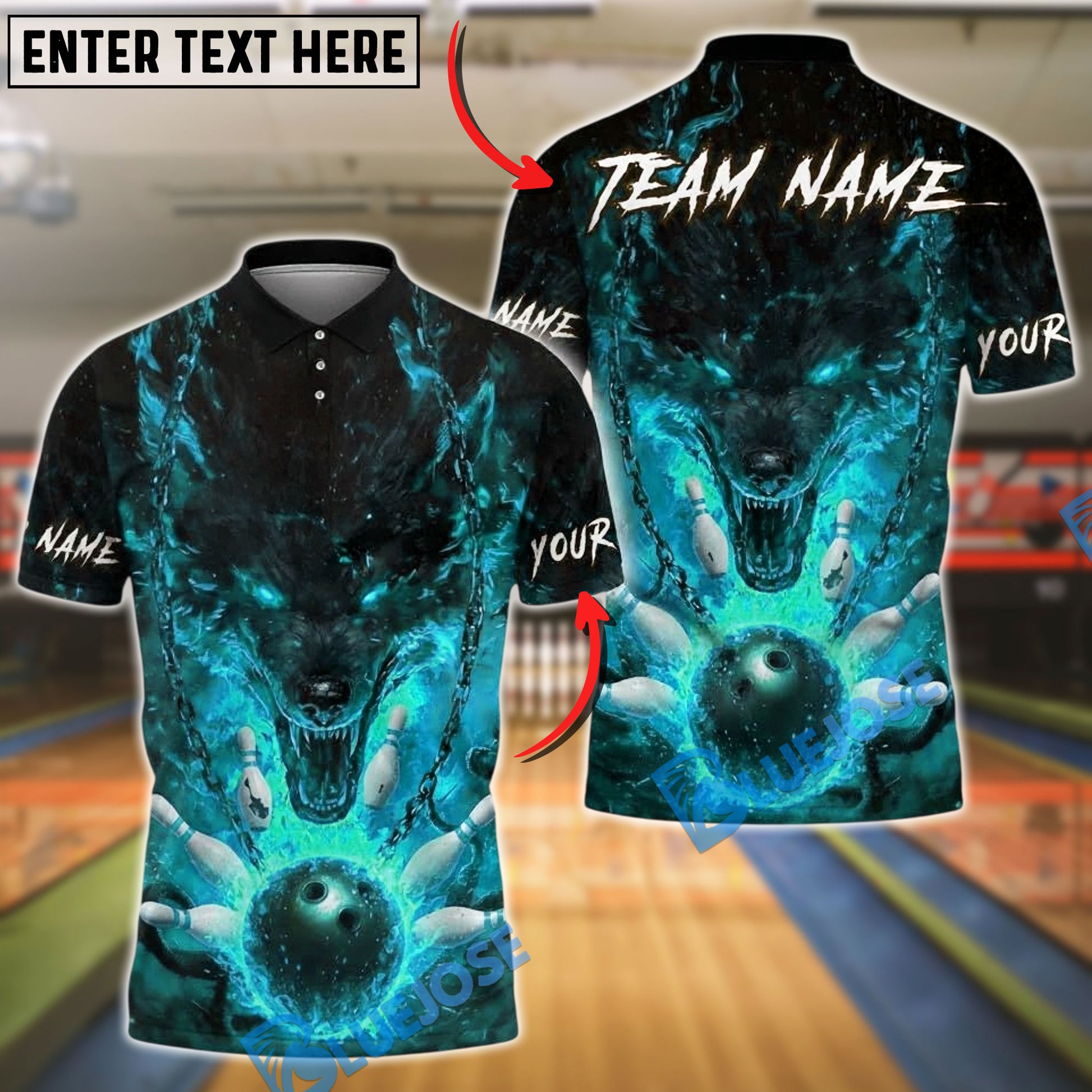 BlueJose Bowling And Pins Flaming Wolf Fire Ball Customized Name, Team Name 3D Shirt (4 Colors)
