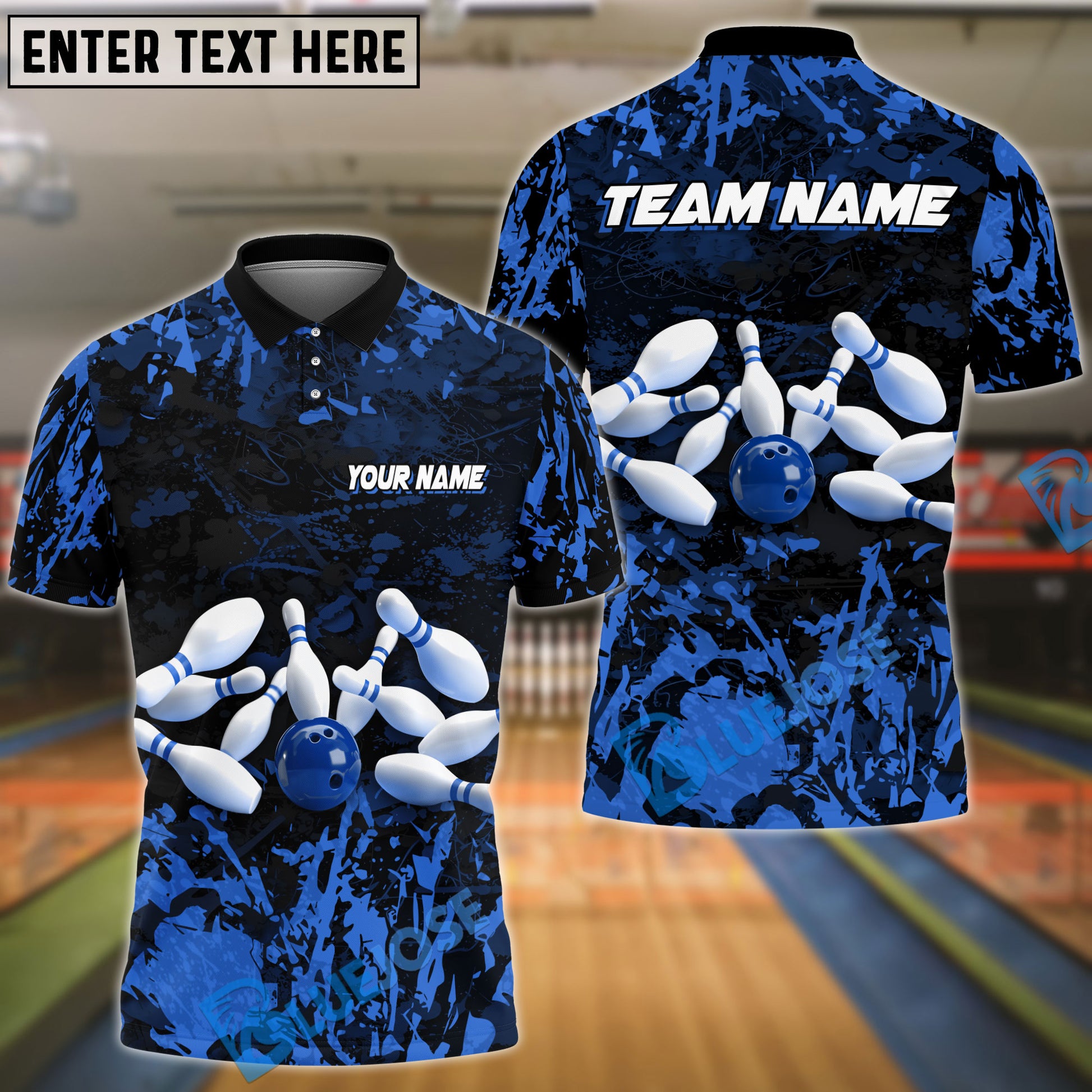 BlueJose Bowling and Pins Fly Ink Pattern Personalized Name, Team Name 3D Shirt (5 Colors)