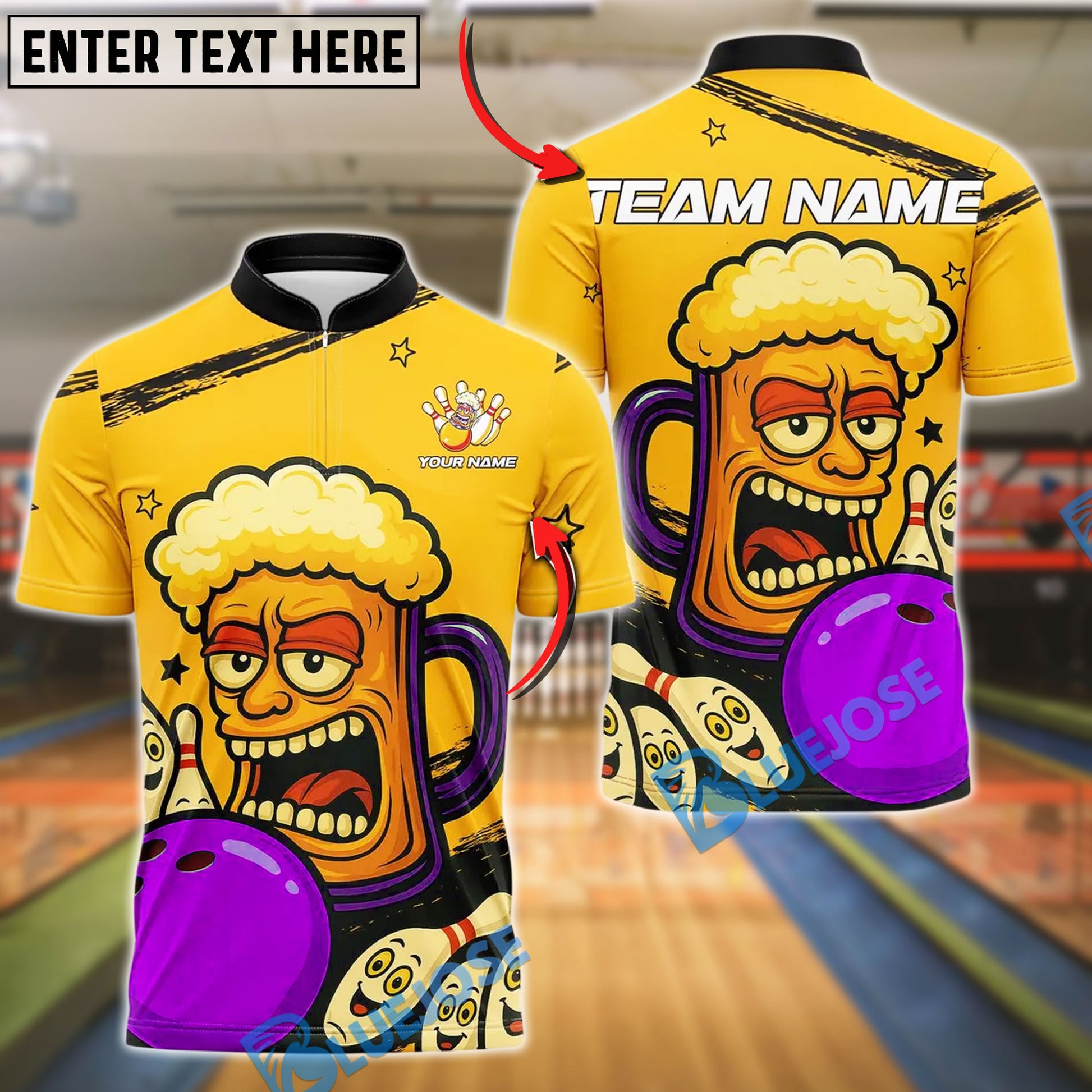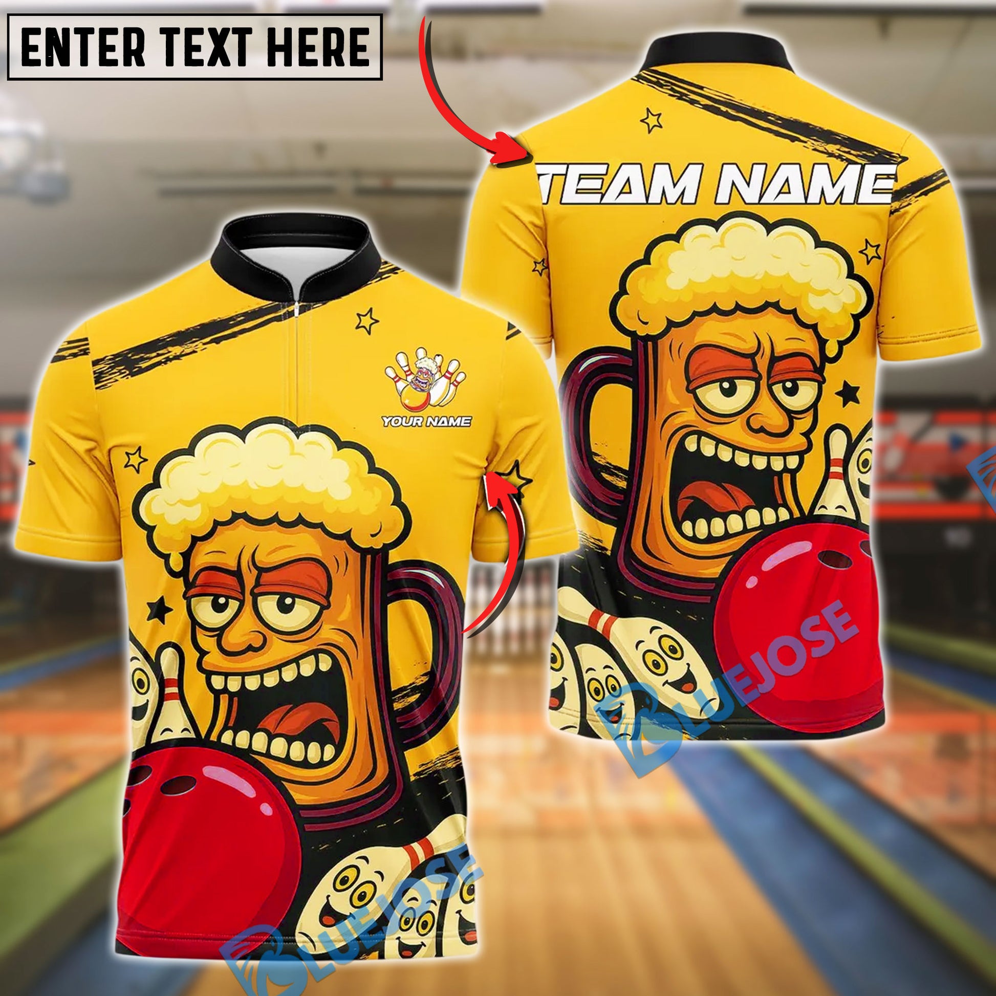 BlueJose Bowling And Pins Funny Beer Mug Customized Name, Team Name 3D Shirt (4 Colors)