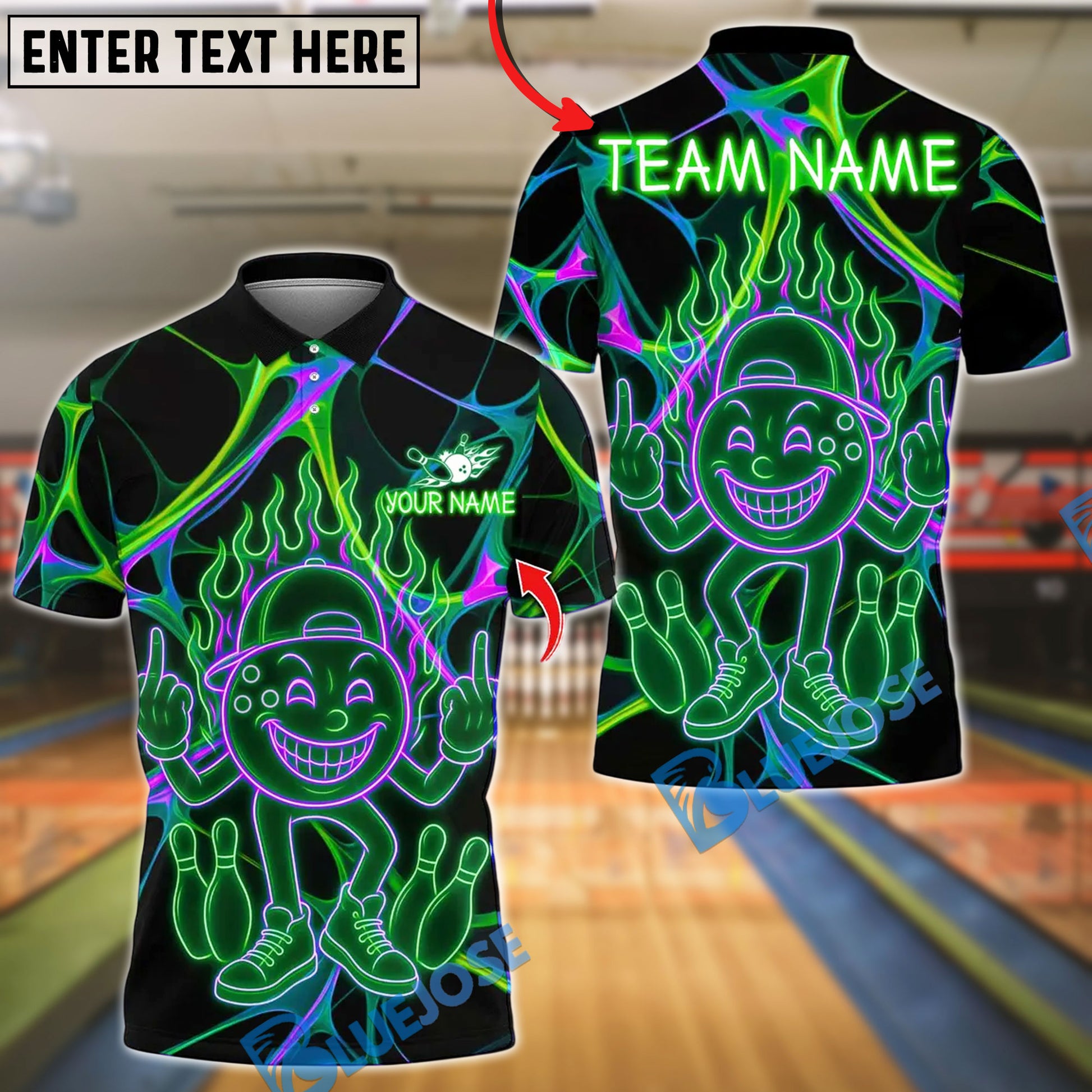 BlueJose Bowling And Pins Funny Neon Design Customized Name, Team Name 3D Shirt (4 Colors)