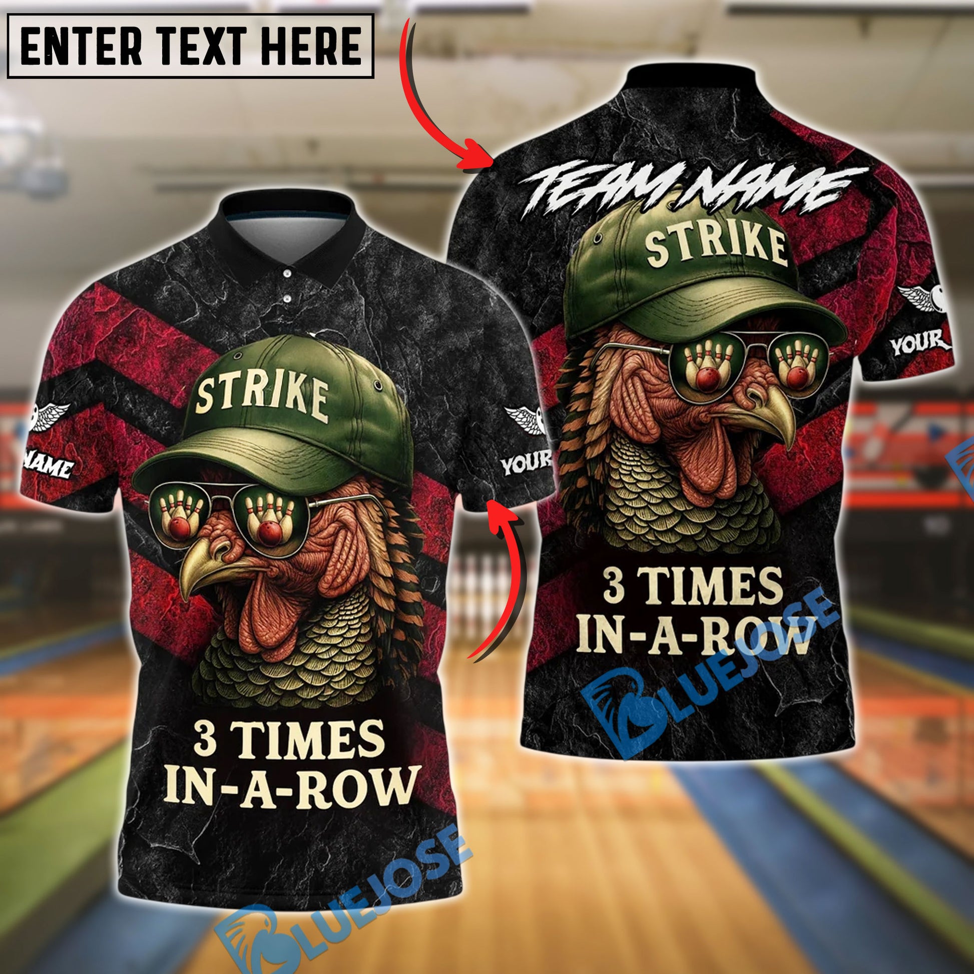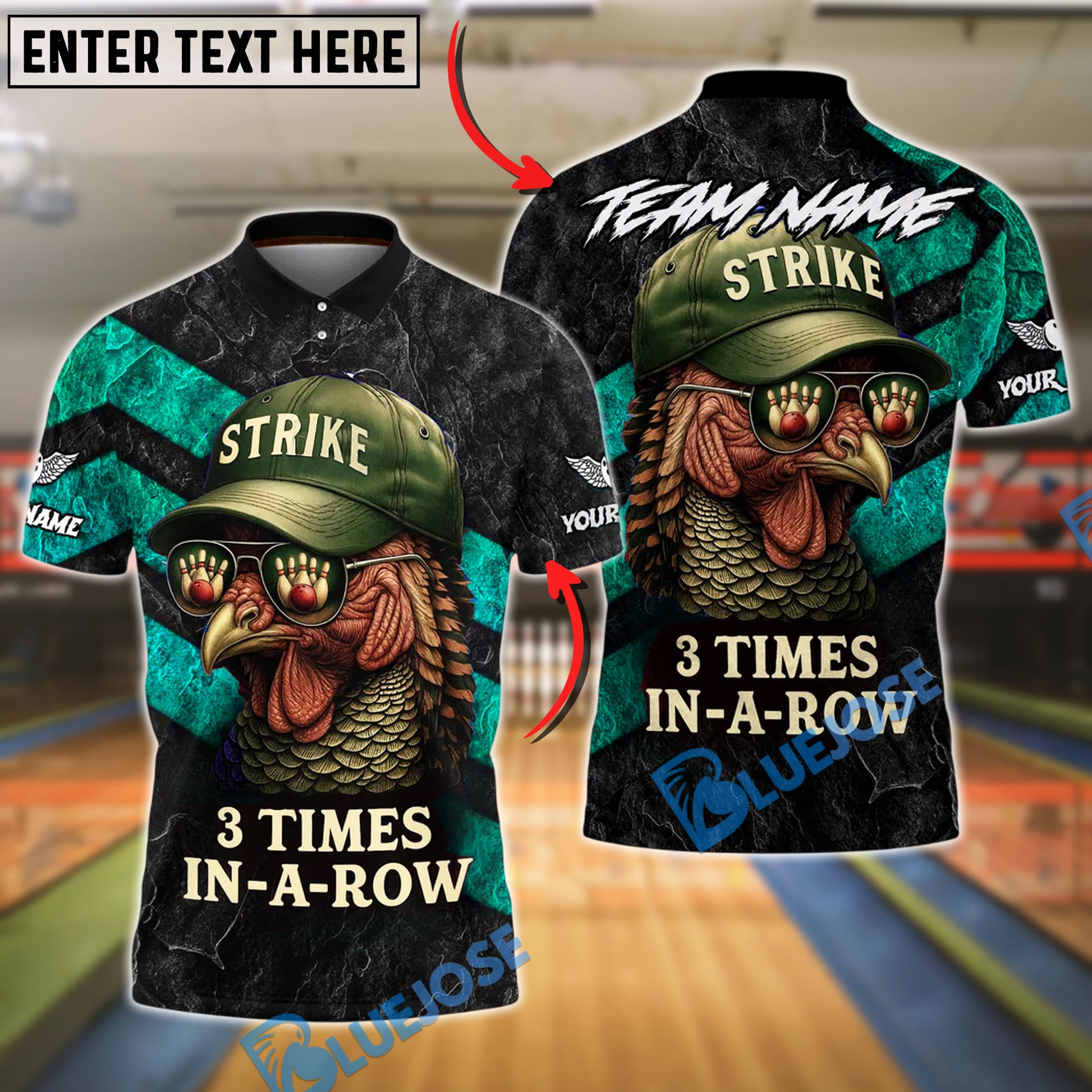 BlueJose Bowling And Pins Funny Turkey Strike Customized Name, Team Name 3D Shirt (4 Colors)