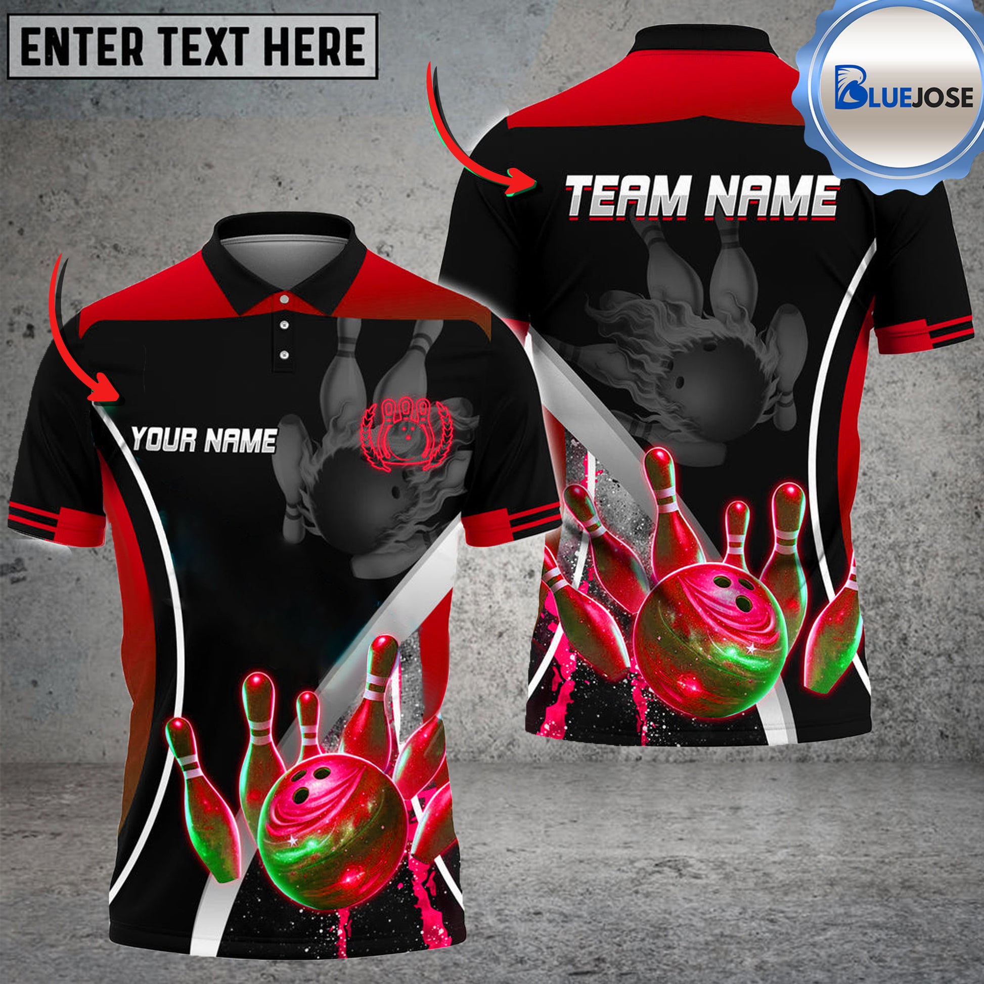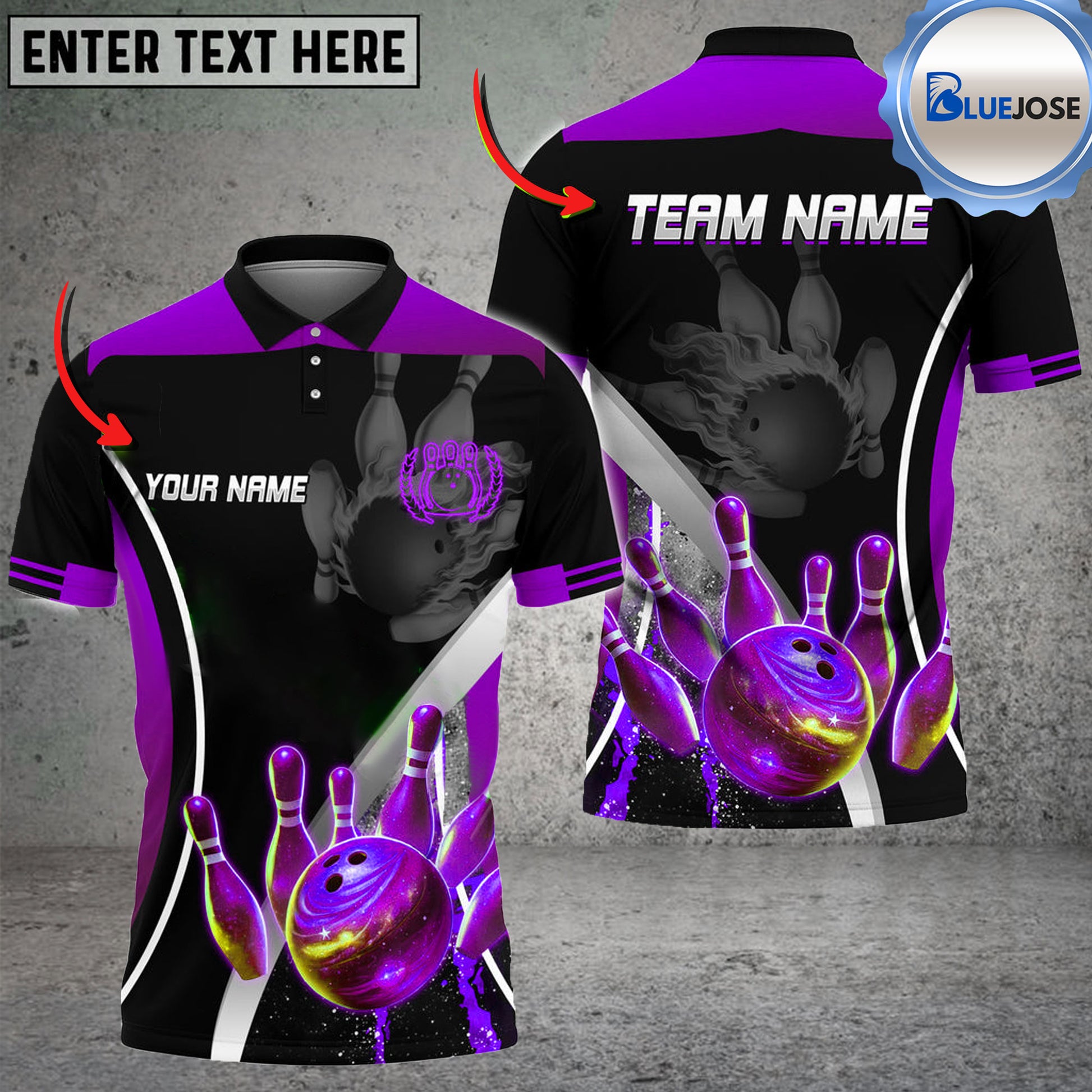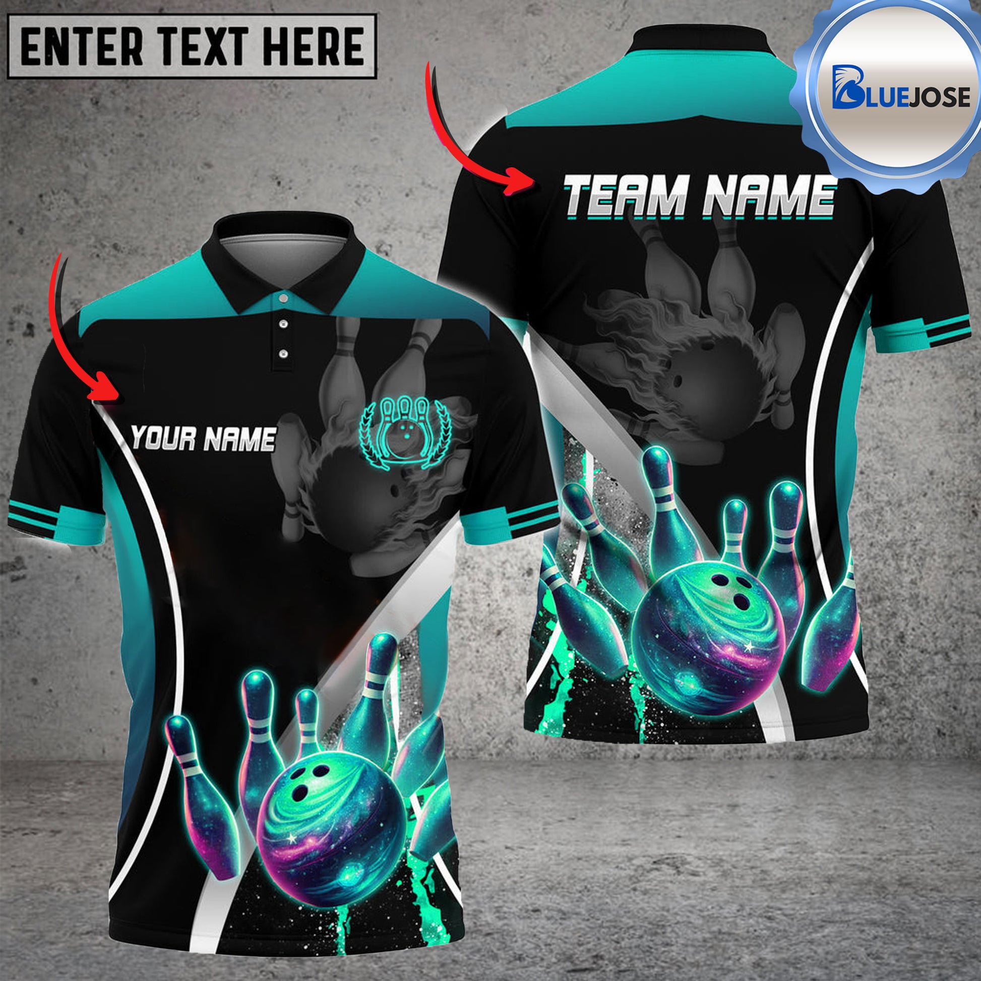 BlueJose Bowling And Pins Galaxy Sport Customized Name 3D Shirt (4 Colors)