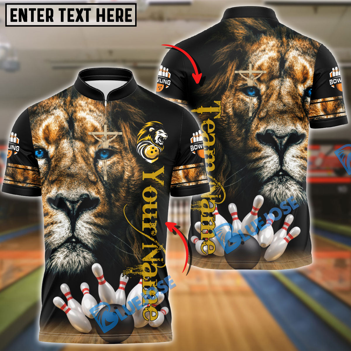 BlueJose Bowling And Pins God Jesus Lion Customized Name, Team Name 3D Shirt
