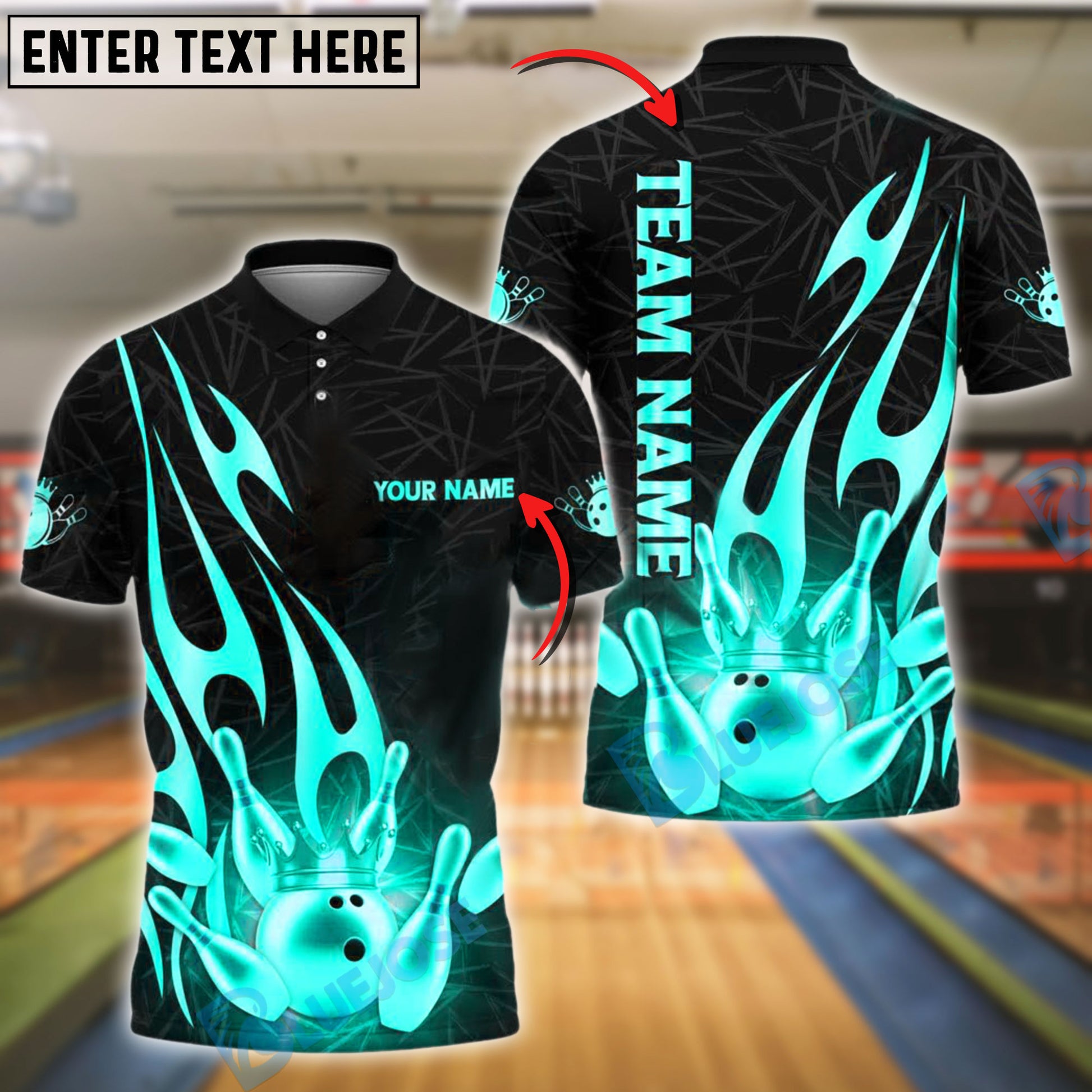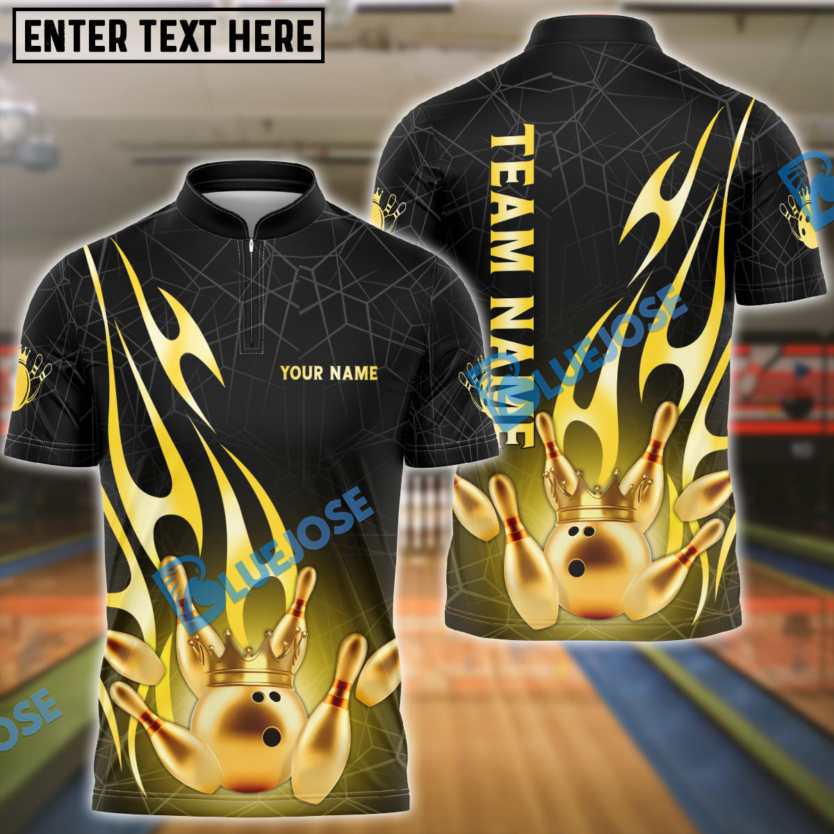 BlueJose Bowling And Pins Gold Flame Crown Design Royal Style Customized Name, Team Name 3D Shirt (4 Colors)