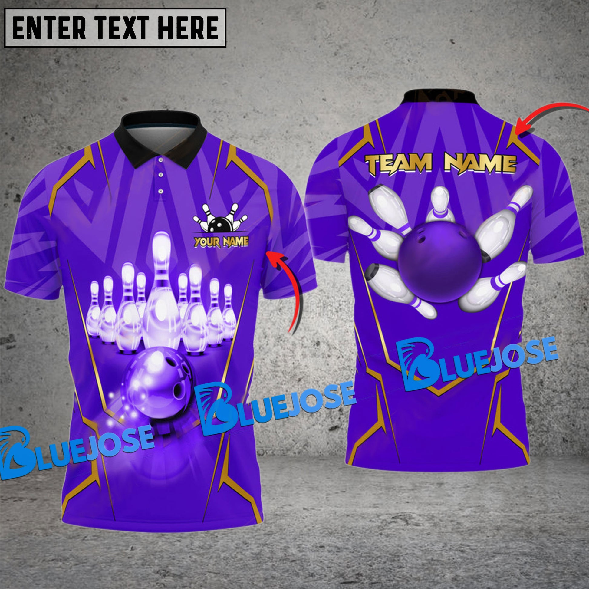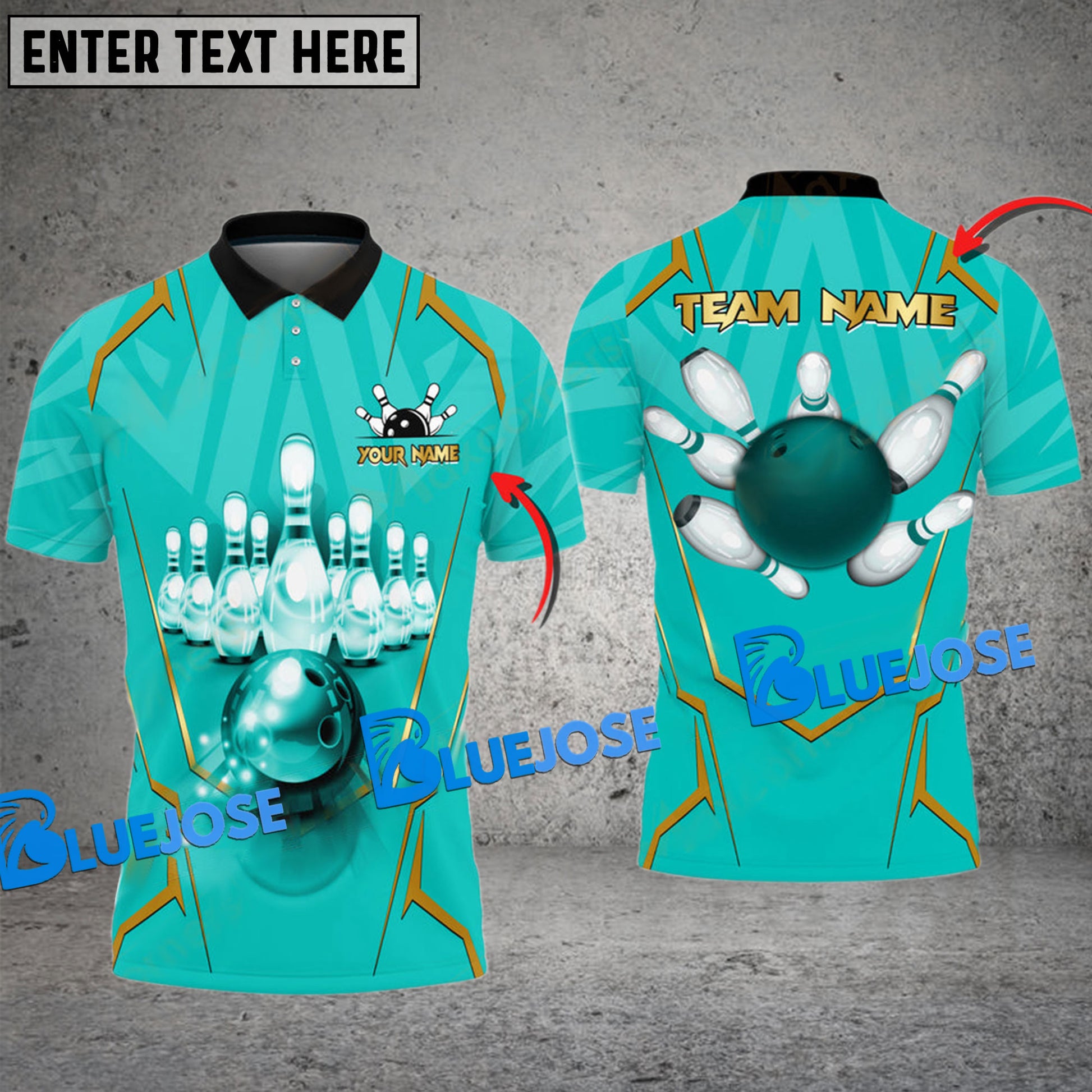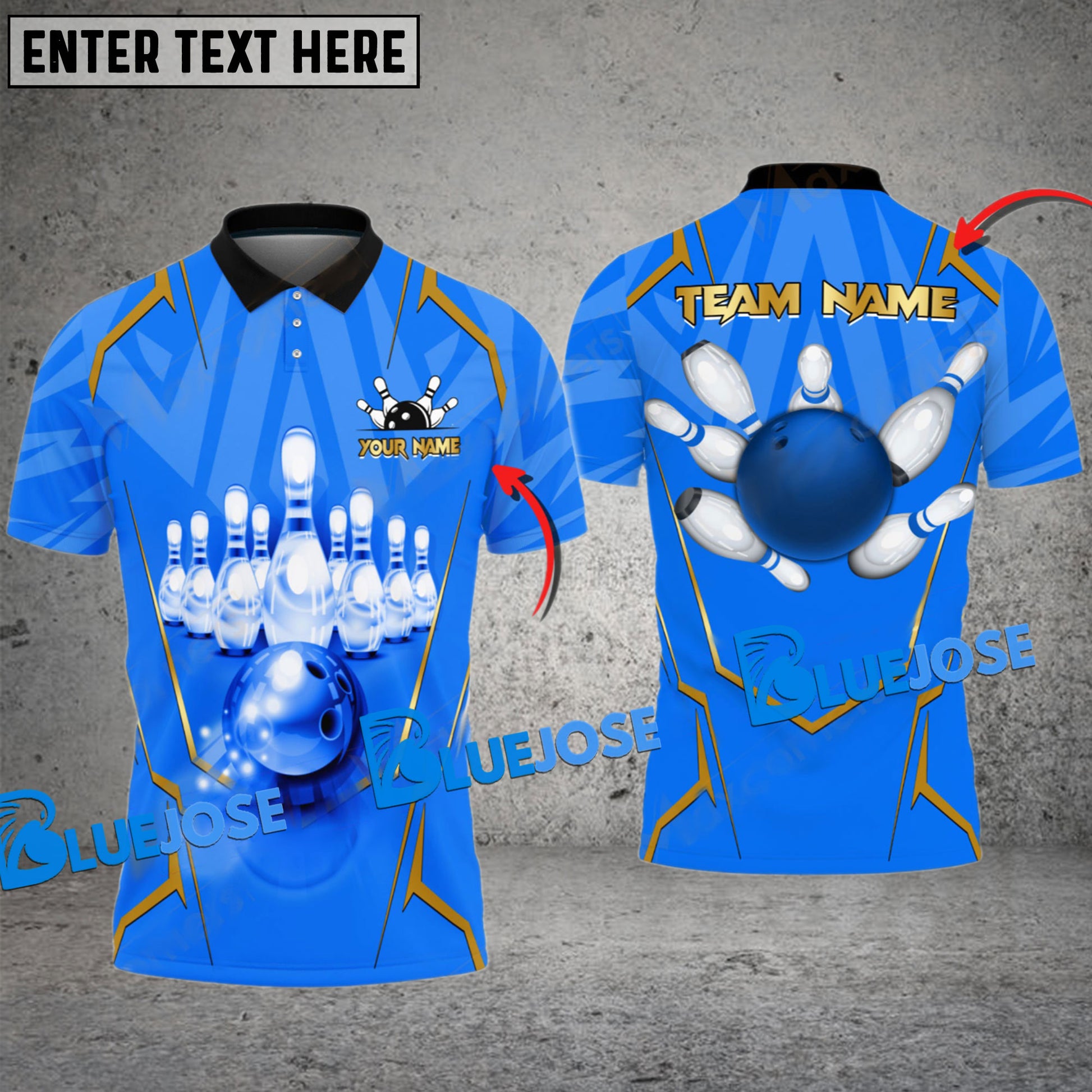 BlueJose Bowling And Pins Gold Line Customized Name 3D Shirt (4 Colors)