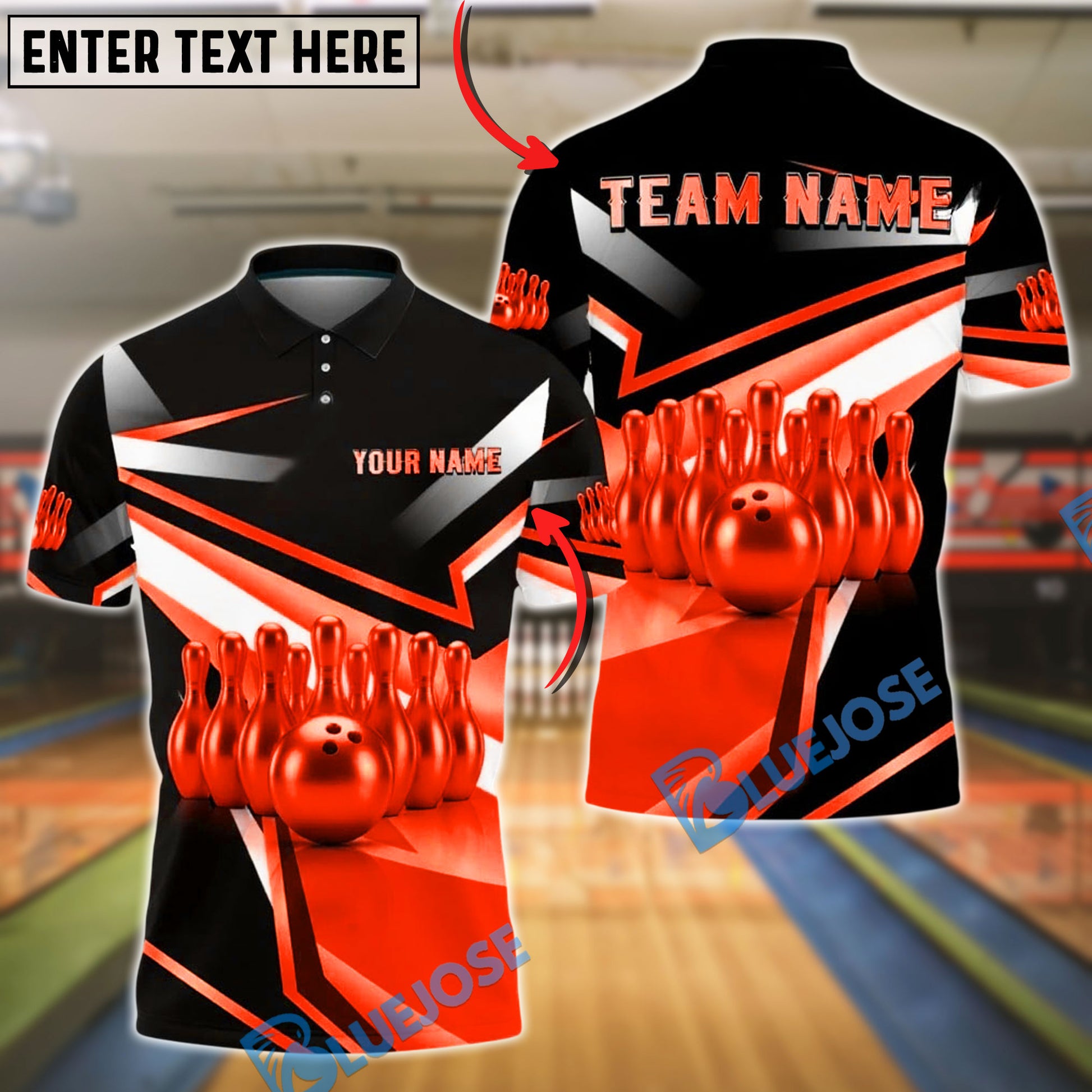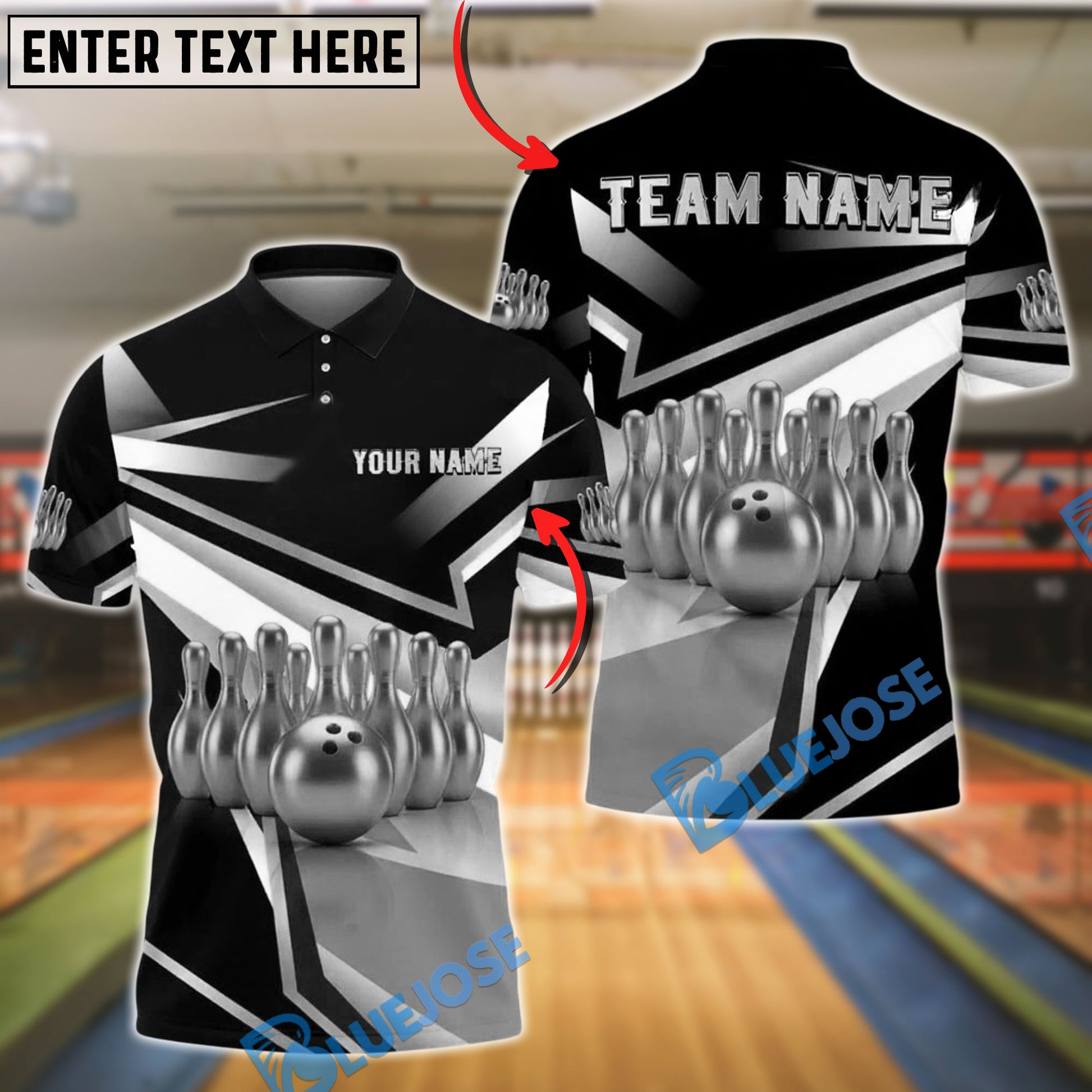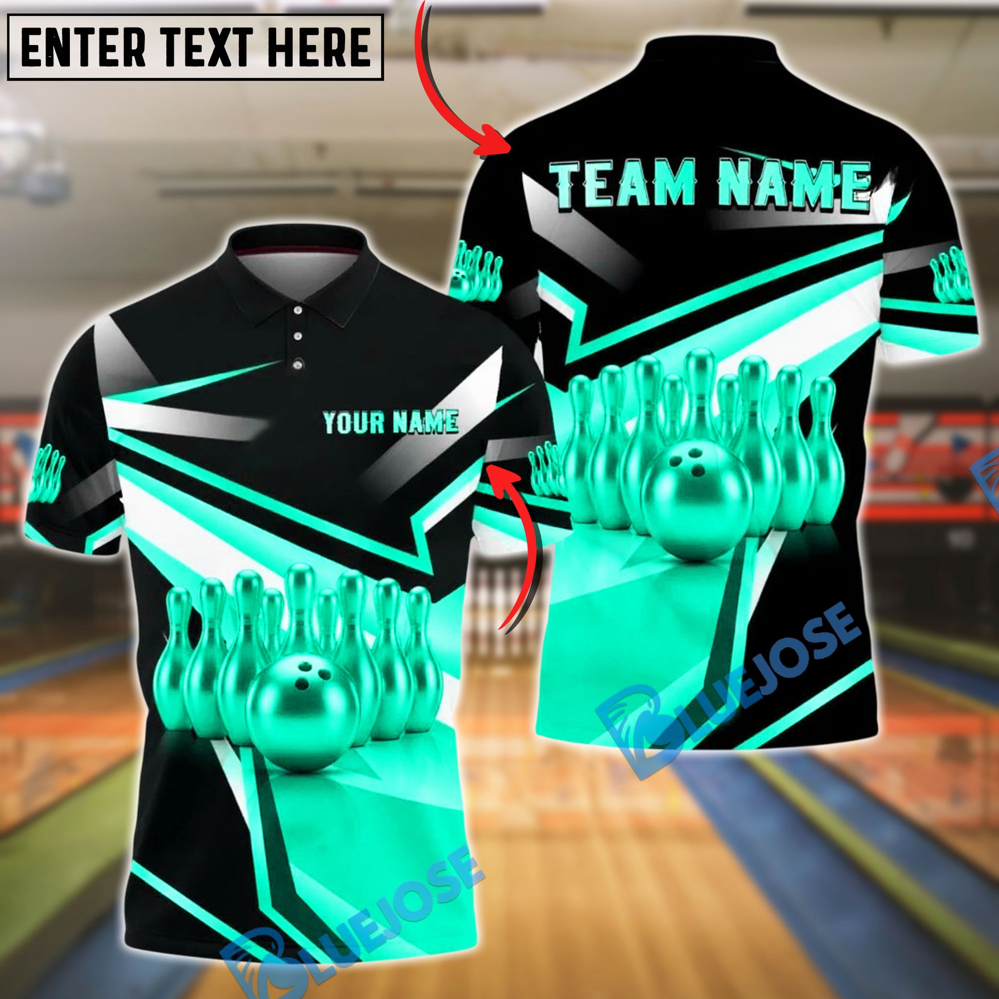 BlueJose Bowling And Pins Gold Metallic 3D Design Customized Name, Team Name 3D Shirt (6 Colors)