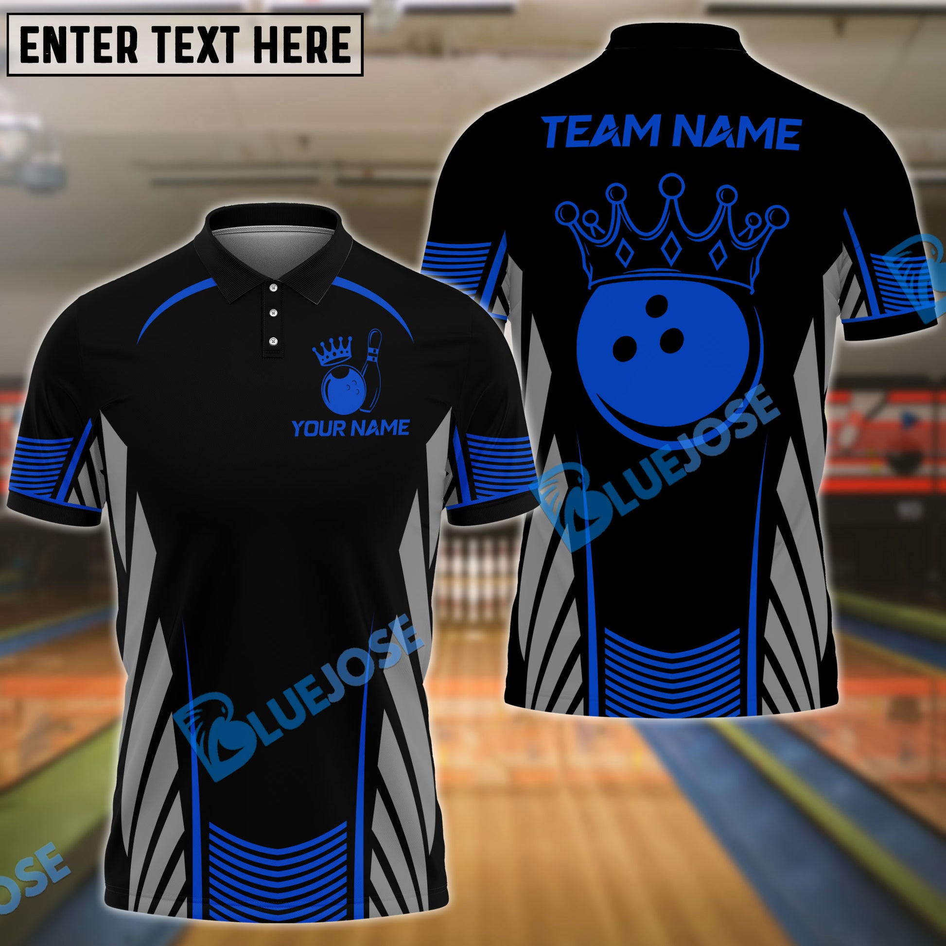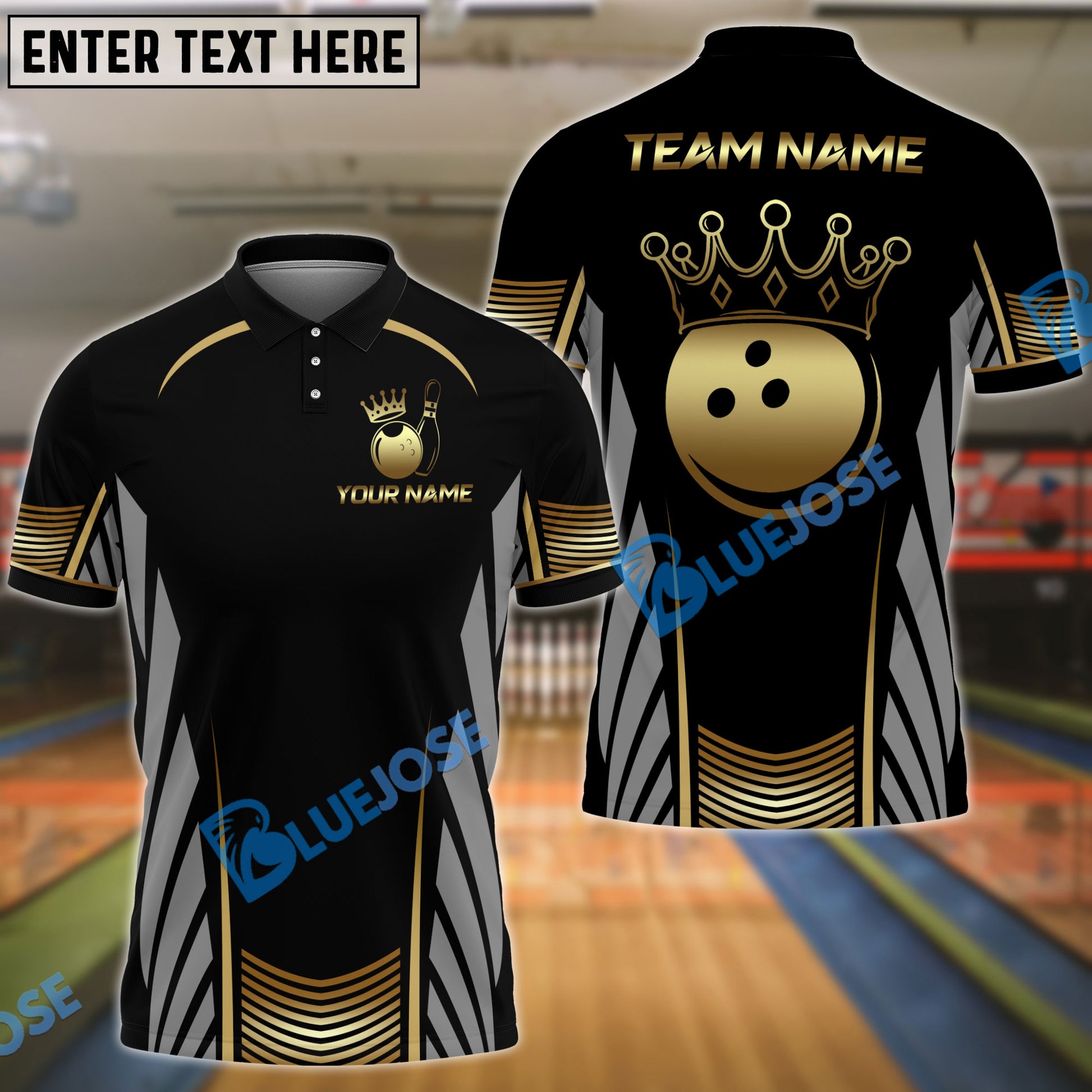 BlueJose Bowling And Pins Golden Crown Design Customized Name, Team Name 3D Shirt (4 Colors)