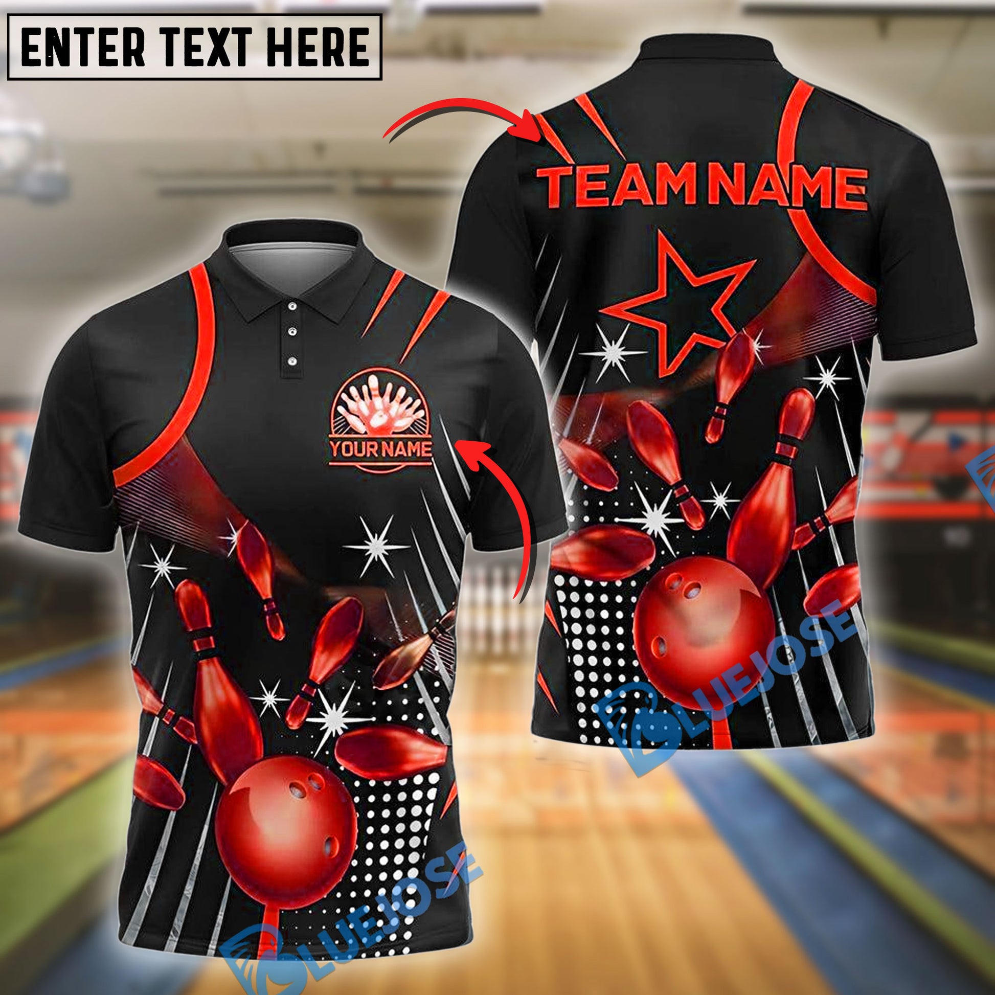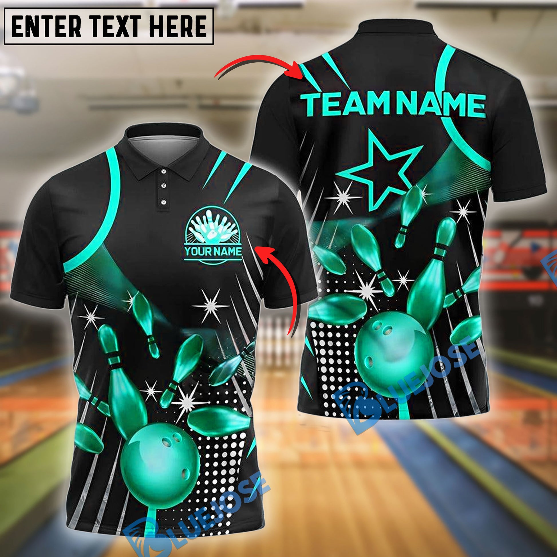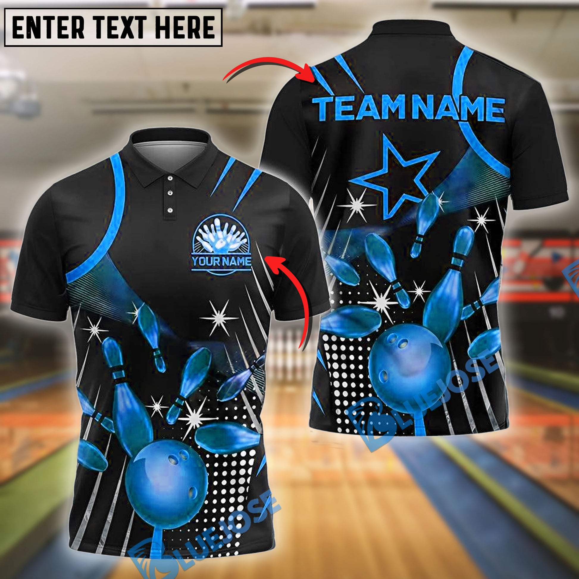 BlueJose Bowling And Pins Golden Star Style Customized Name, Team Name 3D Shirt (4 Colors)
