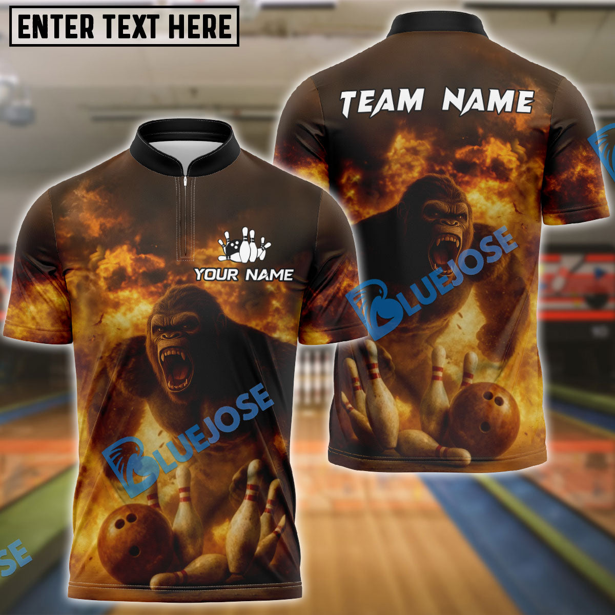 BlueJose Bowling And Pins Gorilla Flame Customized Name, Team Name 3D Shirt (4 Colors)