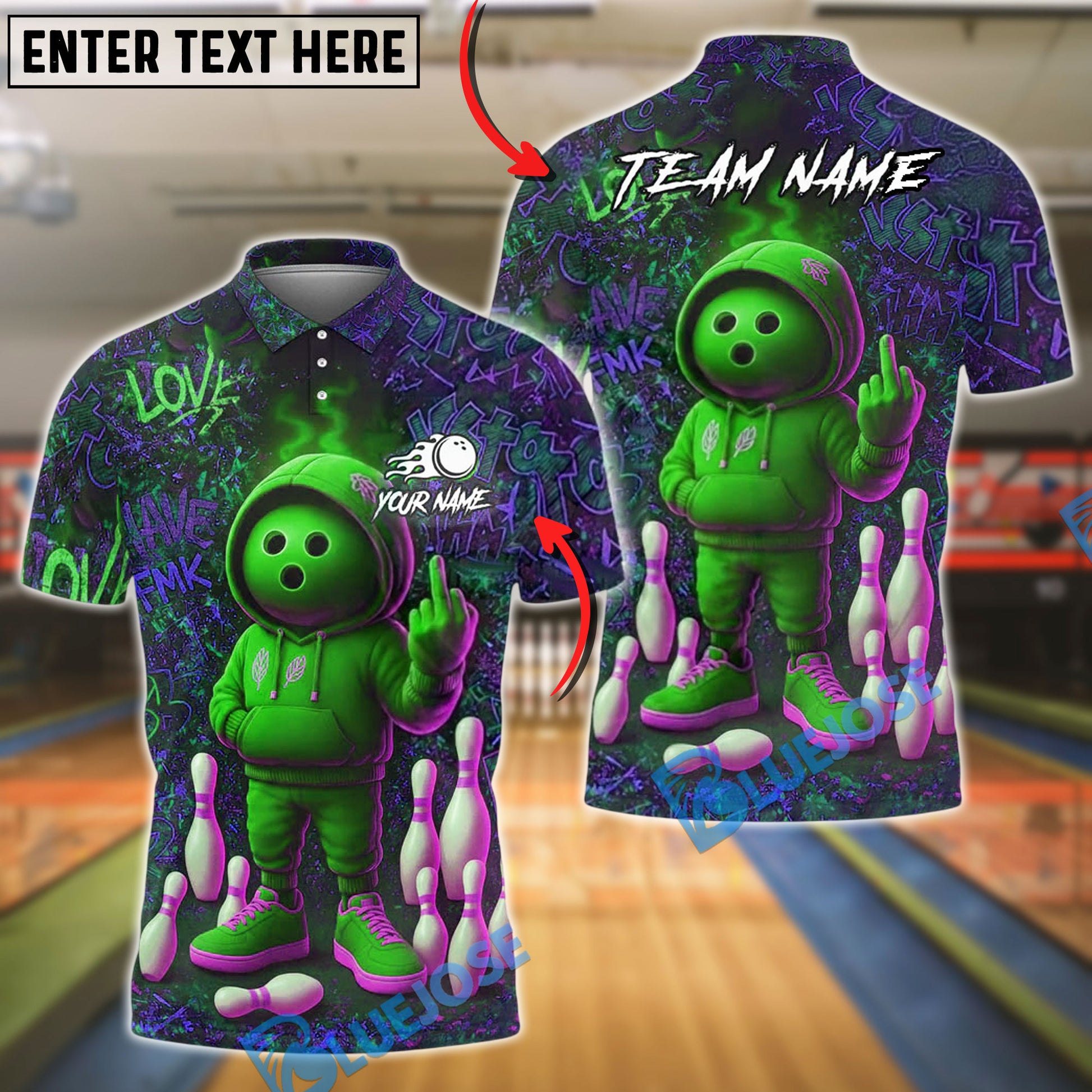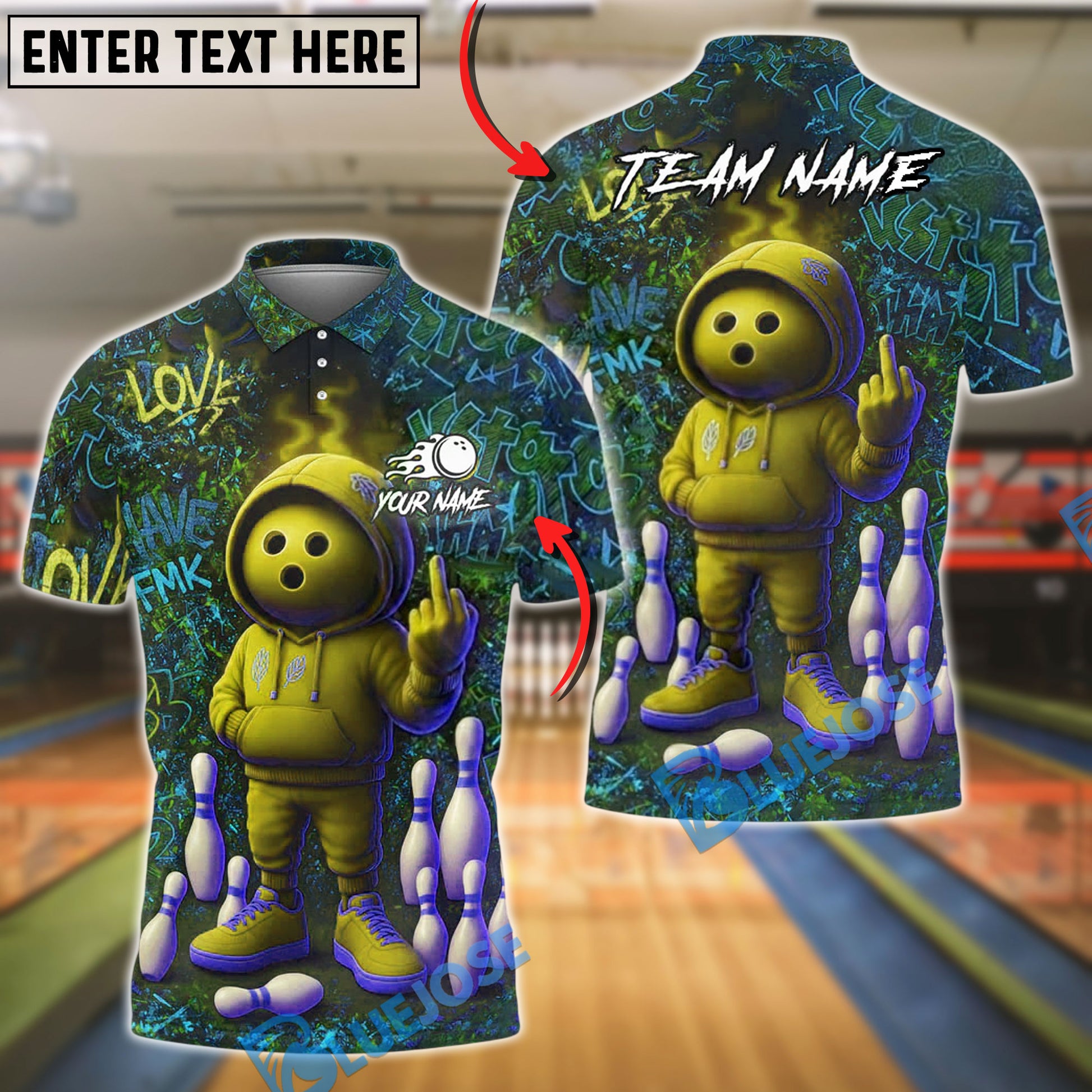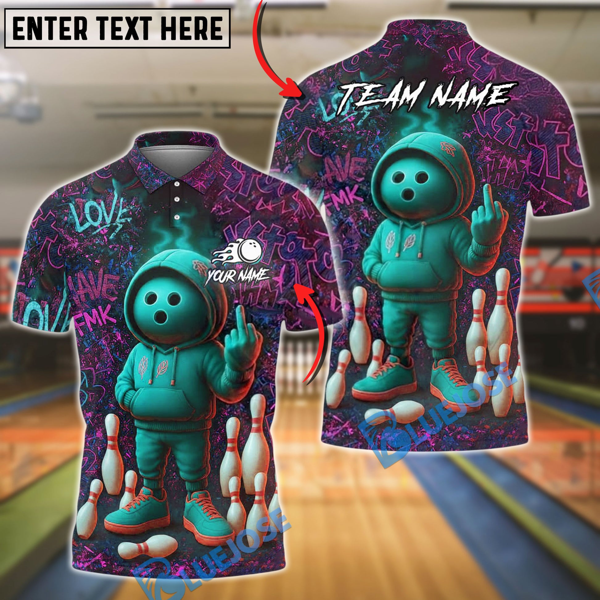 BlueJose Bowling And Pins Graffiti Attitude Dude Customized Name, Team Name 3D Shirt (6 Colors)