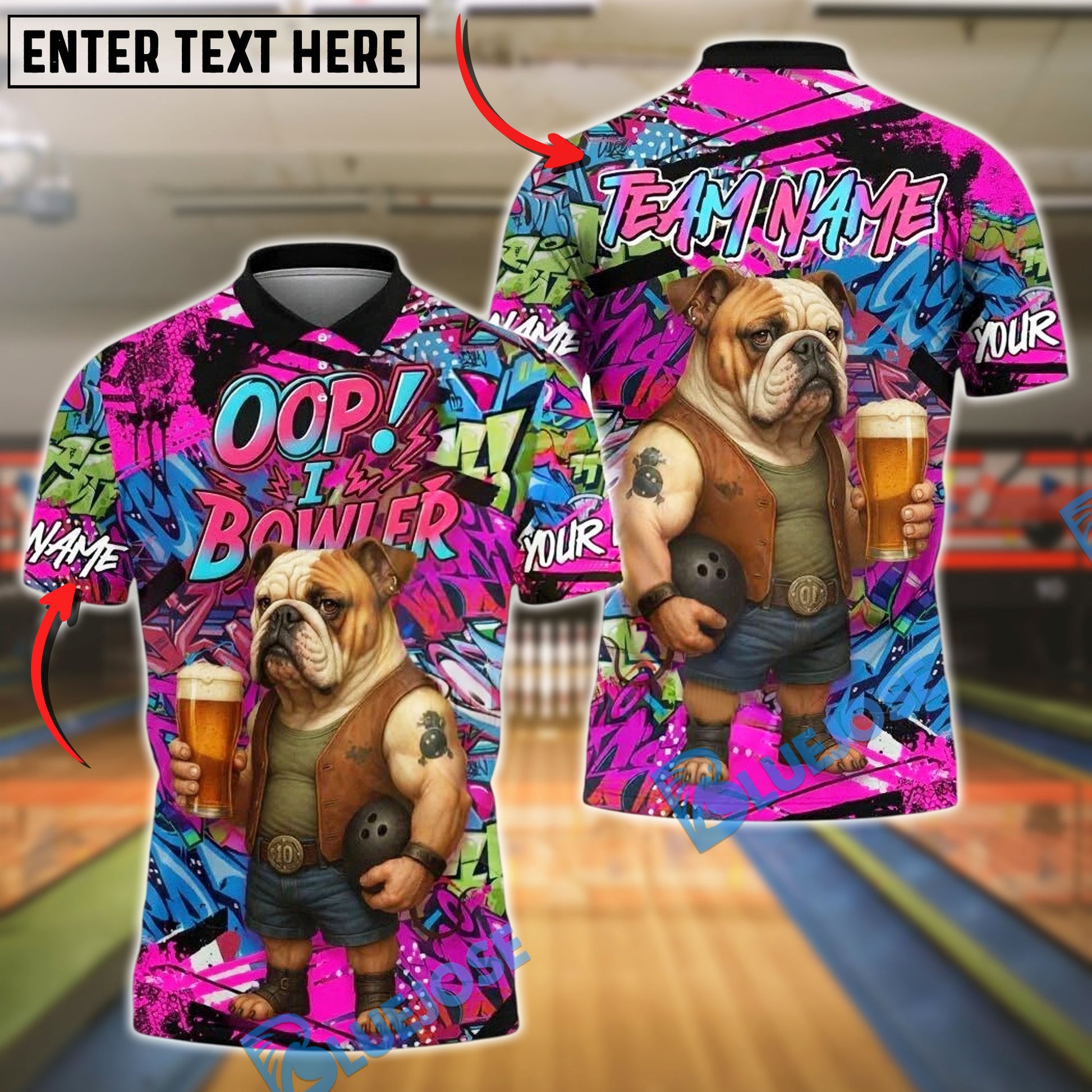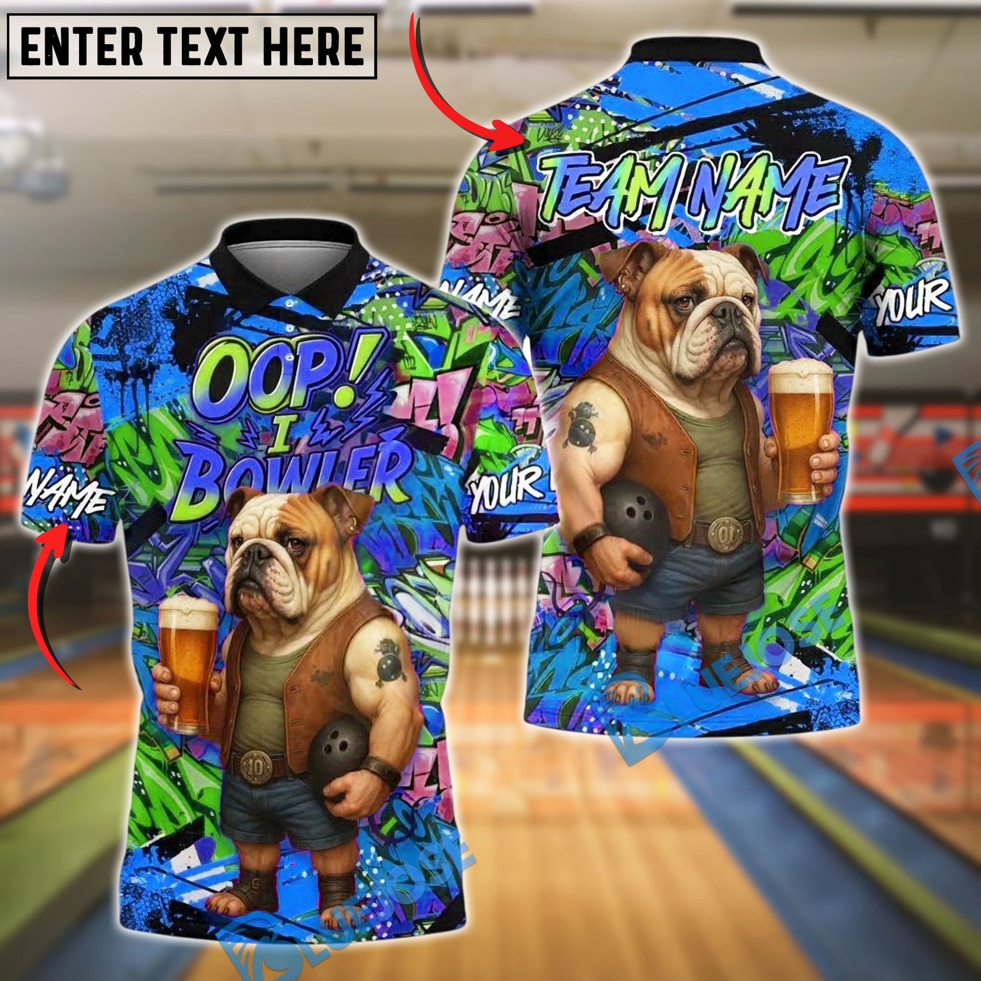BlueJose Bowling And Pins Graffiti Beer Bulldog I Bowled Customized Name, Team Name 3D Shirt (4 Colors)