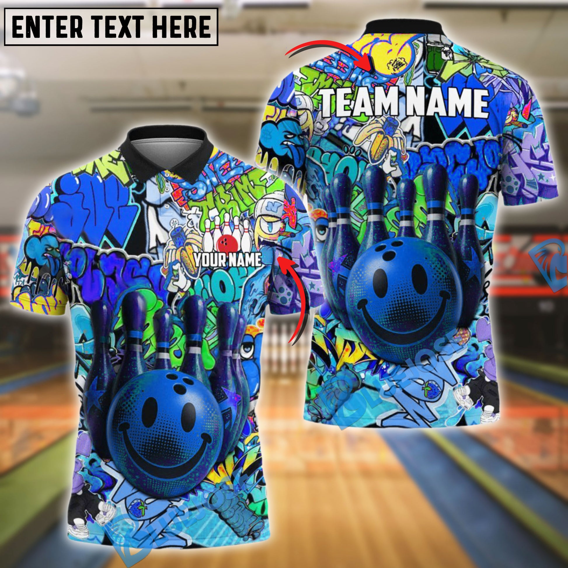 BlueJose Bowling And Pins Graffiti Funny Smiley Customized Name, Team Name 3D Shirt (4 Colors)