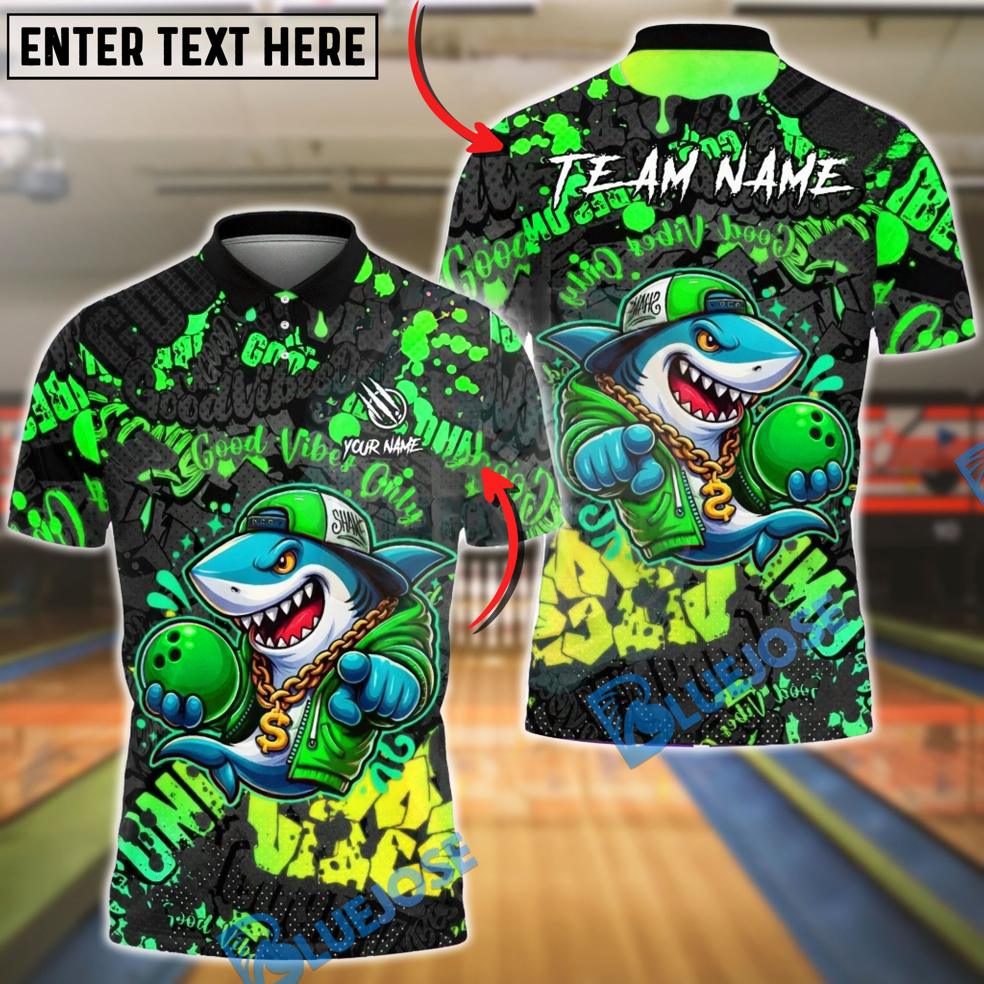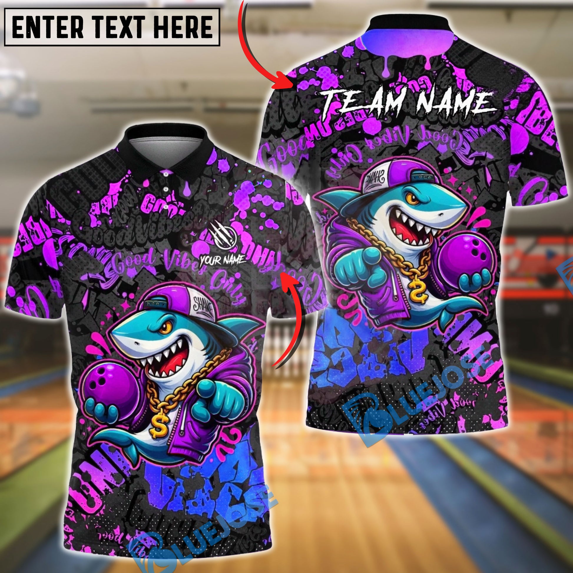 BlueJose Bowling And Pins Graffiti Shark Street Art Graphic Customized Name, Team Name 3D Shirt (4 Colors)