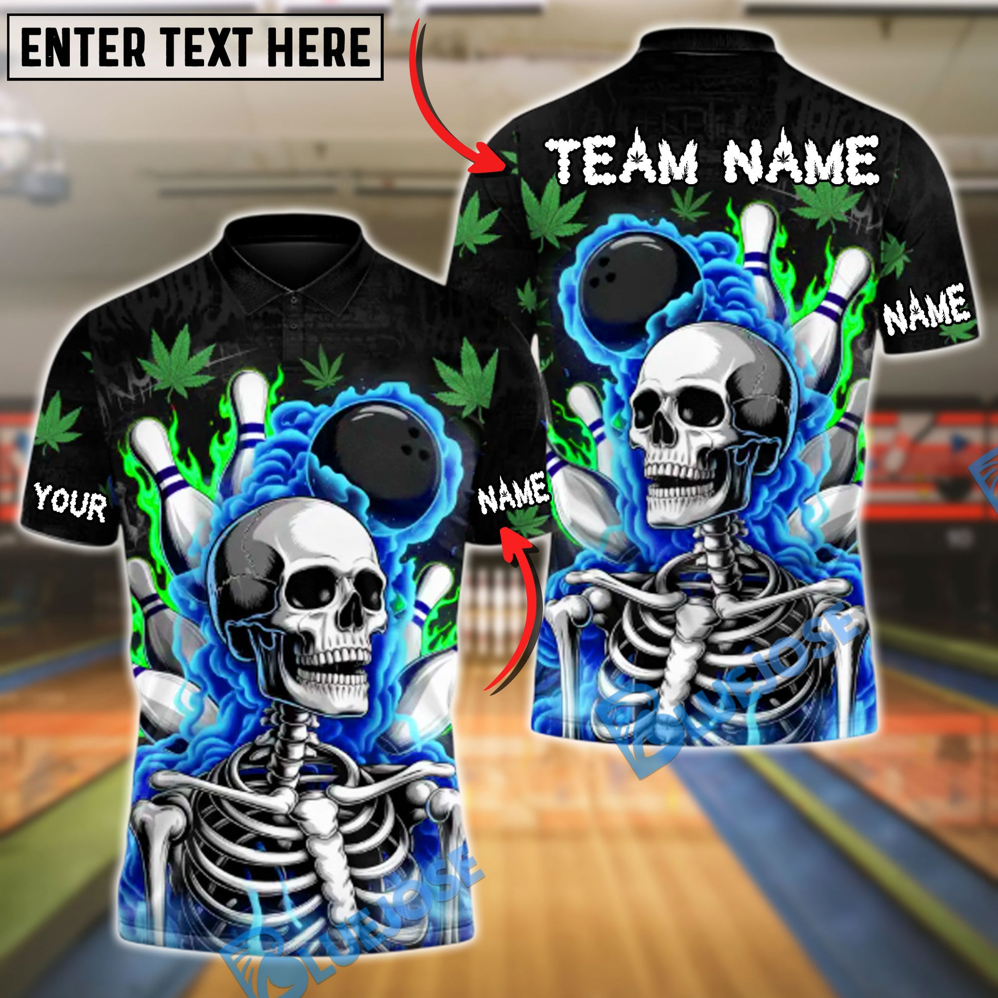 BlueJose Bowling And Pins High Rollers Skull 420 Customized Name, Team Name 3D Shirt (4 Colors)