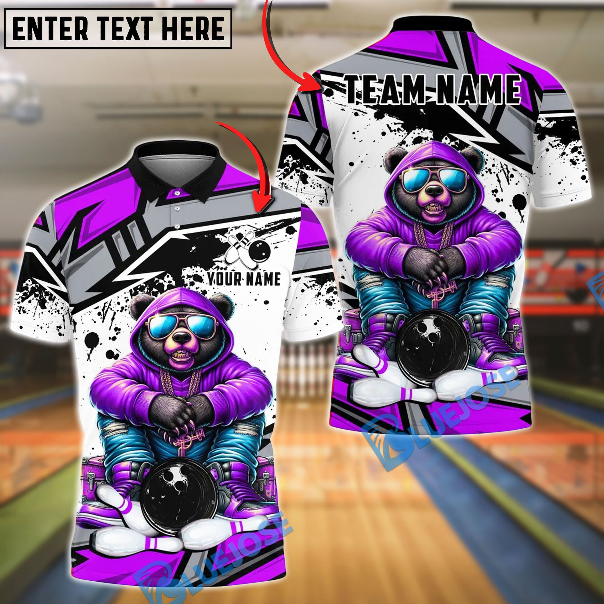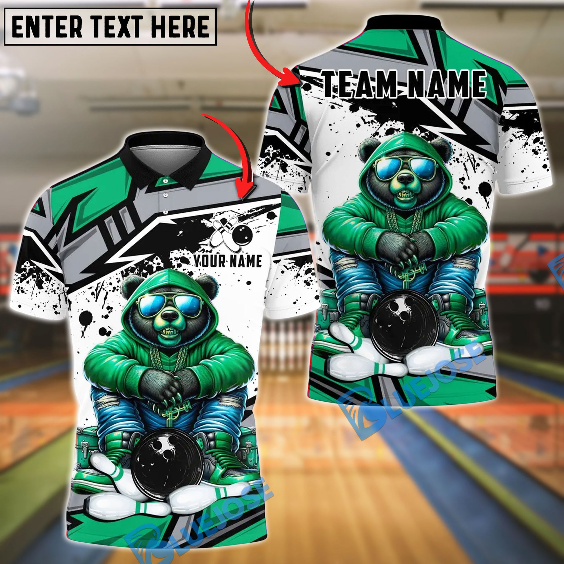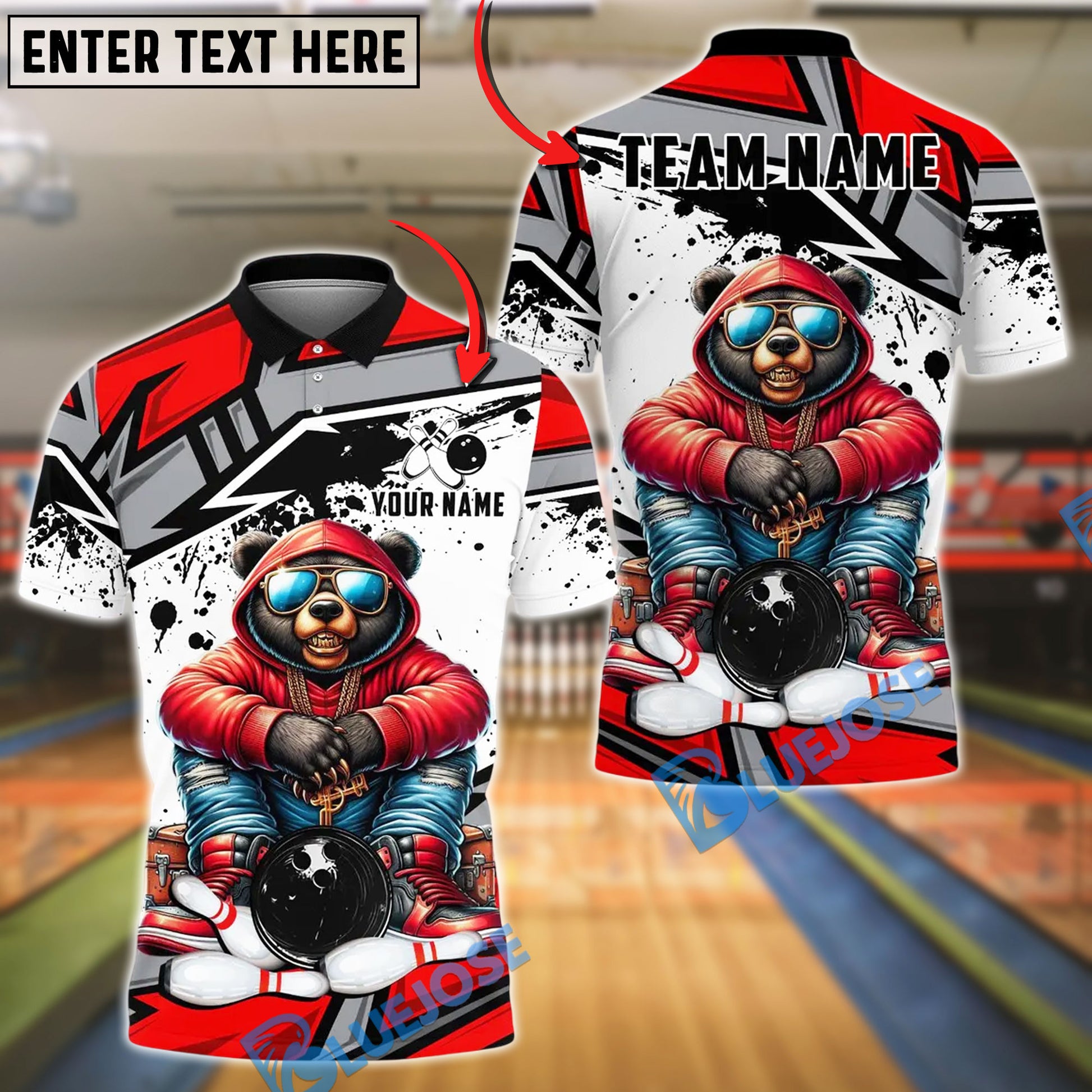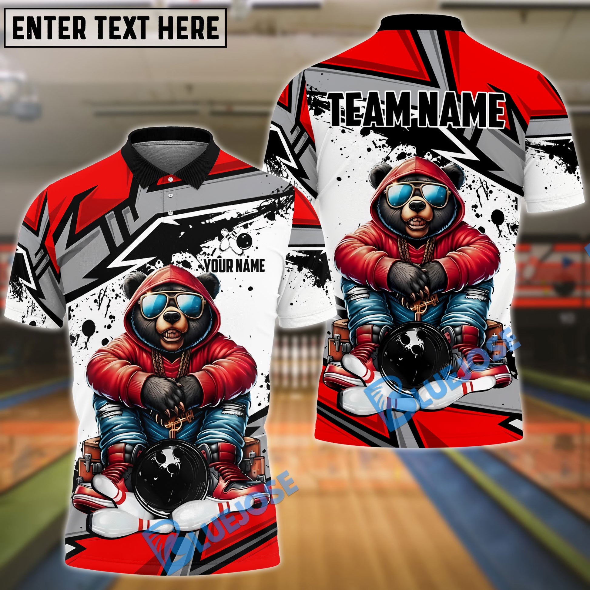 BlueJose Bowling And Pins HipHop Bear Customized Name, Team Name 3D Shirt (4 Colors)