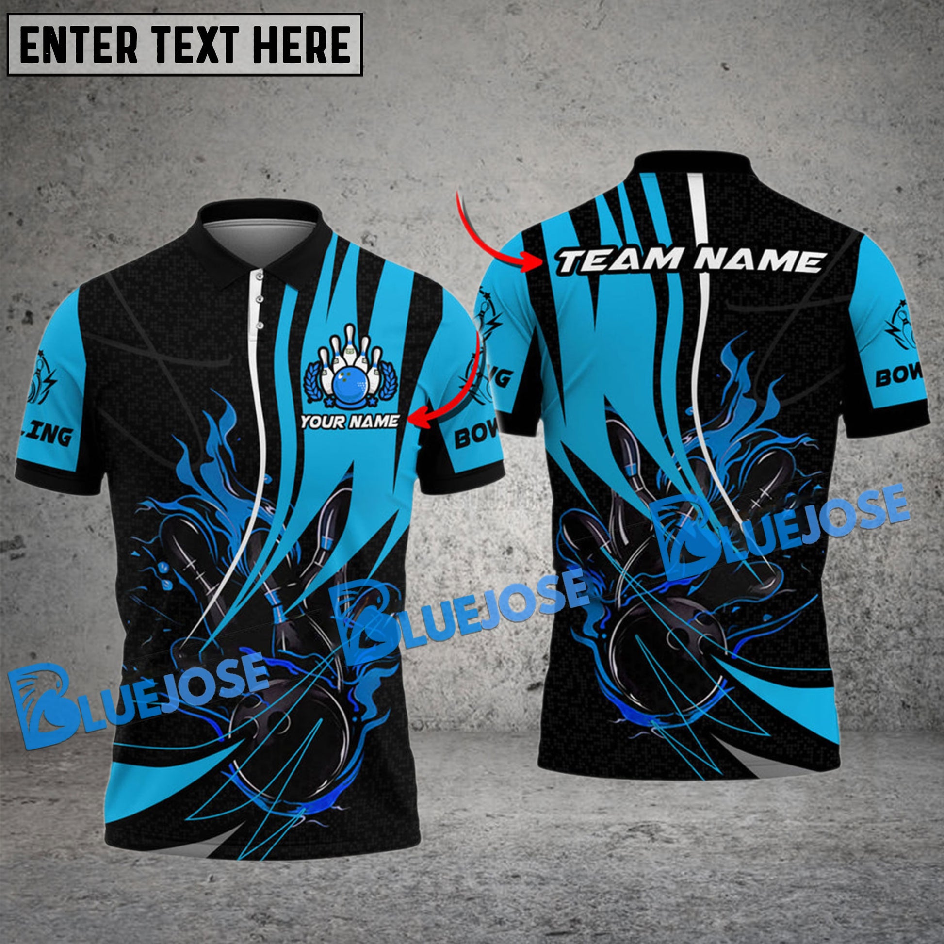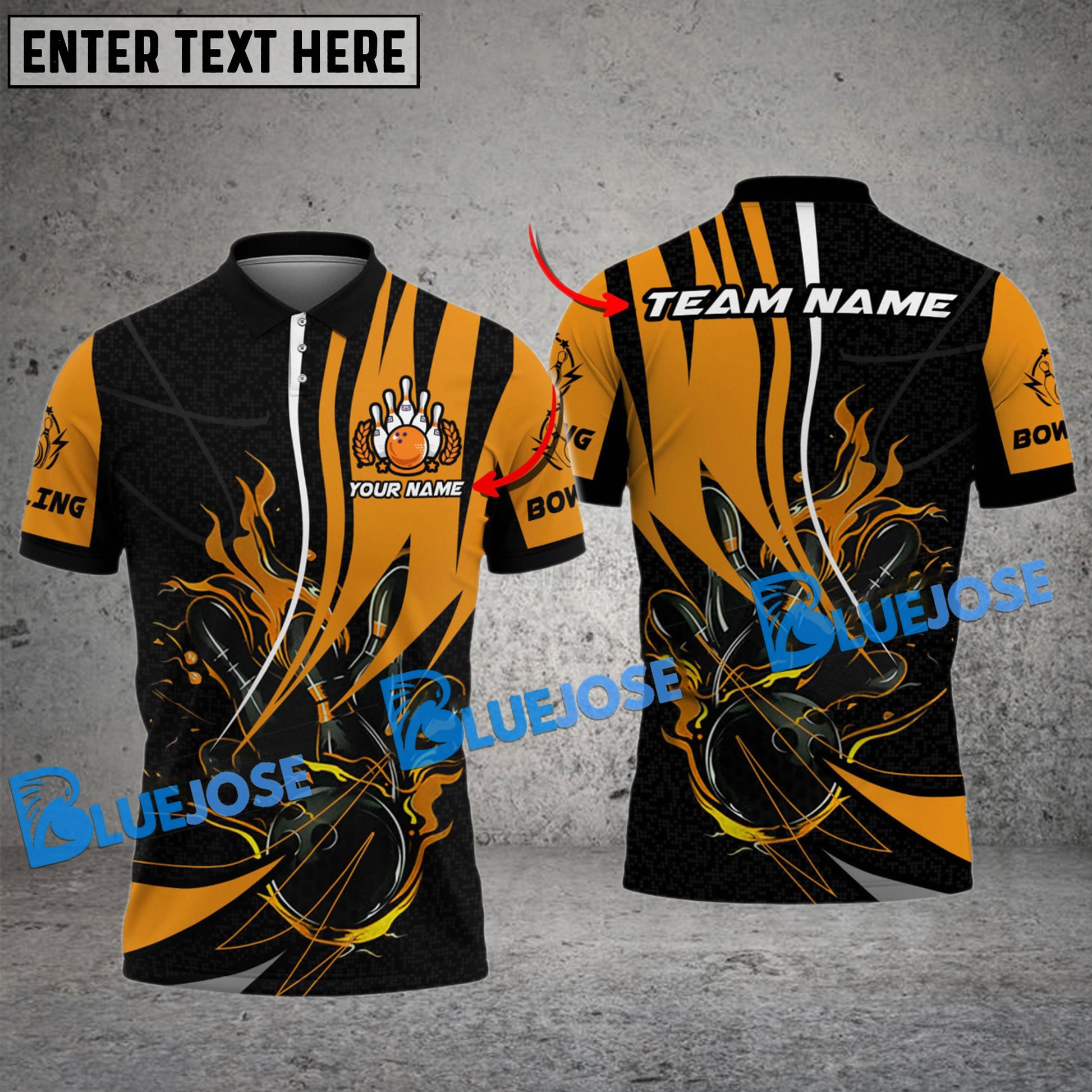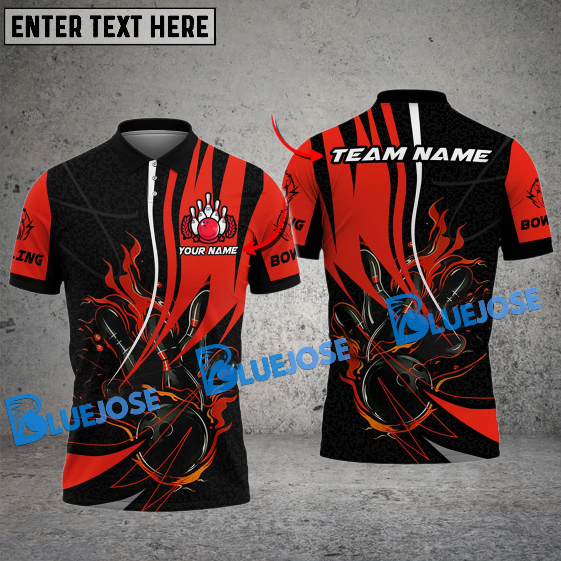 BlueJose Bowling And Pins Inferno Edition Color Customized Name 3D Shirt (4 Colors)