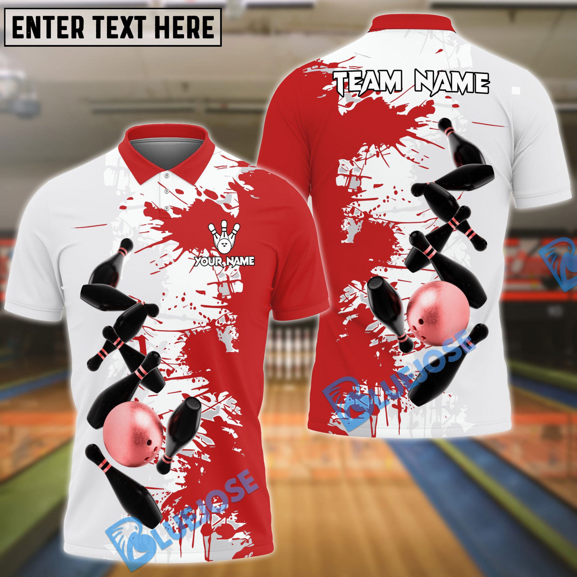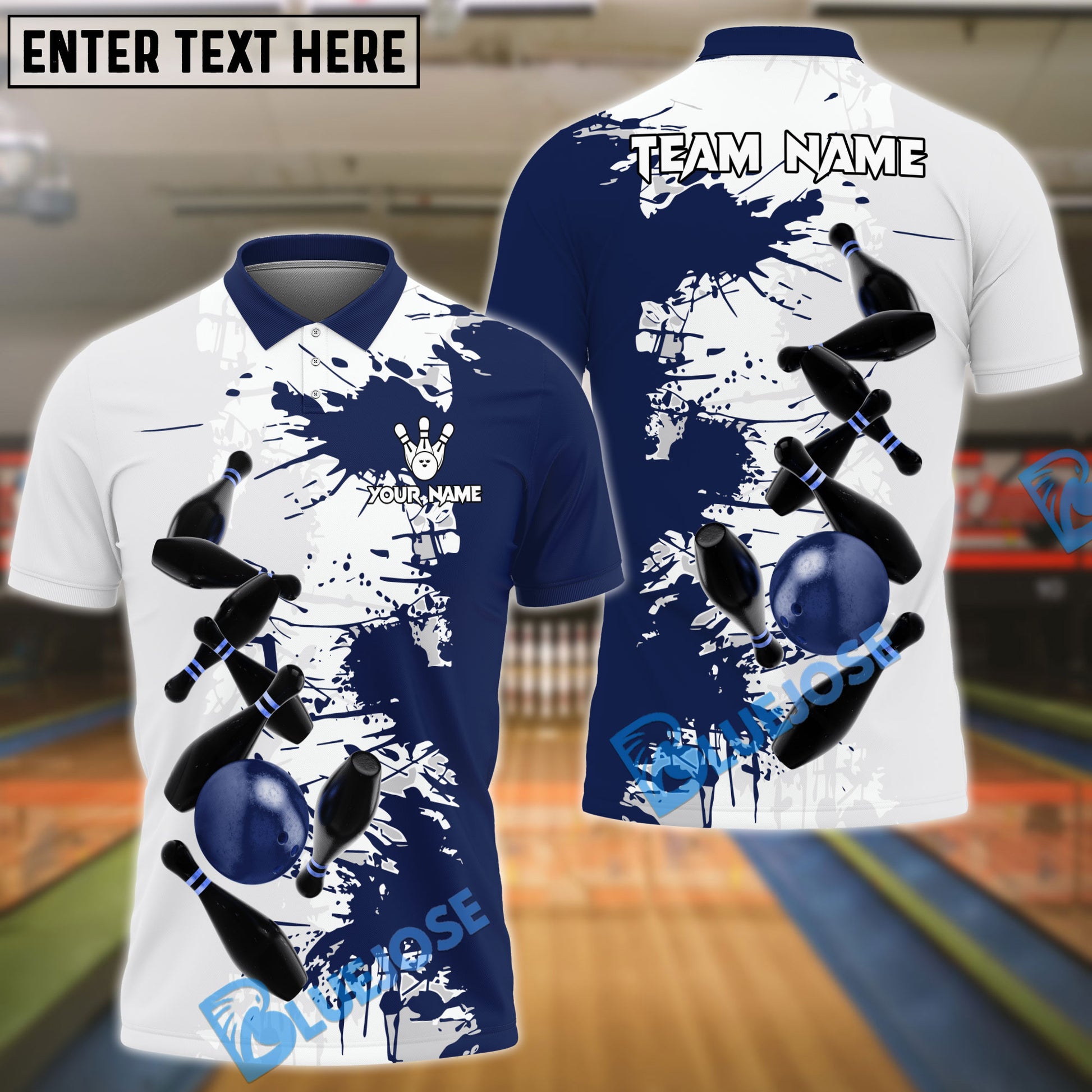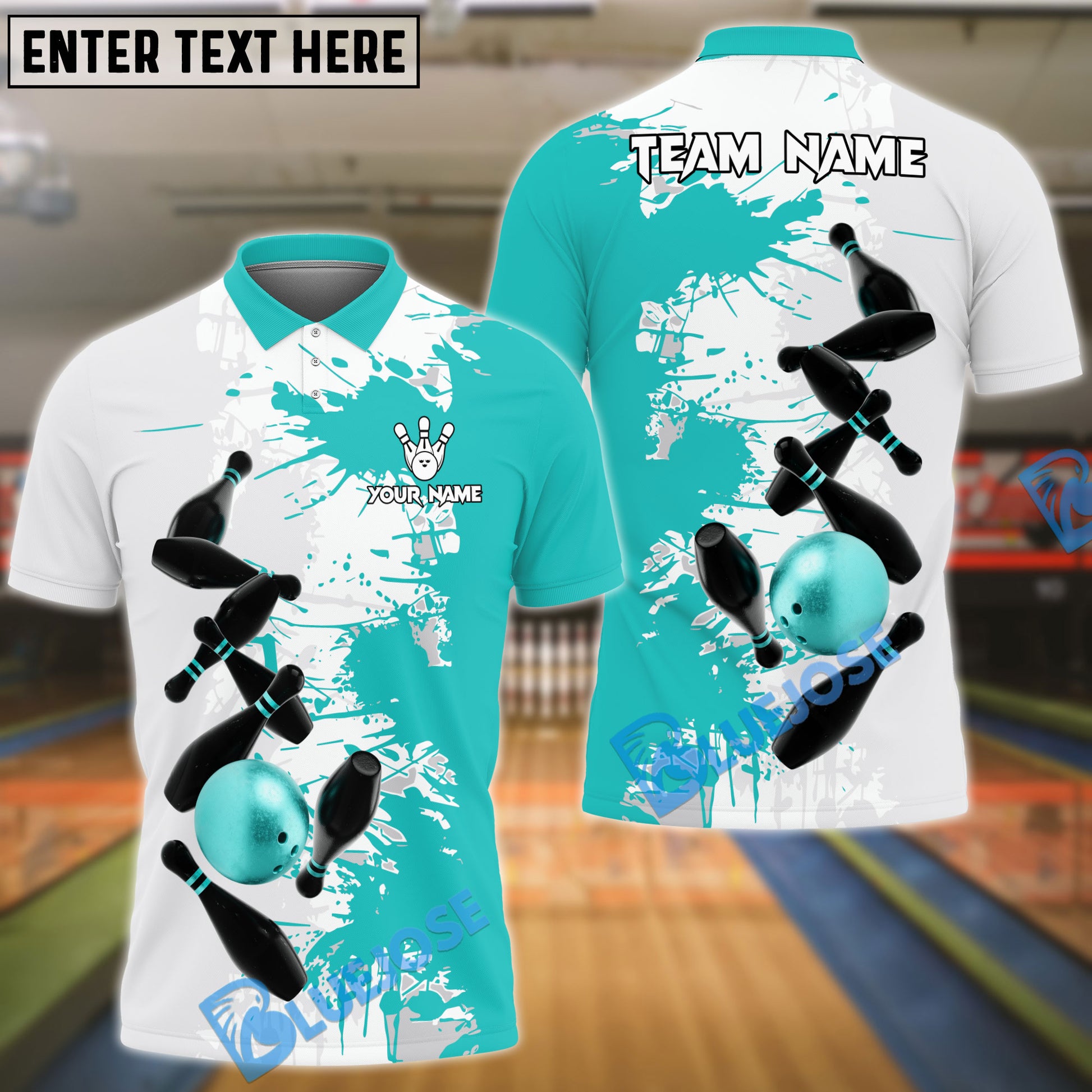 BlueJose Bowling And Pins Ink 3 Customized Name 3D Shirt (4 Colors)