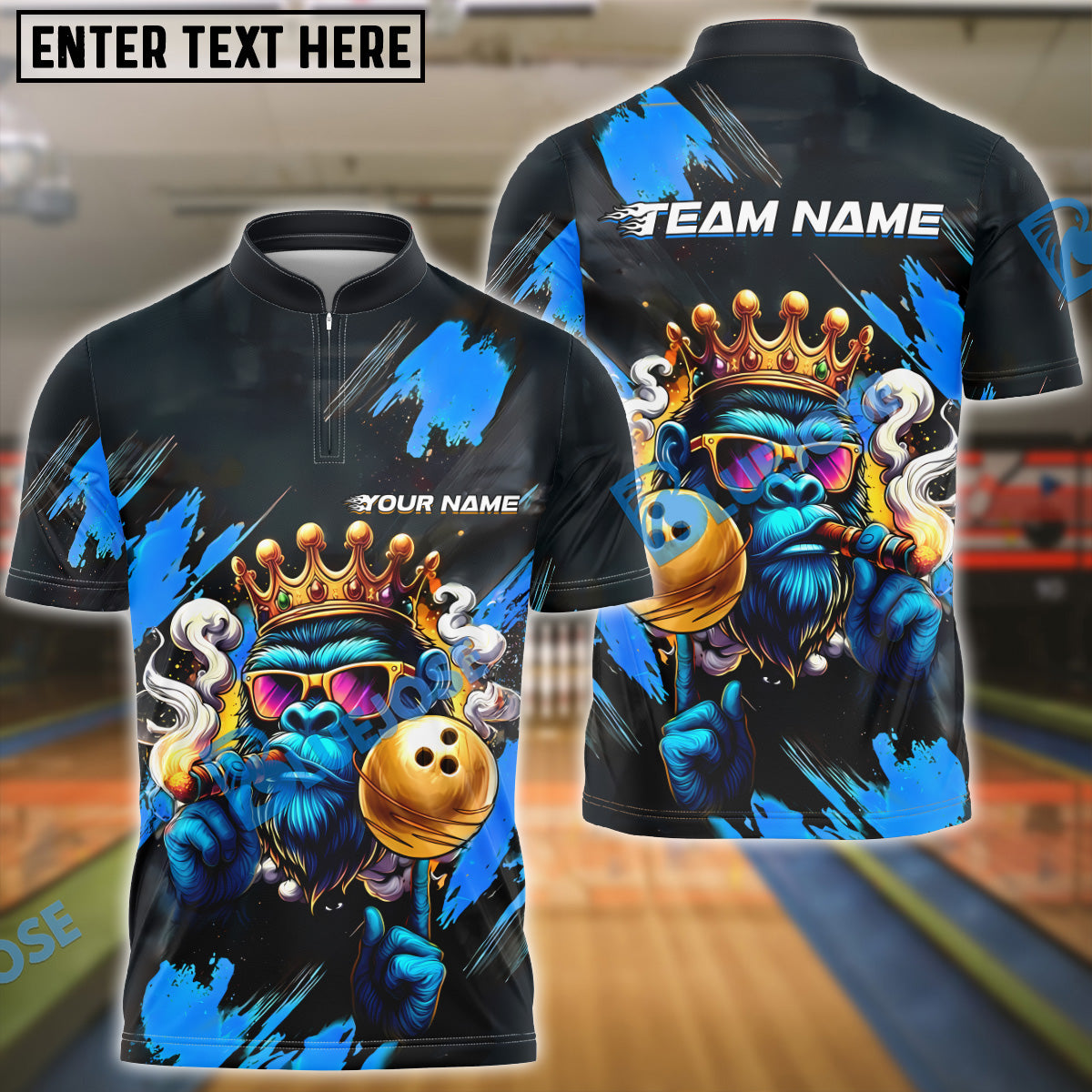 BlueJose Bowling And Pins King Gorilla Customized Name, Team Name 3D Shirt (4 Colors)