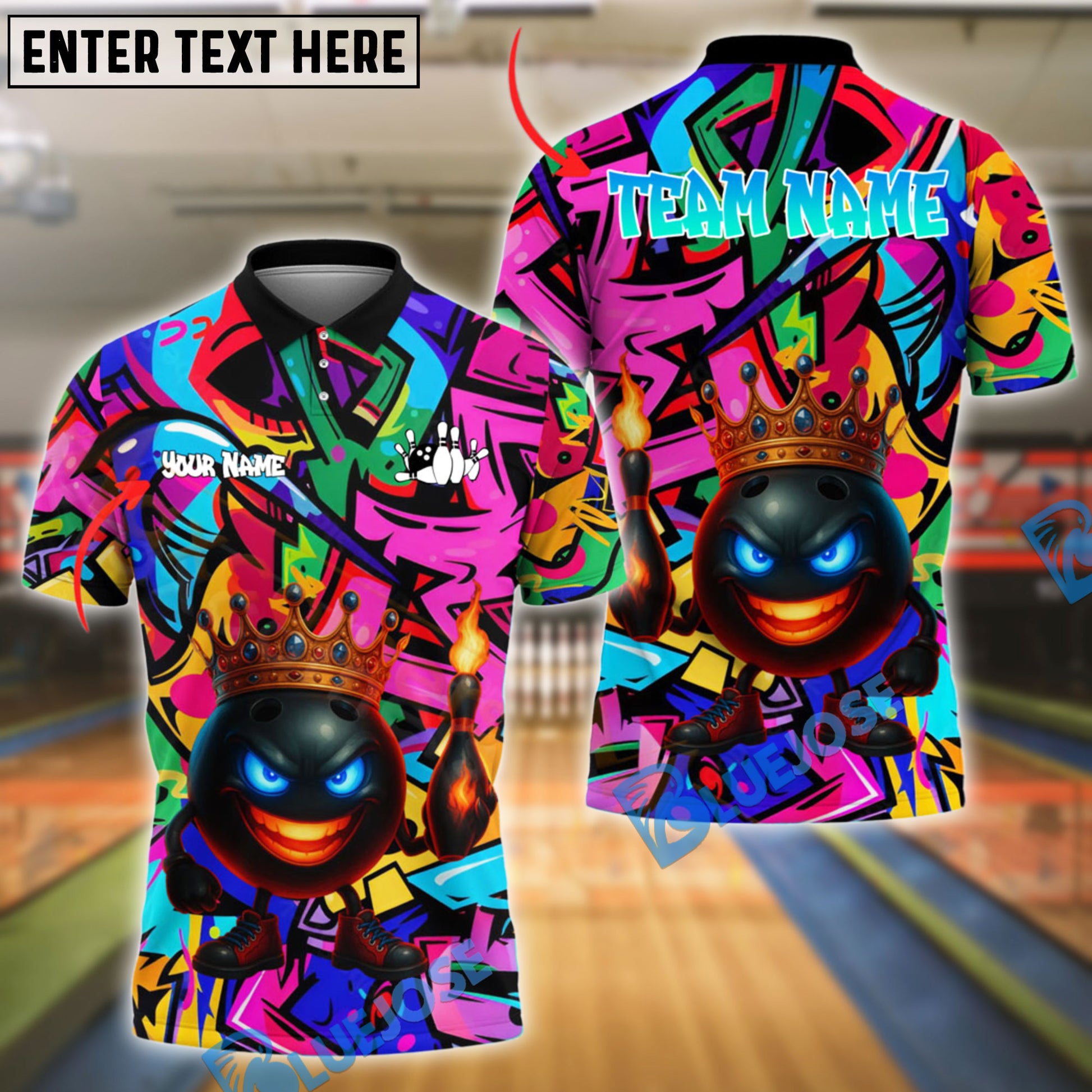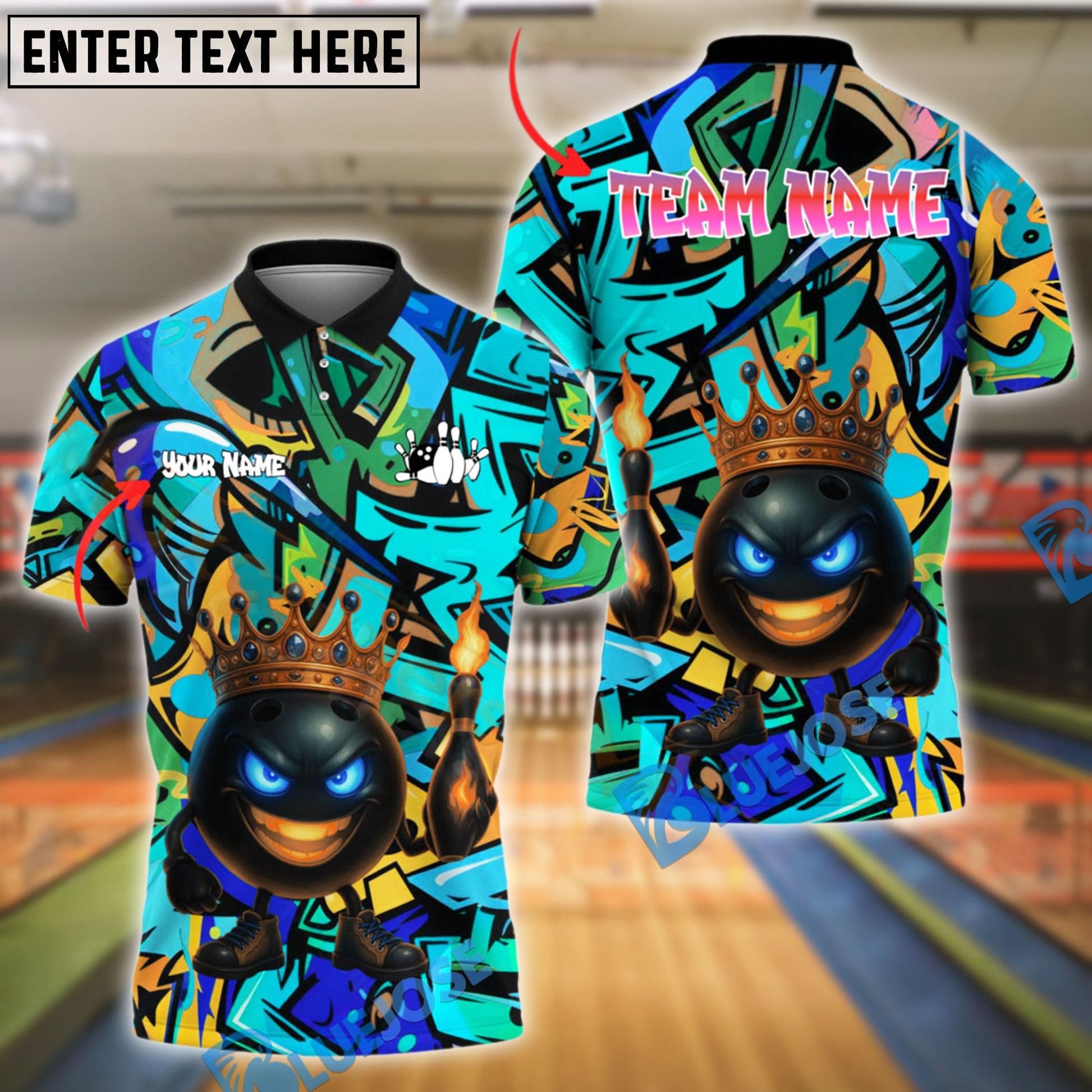 BlueJose Bowling And Pins King Graffiti Crowned Ball with Fire Pins Customized Name 3D Shirt (4 Colors)