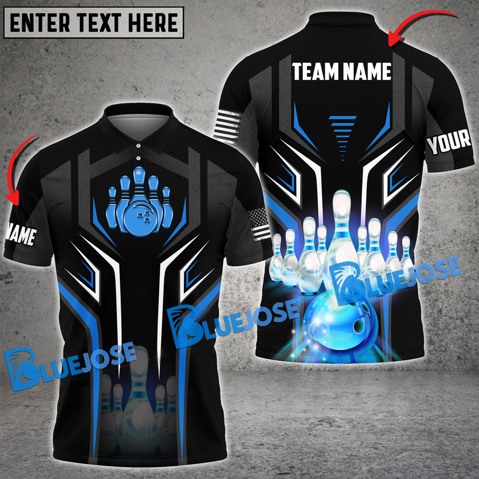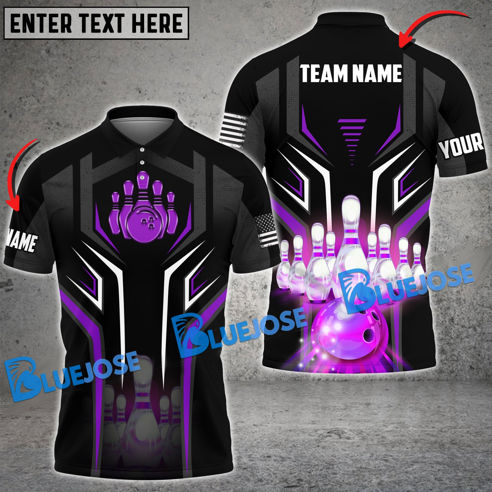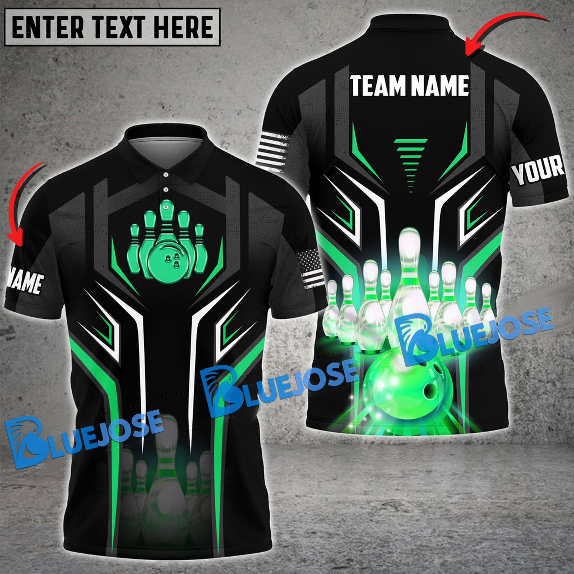 BlueJose Bowling And Pins Light Neon Sport Jersey Pattern Customized Name 3D Shirt (4 Colors)