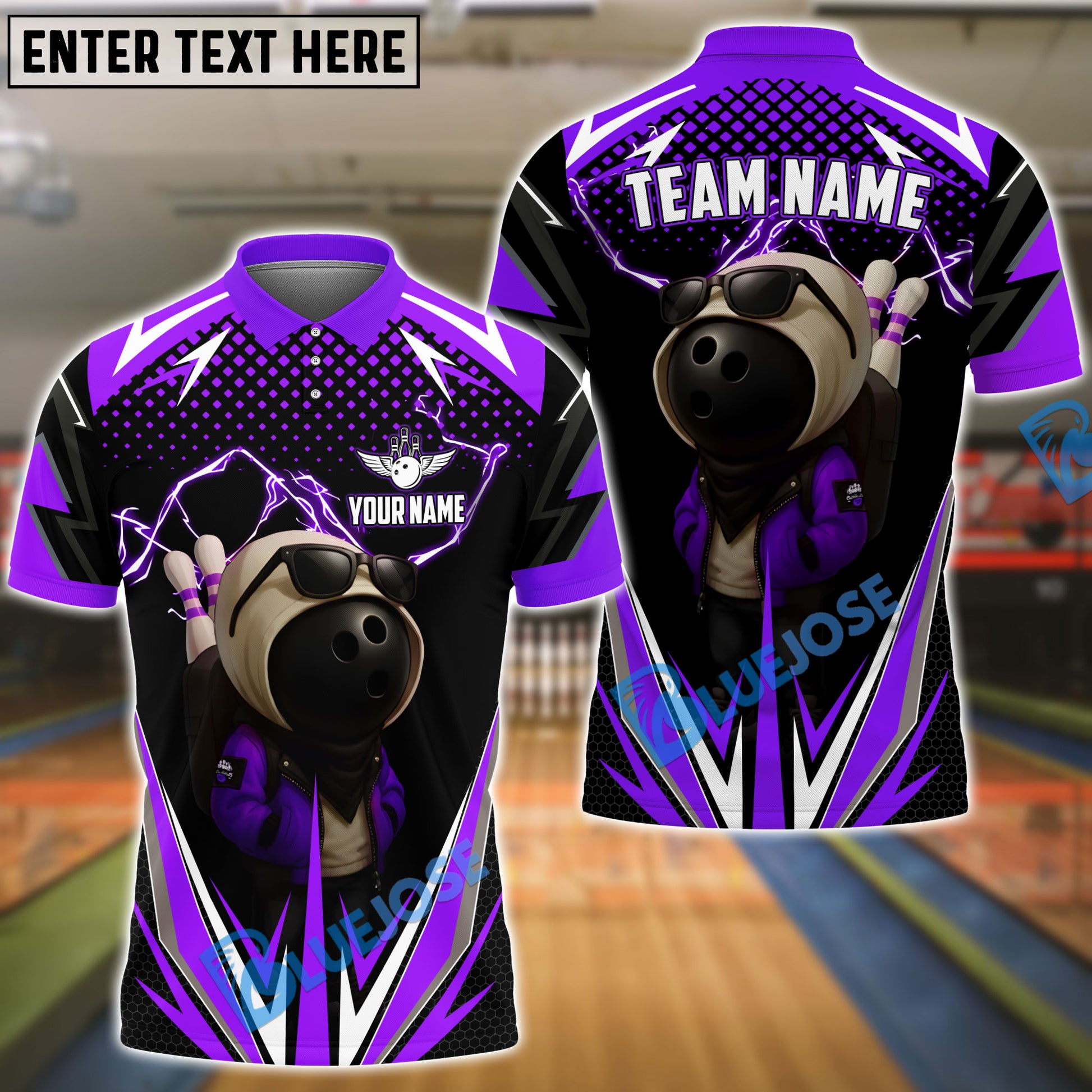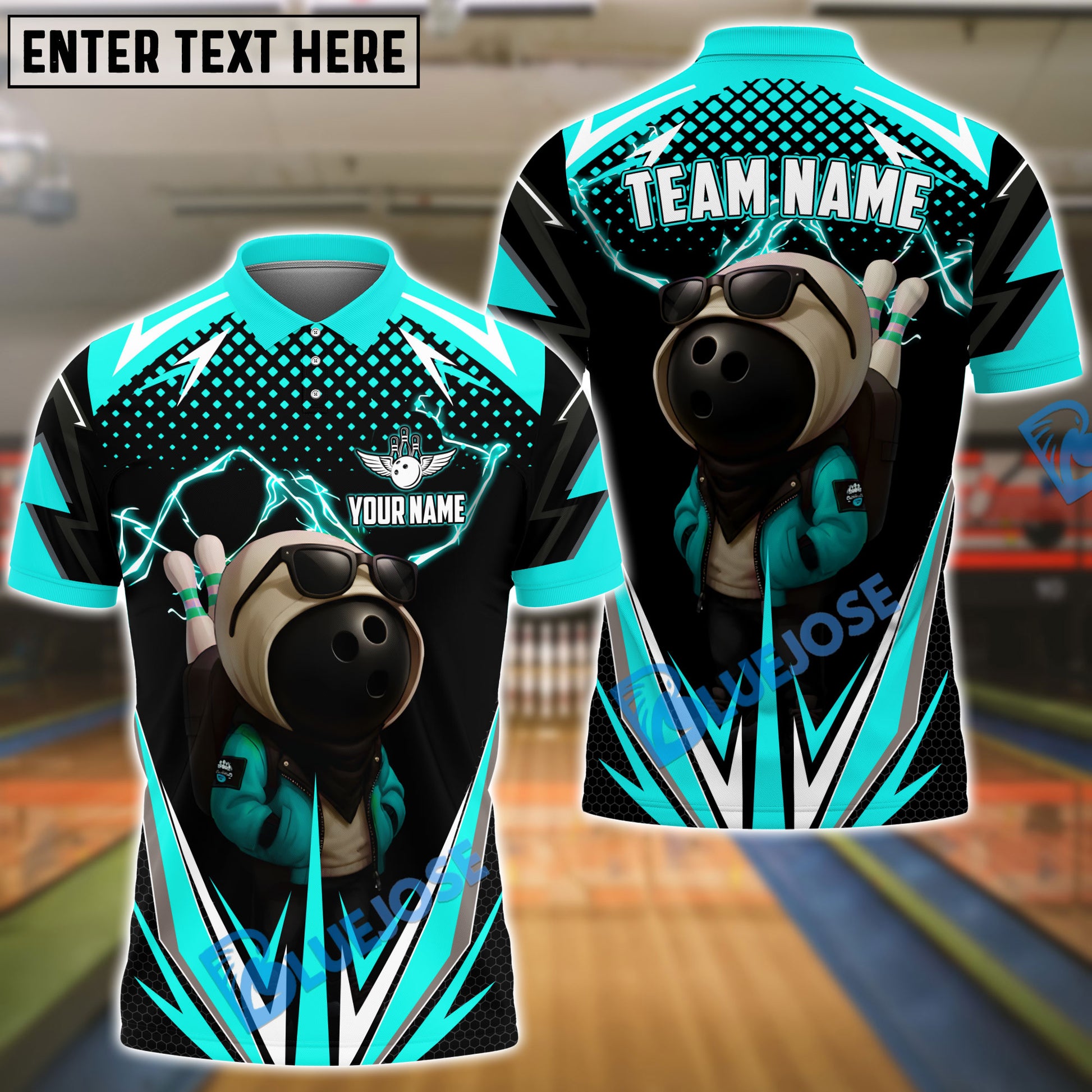 BlueJose Bowling And Pins Lightning Bowling Ball Character Customized Name, Team Name 3D Shirt (4 Colors)