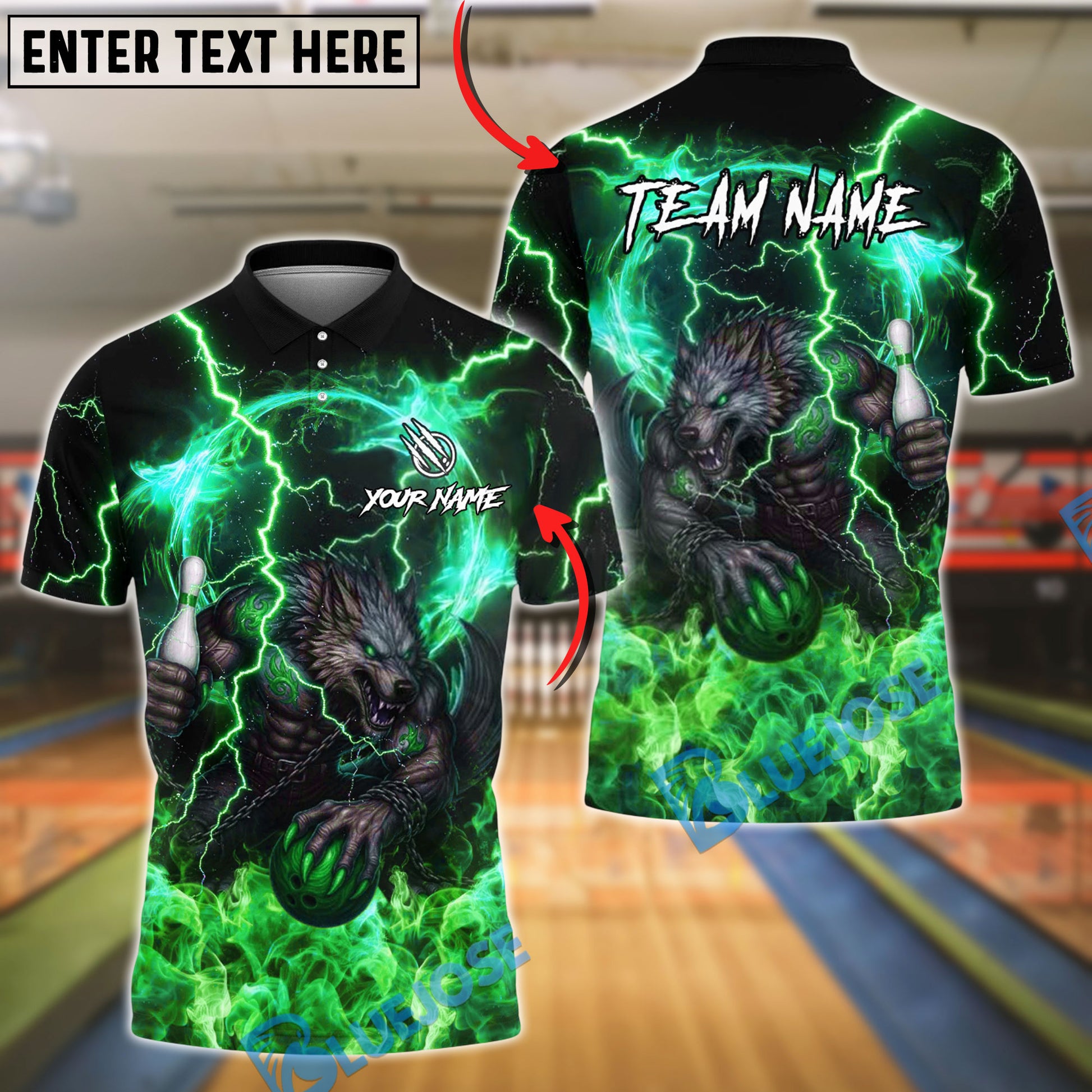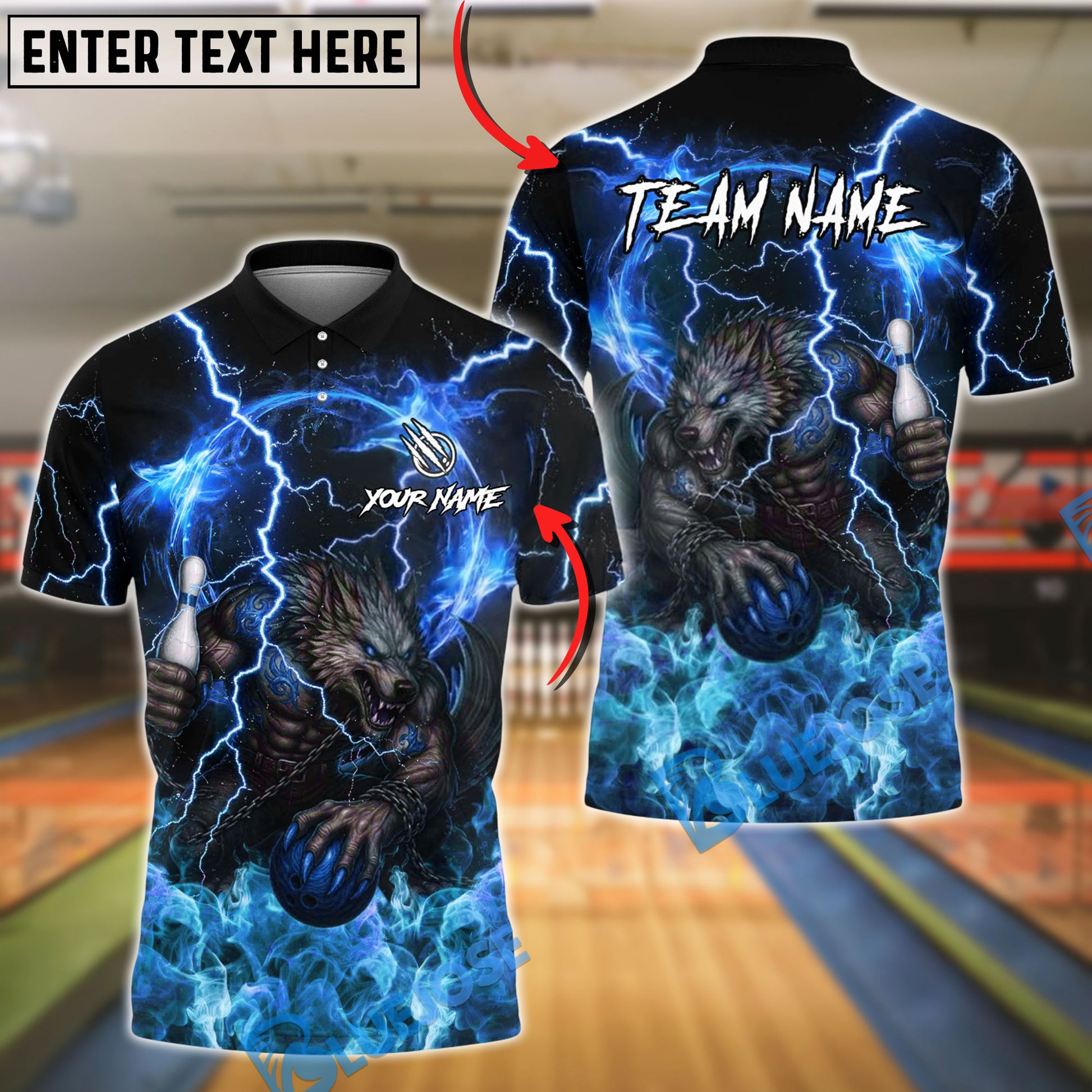 BlueJose Bowling And Pins Lightning Werewolf Graphic Customized Name, Team Name 3D Shirt (4 Colors)