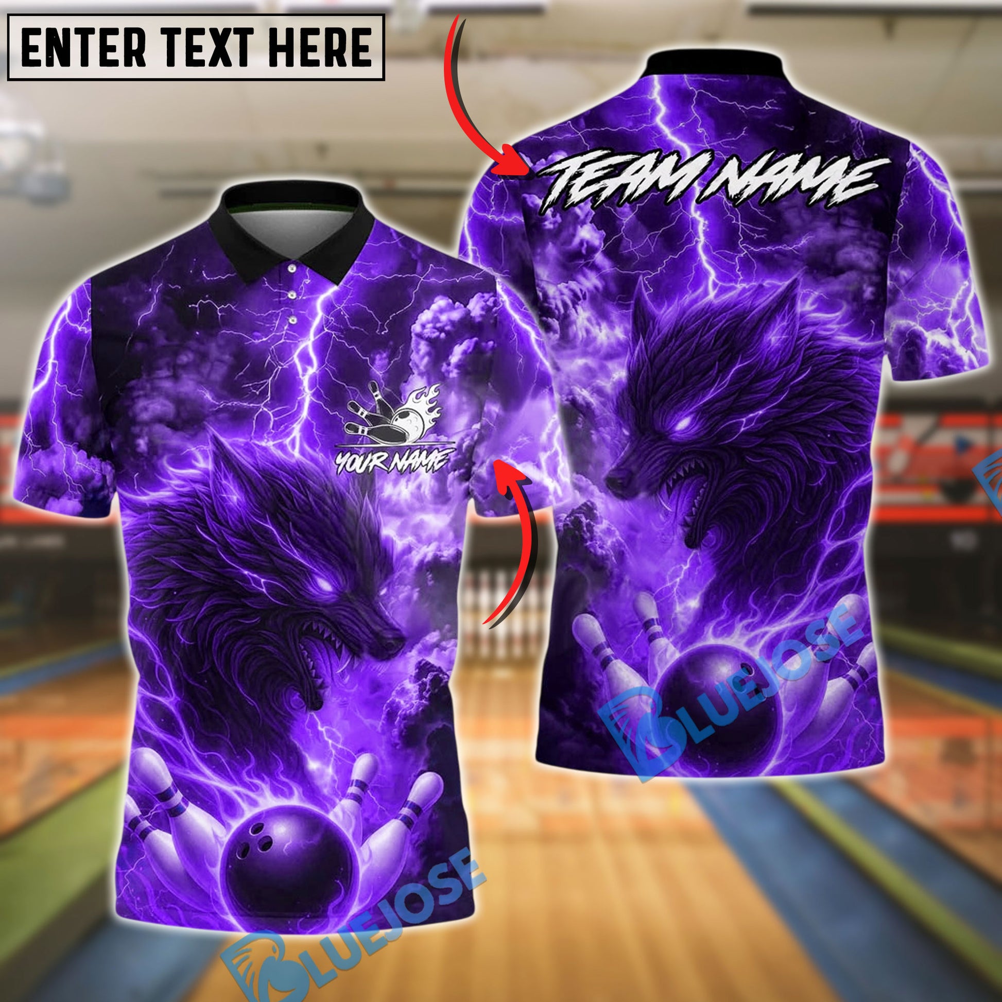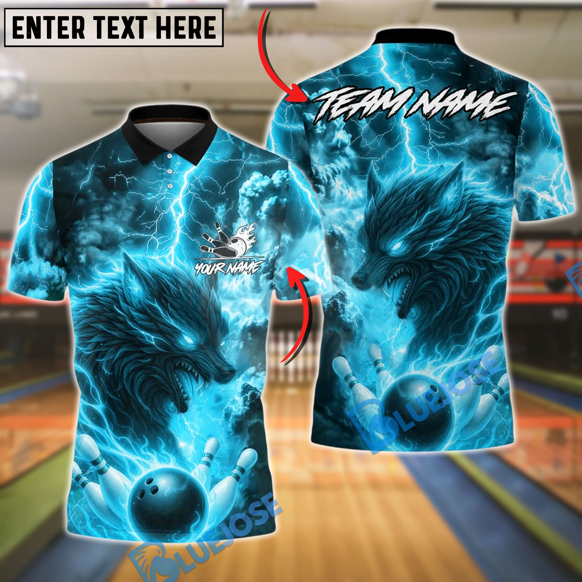 BlueJose Bowling And Pins Lightning Wolf Firestorm Strike Customized Name, Team Name 3D Shirt (4 Colors)