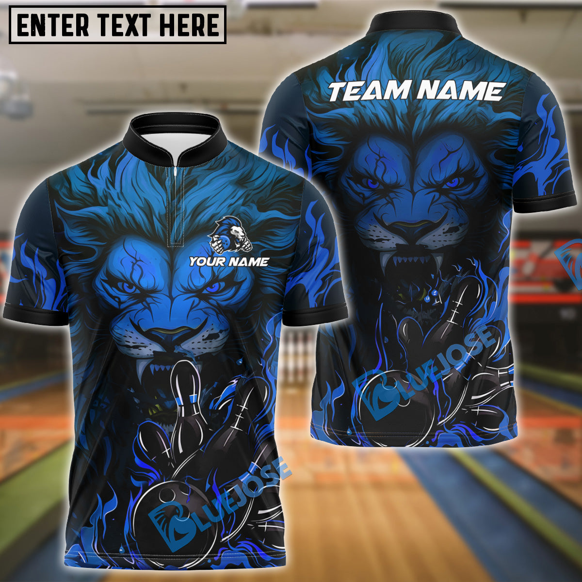 BlueJose Bowling And Pins Lion Flame Fury Customized Name, Team Name 3D Shirt (4 Colors)