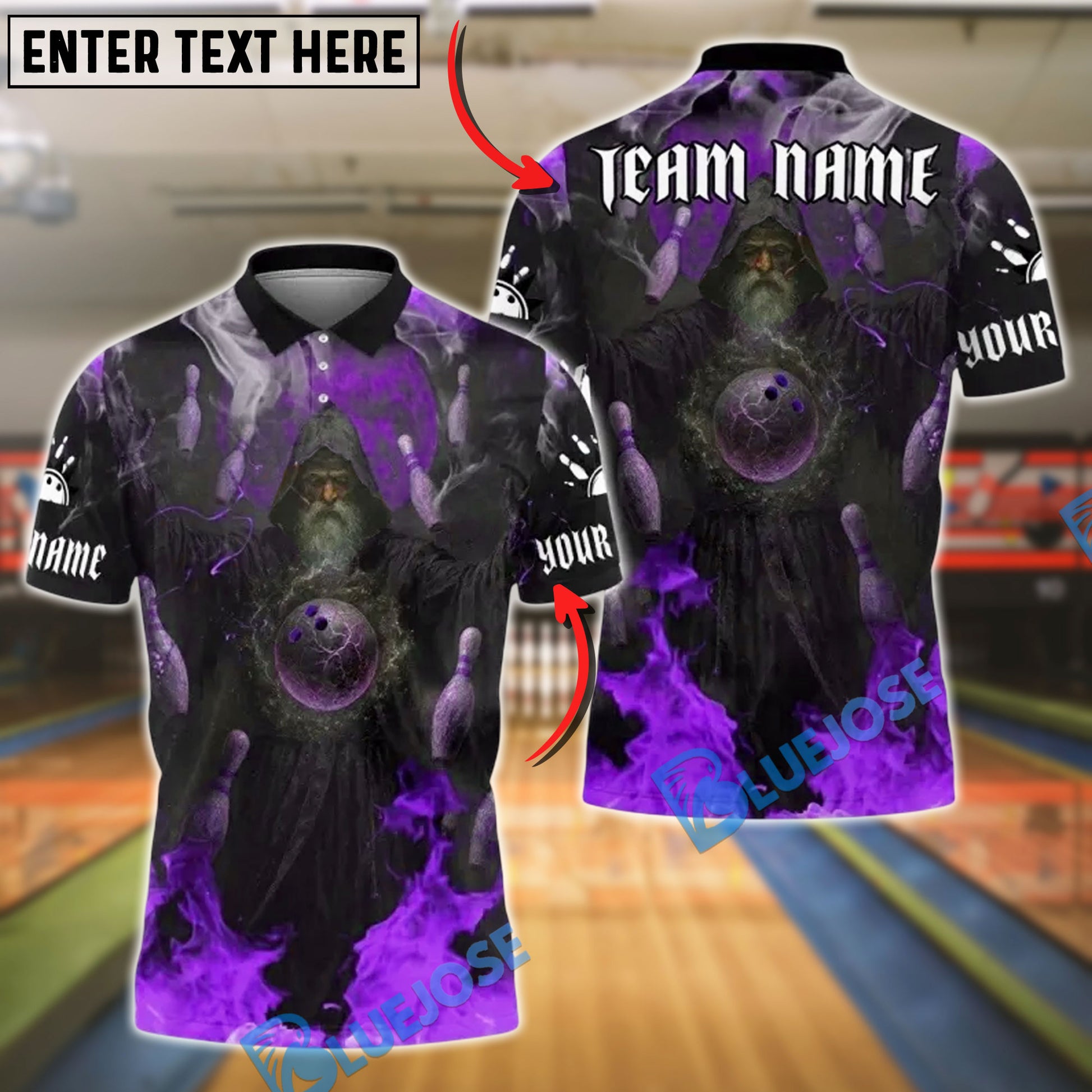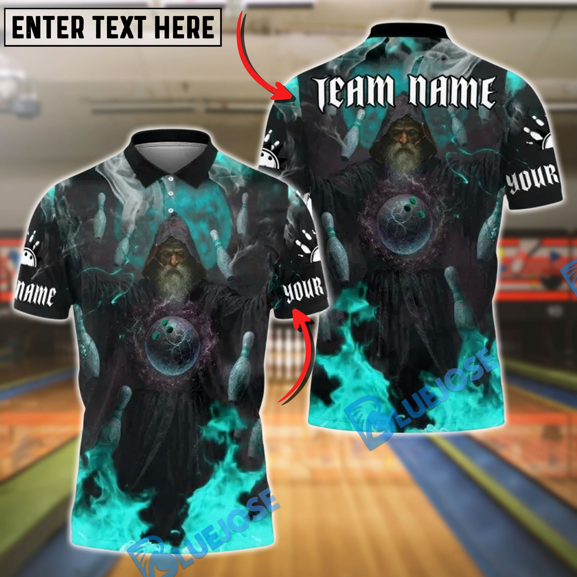 BlueJose Bowling And Pins Magic Flame Wizard Customized Name, Team Name 3D Shirt (4 Colors)
