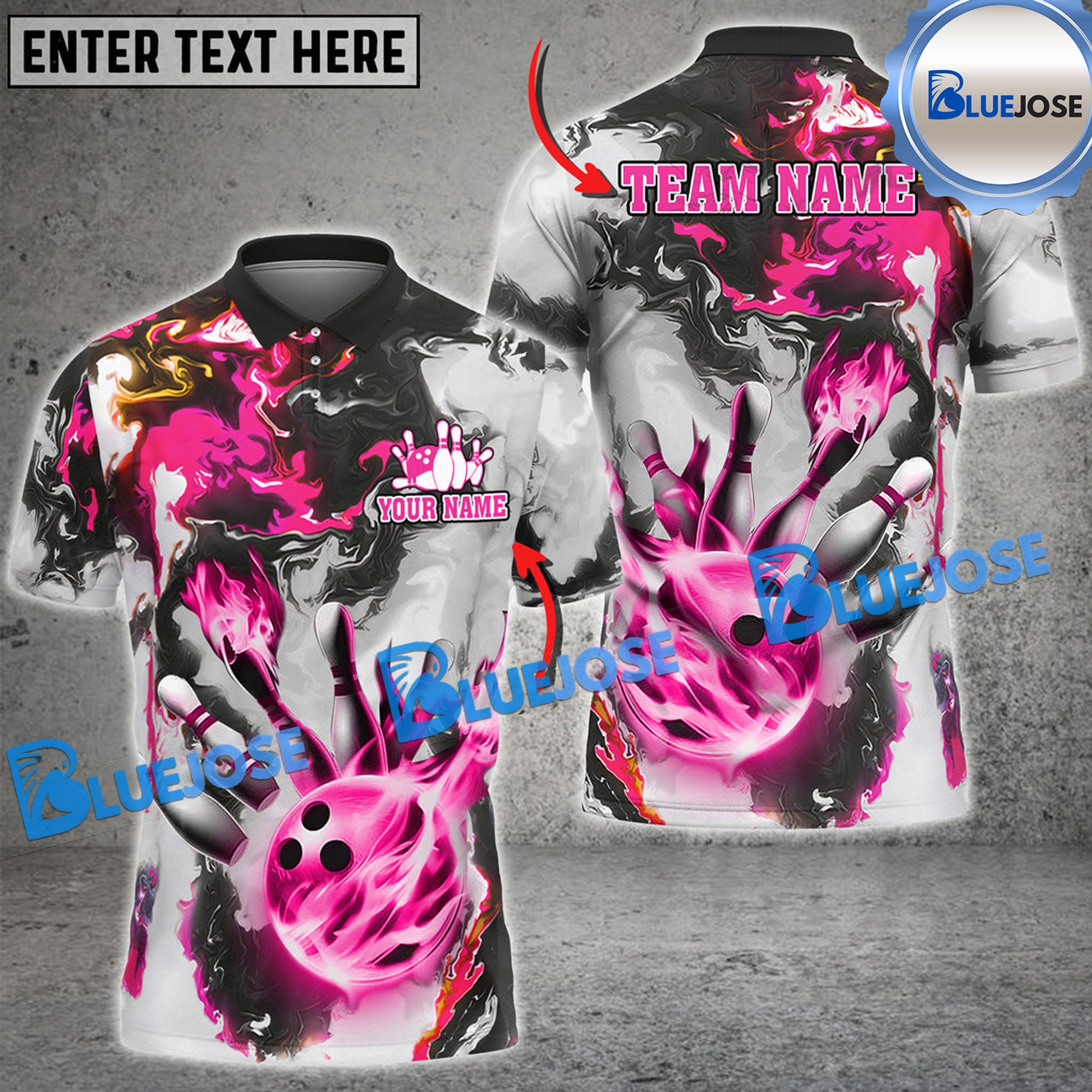 BlueJose Bowling And Pins Magma Flow Customized Name 3D Shirt (4 Colors)