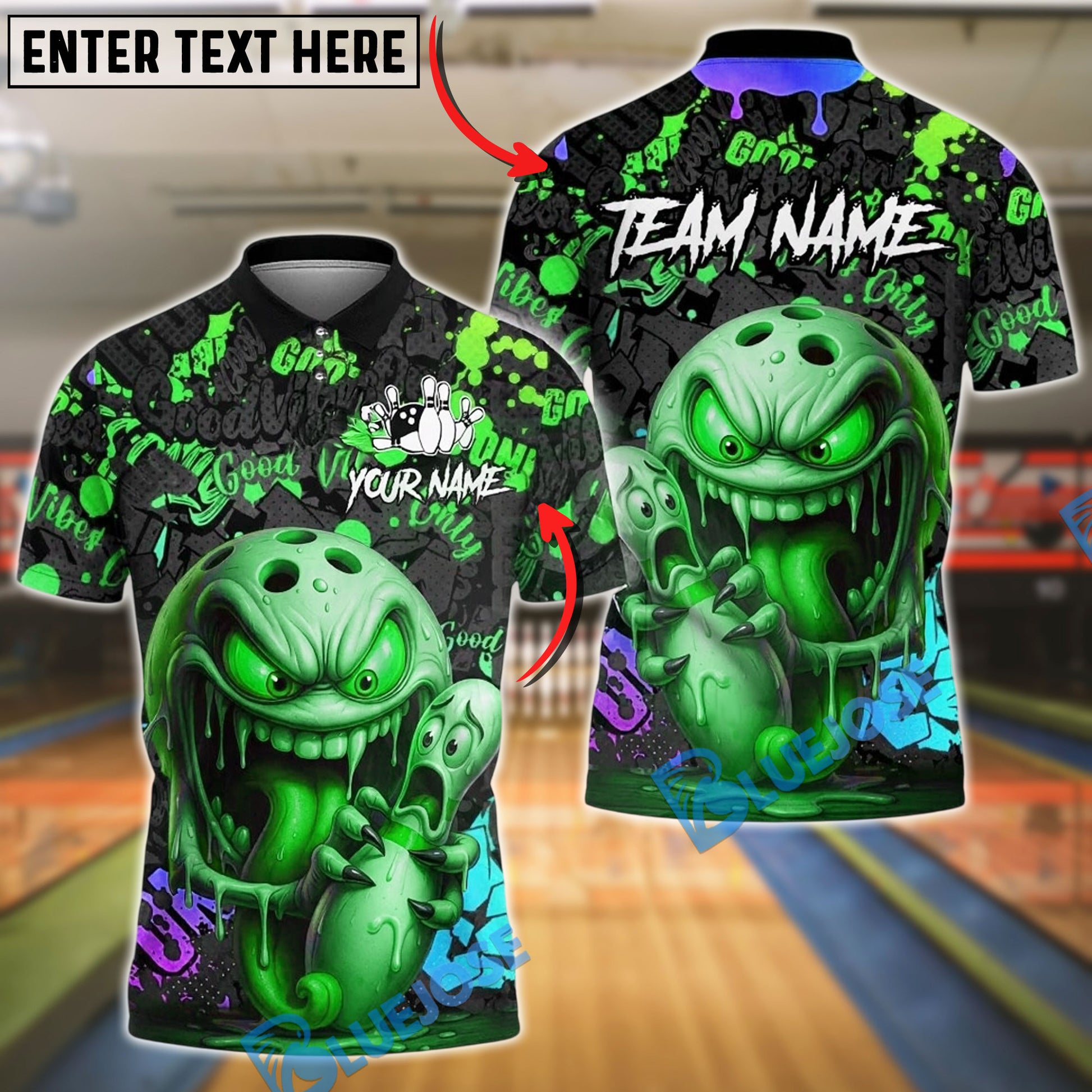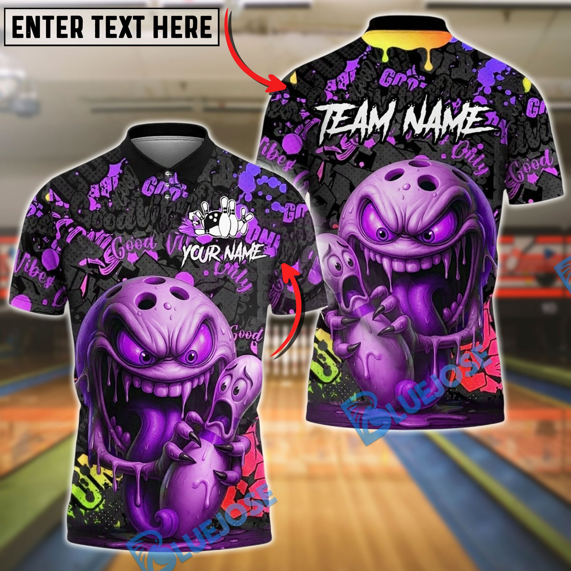 BlueJose Bowling And Pins Monster Graffiti Style Customized Name, Team Name 3D Shirt (4 Colors)