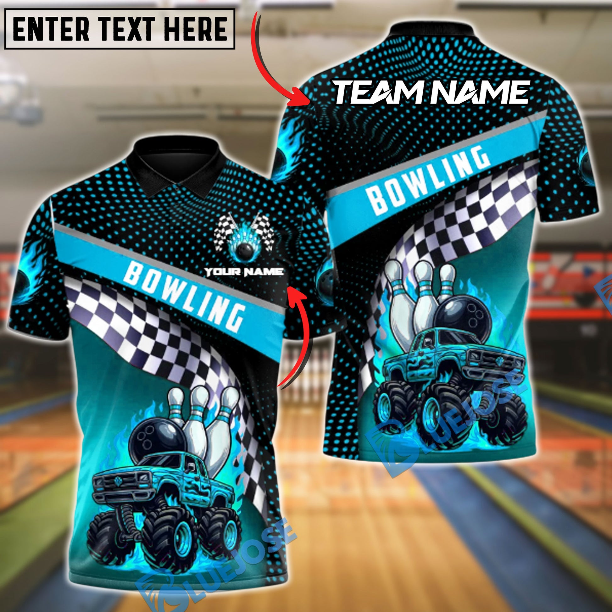 BlueJose Bowling And Pins Monster Truck Strike Customized Name, Team Name 3D Shirt (4 Colors)