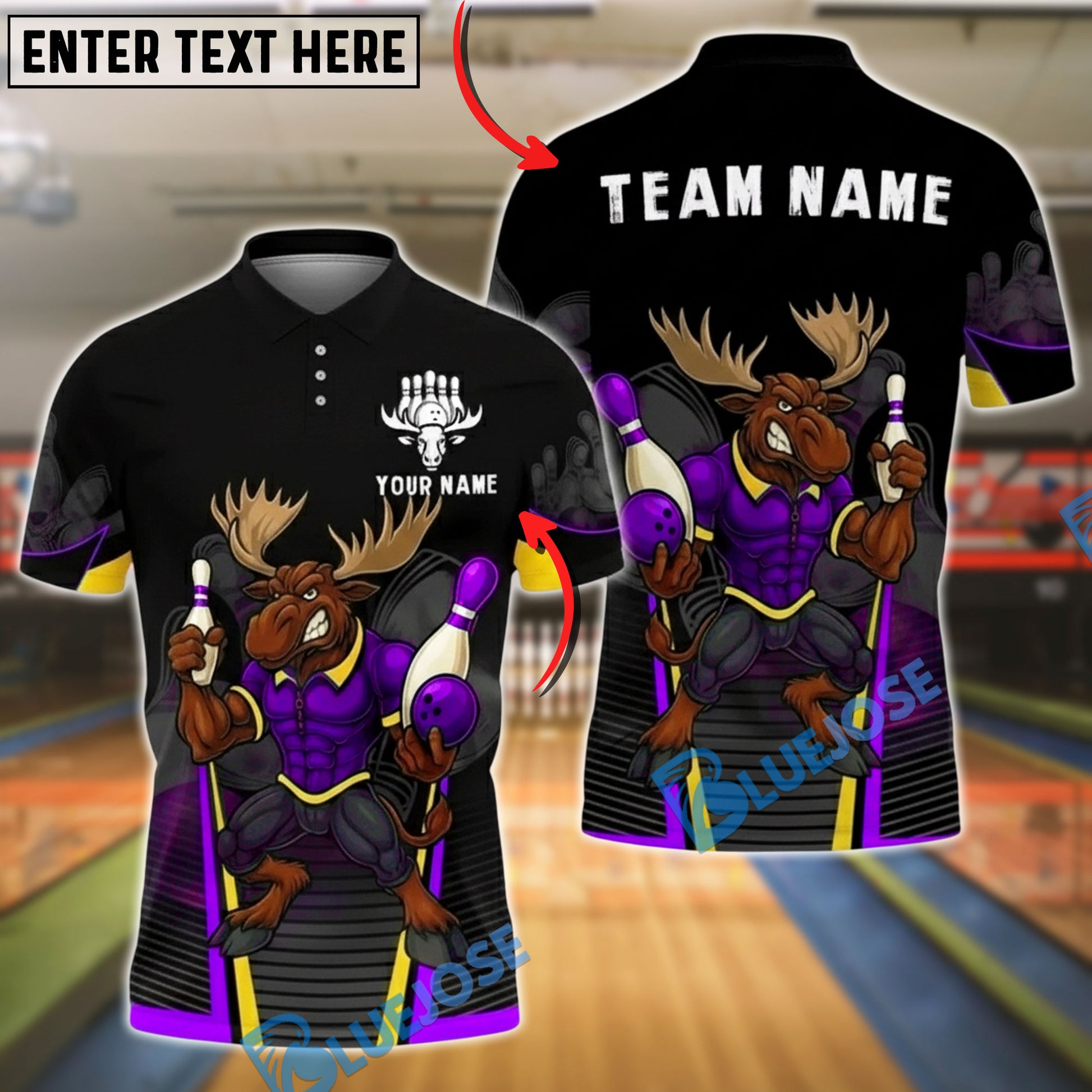 BlueJose Bowling And Pins Moose Warrior Customized Name, Team Name 3D Shirt (4 Colors)