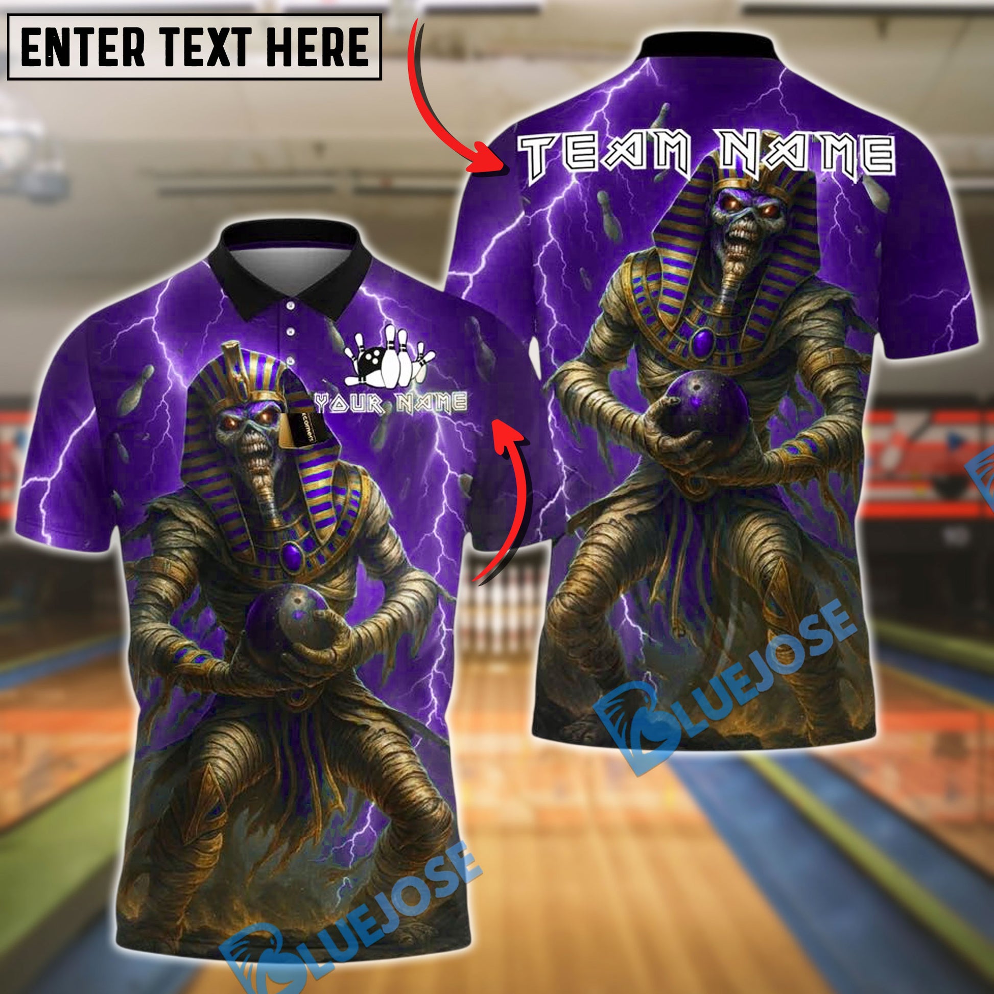 BlueJose Bowling And Pins Mummy Pharaoh Lightning Storm Customized Name, Team Name 3D Shirt (4 Colors)