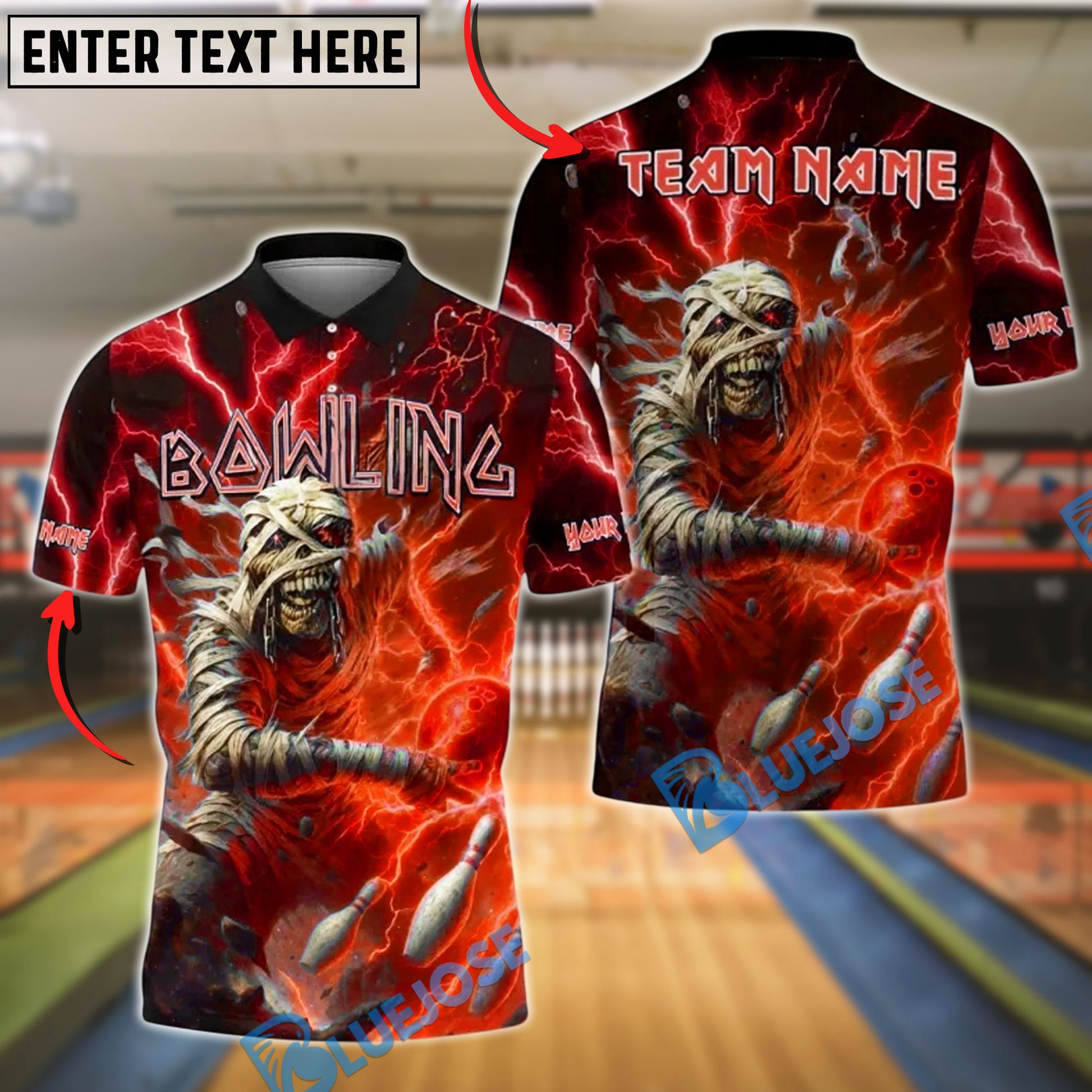 BlueJose Bowling And Pins Mummy Red Lightning Power Customized Name, Team Name 3D Shirt (4 Colors)