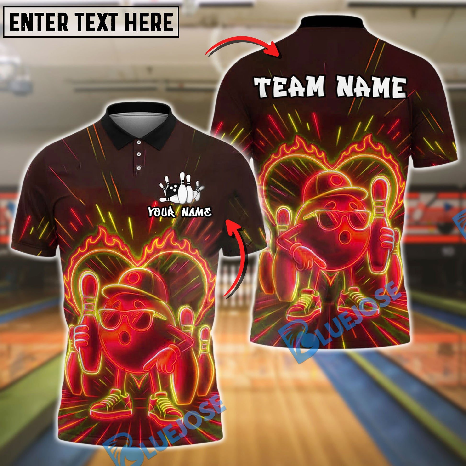 BlueJose Bowling And Pins Neon Cool Customized Name, Team Name 3D Shirt (4 Colors)