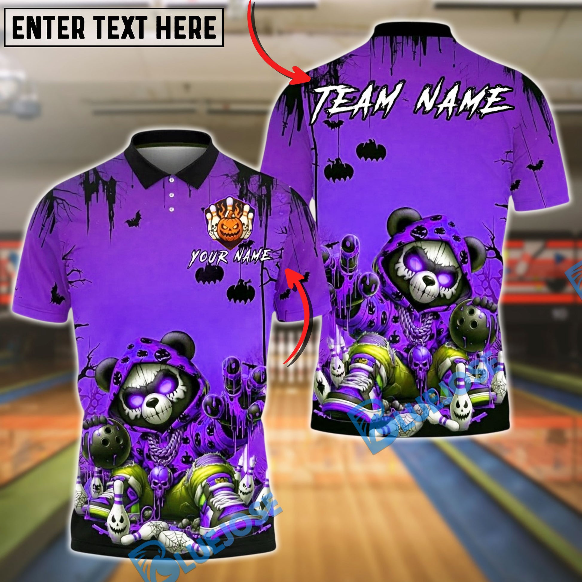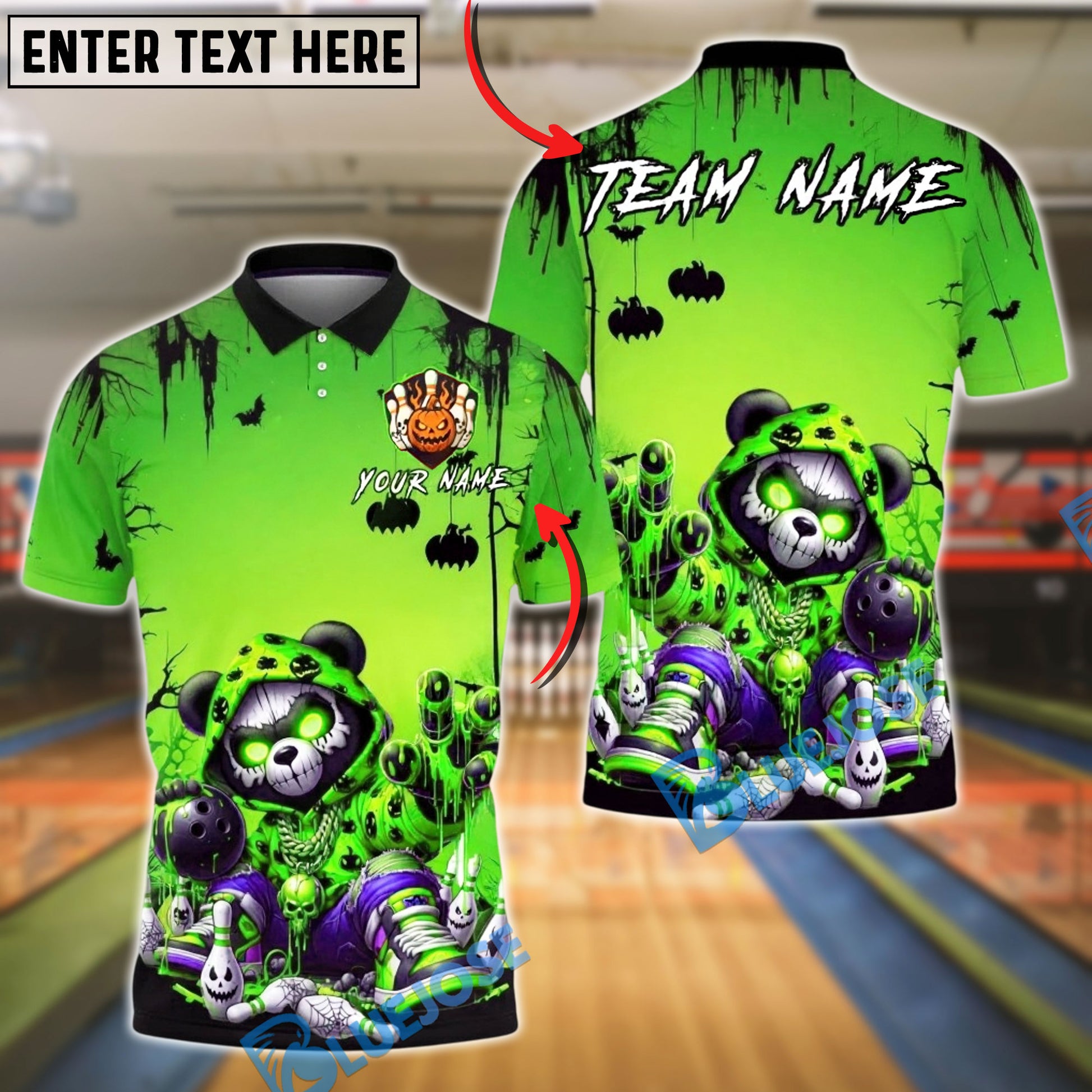 BlueJose Bowling And Pins Neon Graffiti Panda Halloween Glow Spooky Customized Name, Team Name 3D Shirt (4 Colors)
