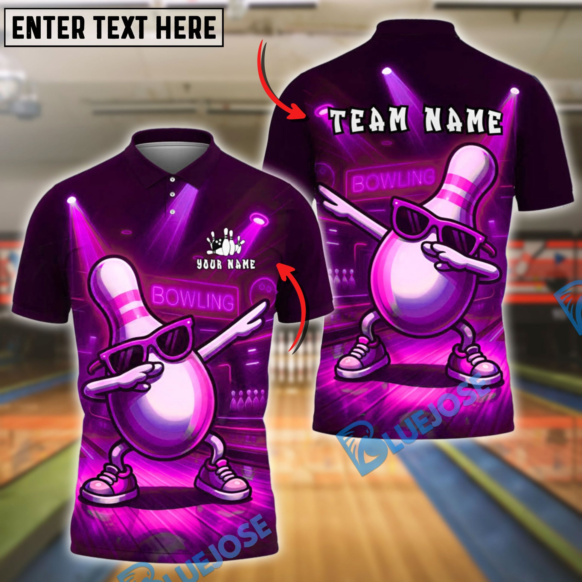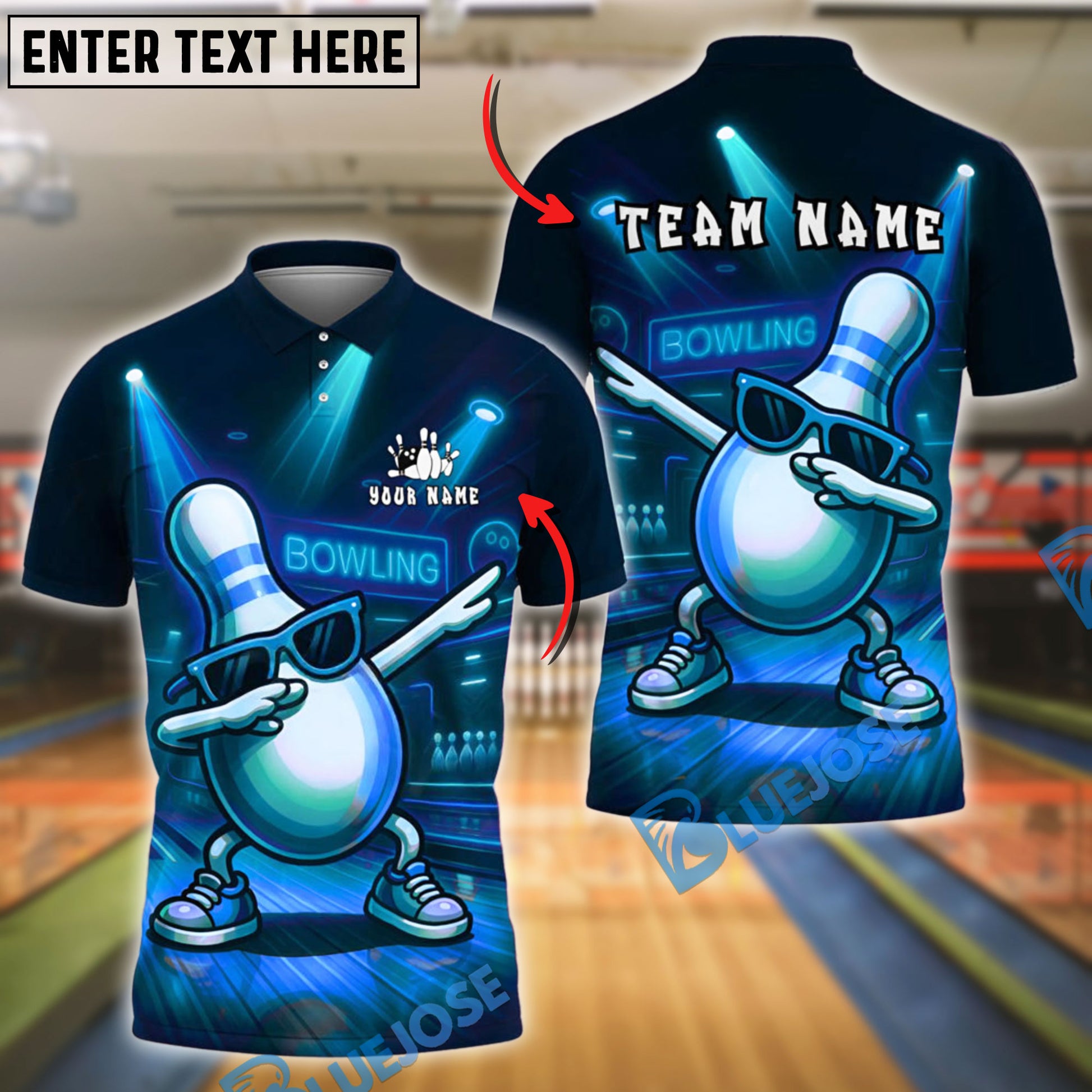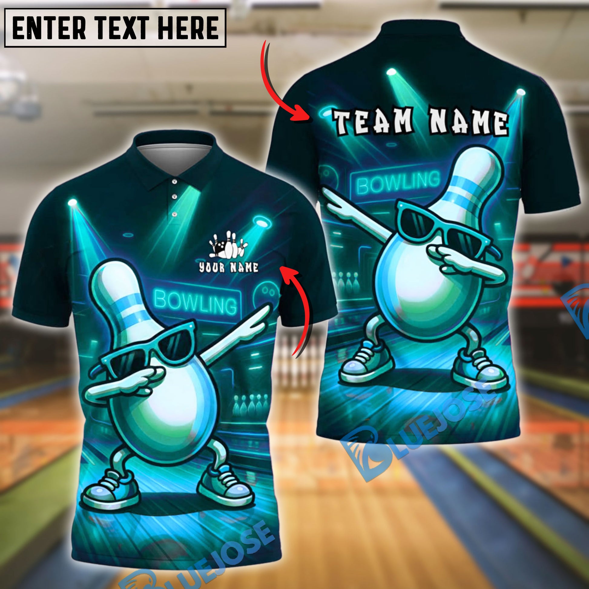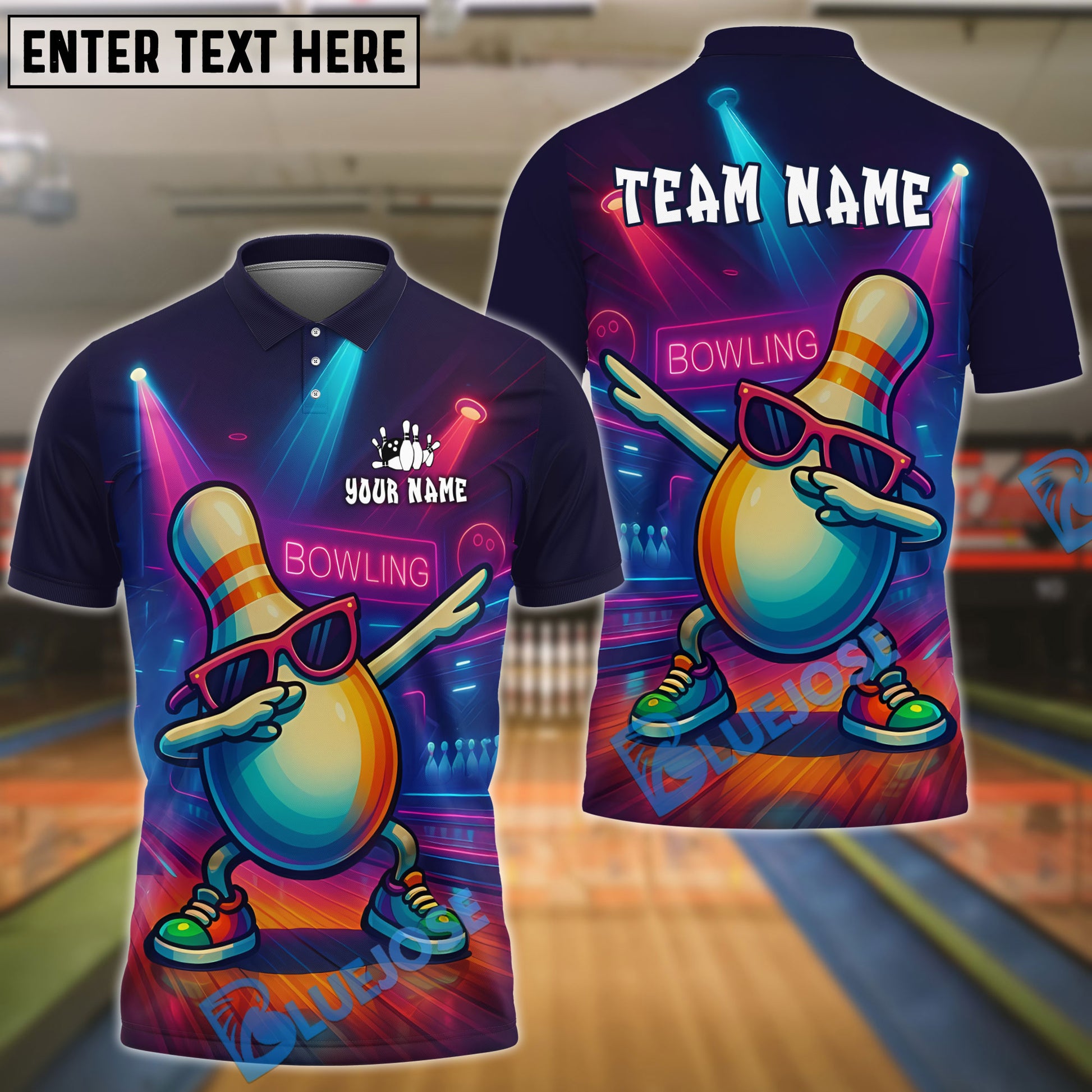 BlueJose Bowling And Pins Neon Party Pin Dabbing Style Customized Name, Team Name 3D Shirt (4 Colors)