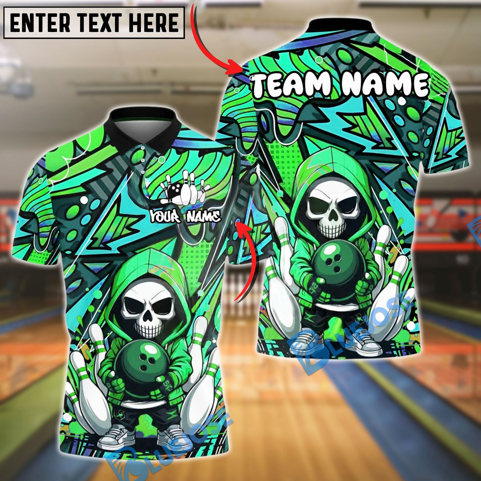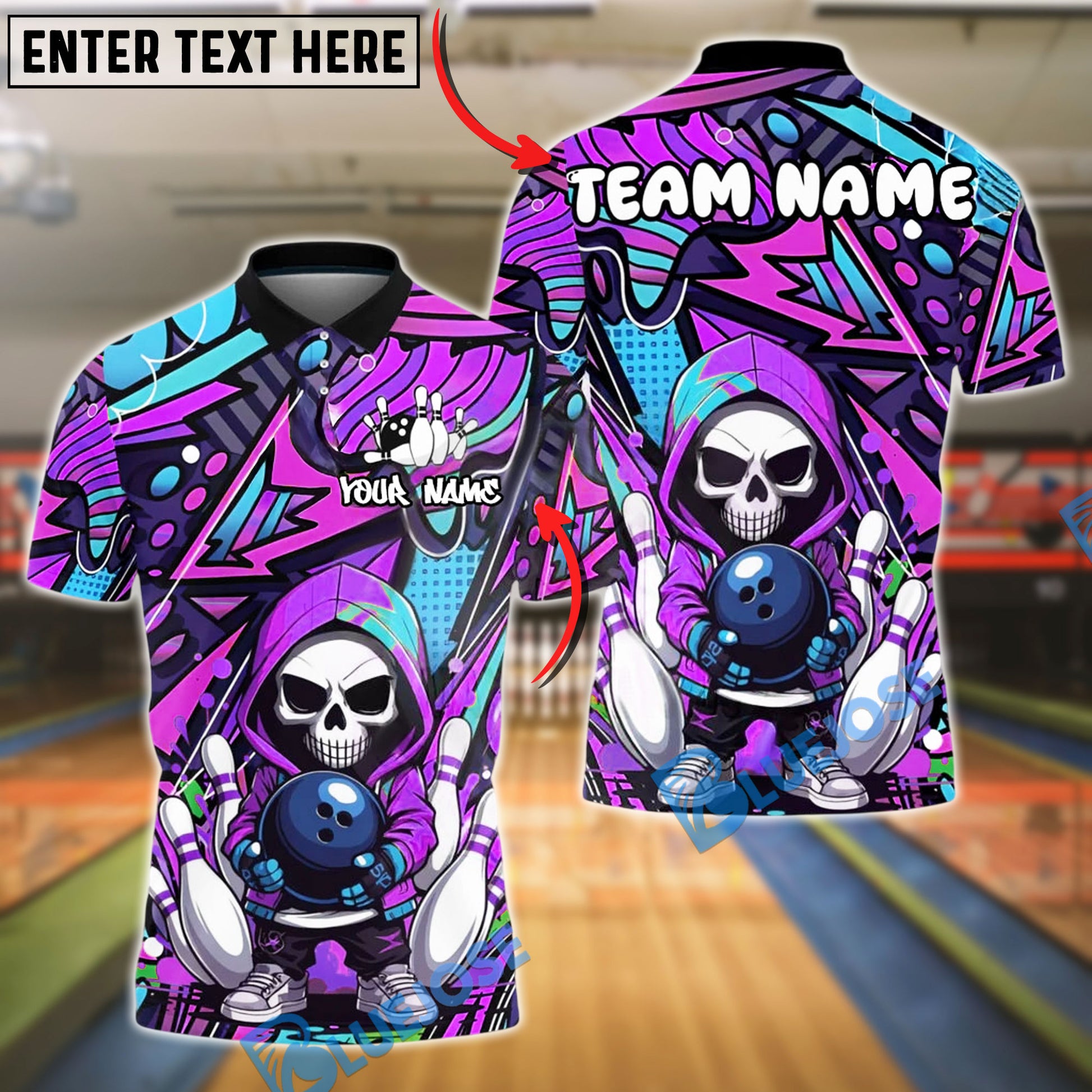 BlueJose Bowling And Pins Neon Skull Hoodie Graffiti Style Customized Name, Team Name 3D Shirt (4 Colors)