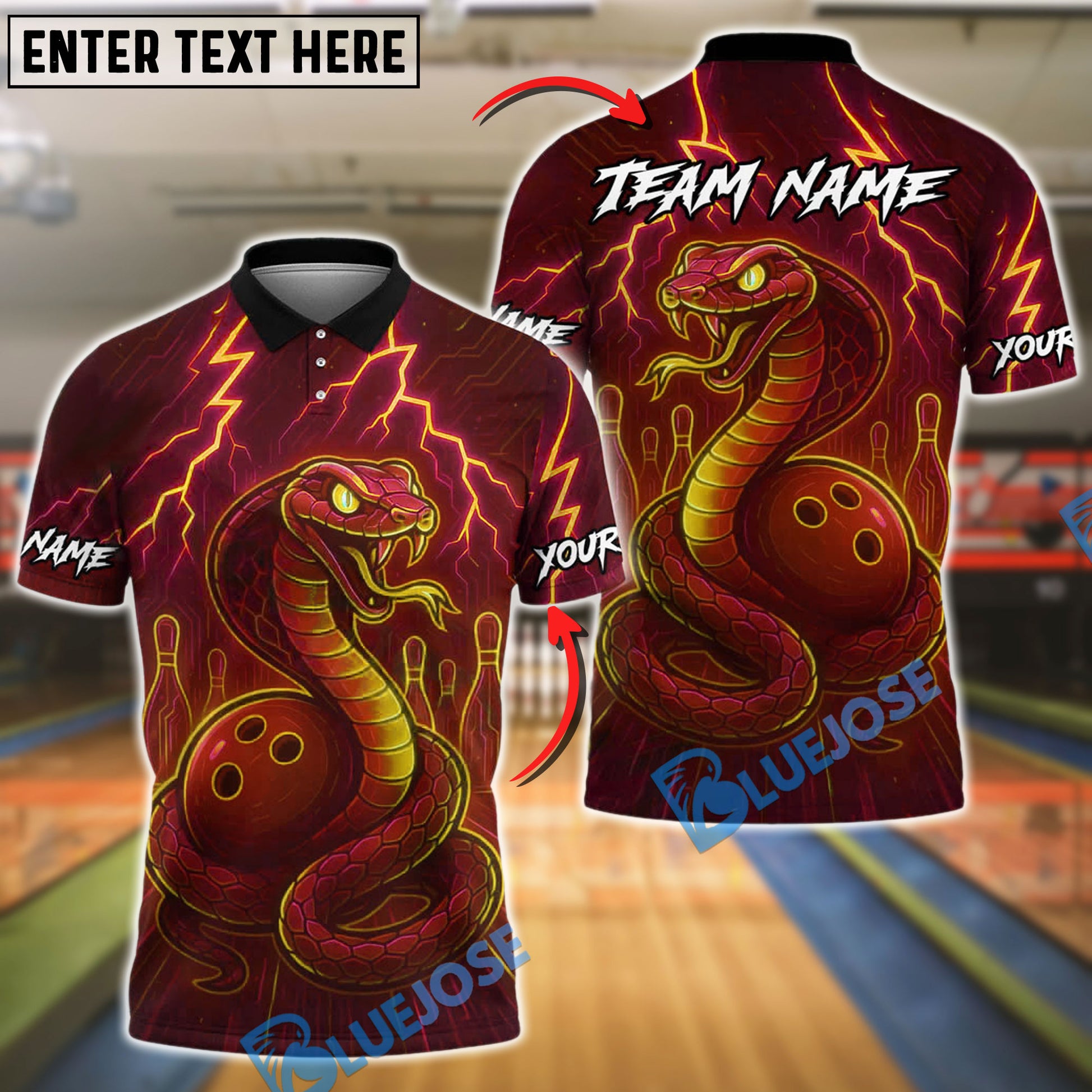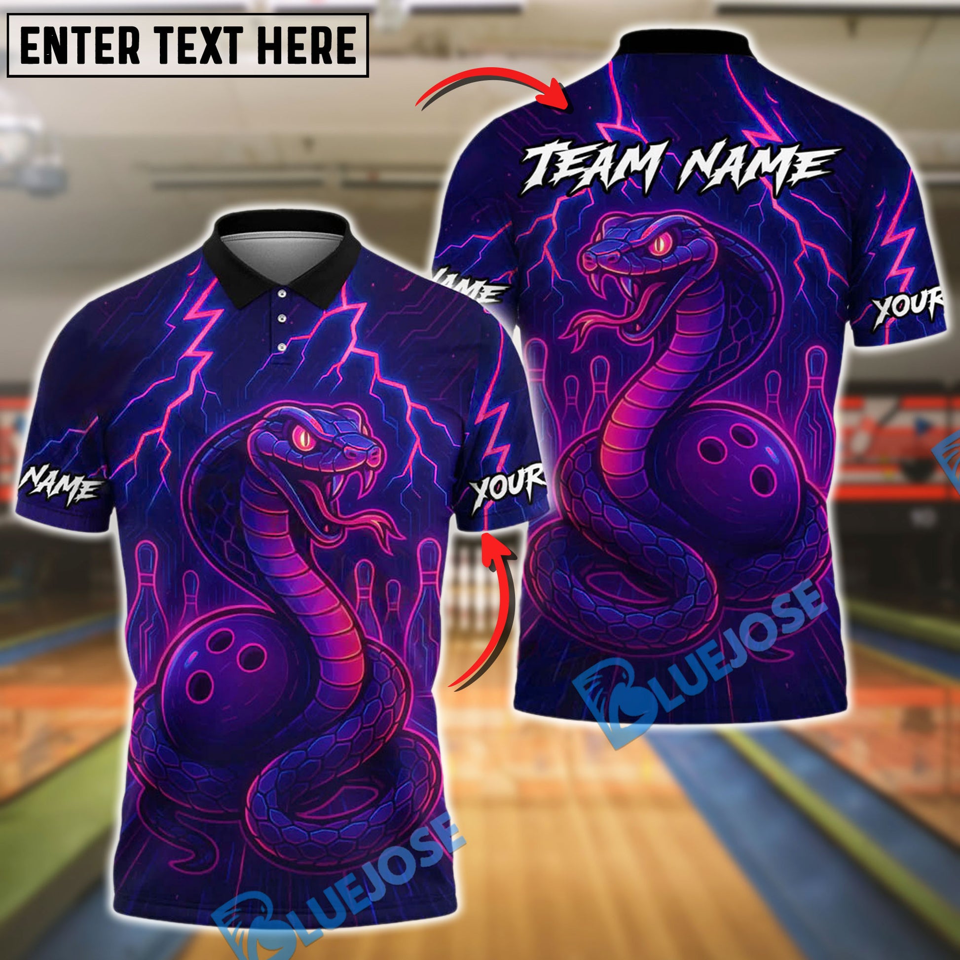 BlueJose Bowling And Pins Neon Venom Customized Name, Team Name 3D Shirt (4 Colors)
