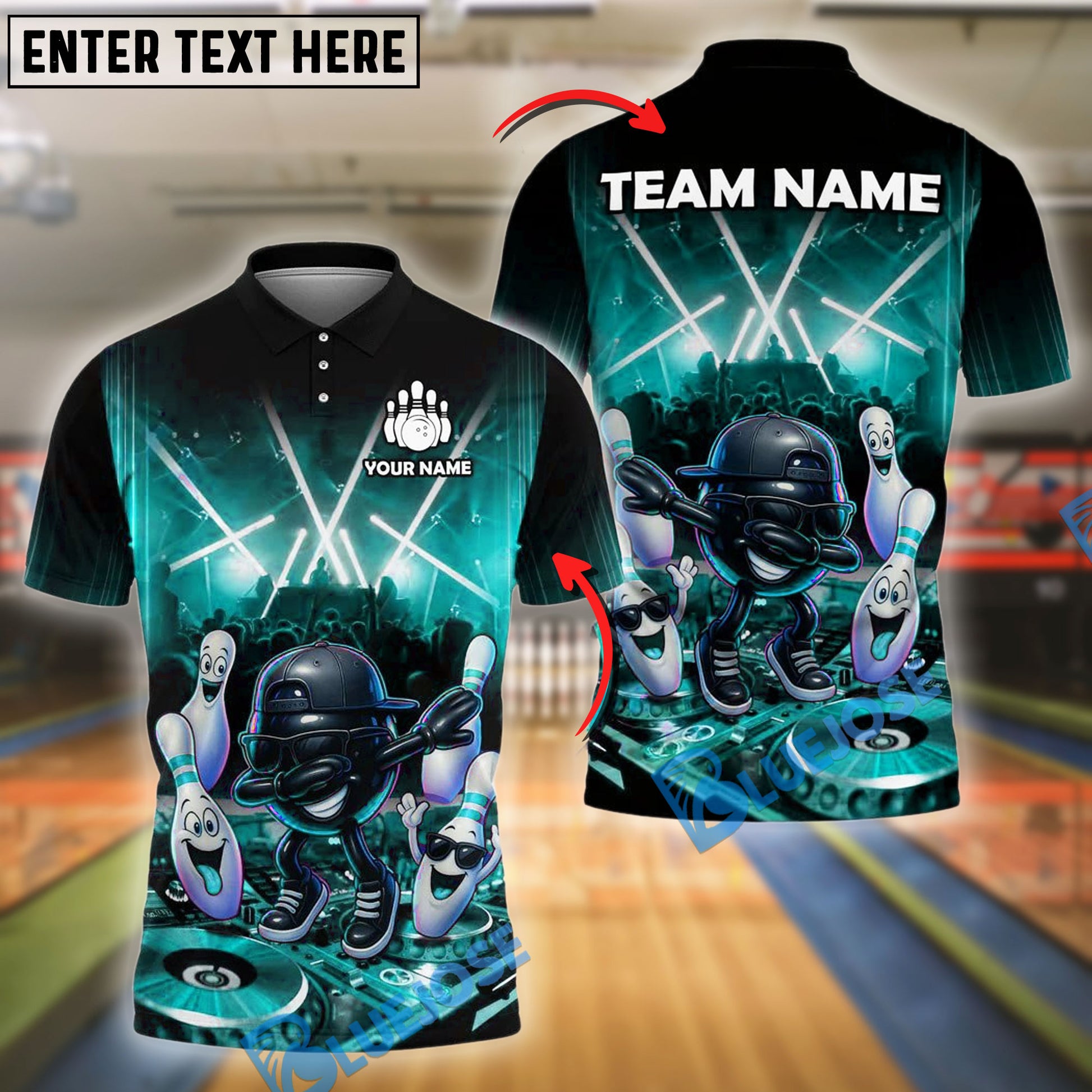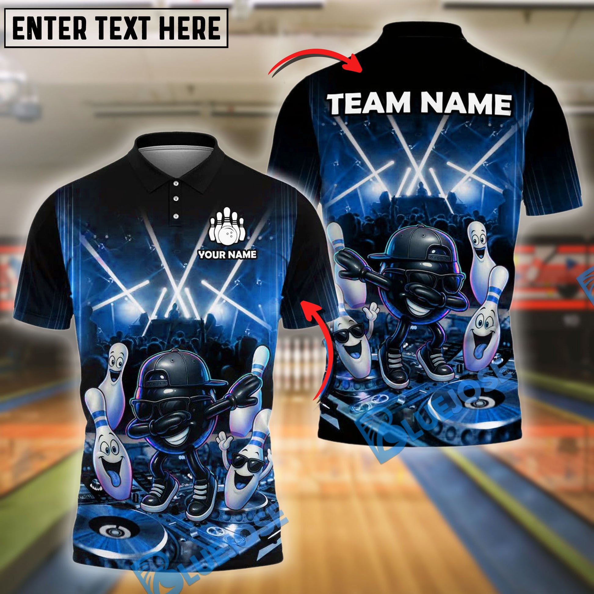 BlueJose Bowling And Pins Party Vibe DJ Lights Customized Name, Team Name 3D Shirt (4 Colors)