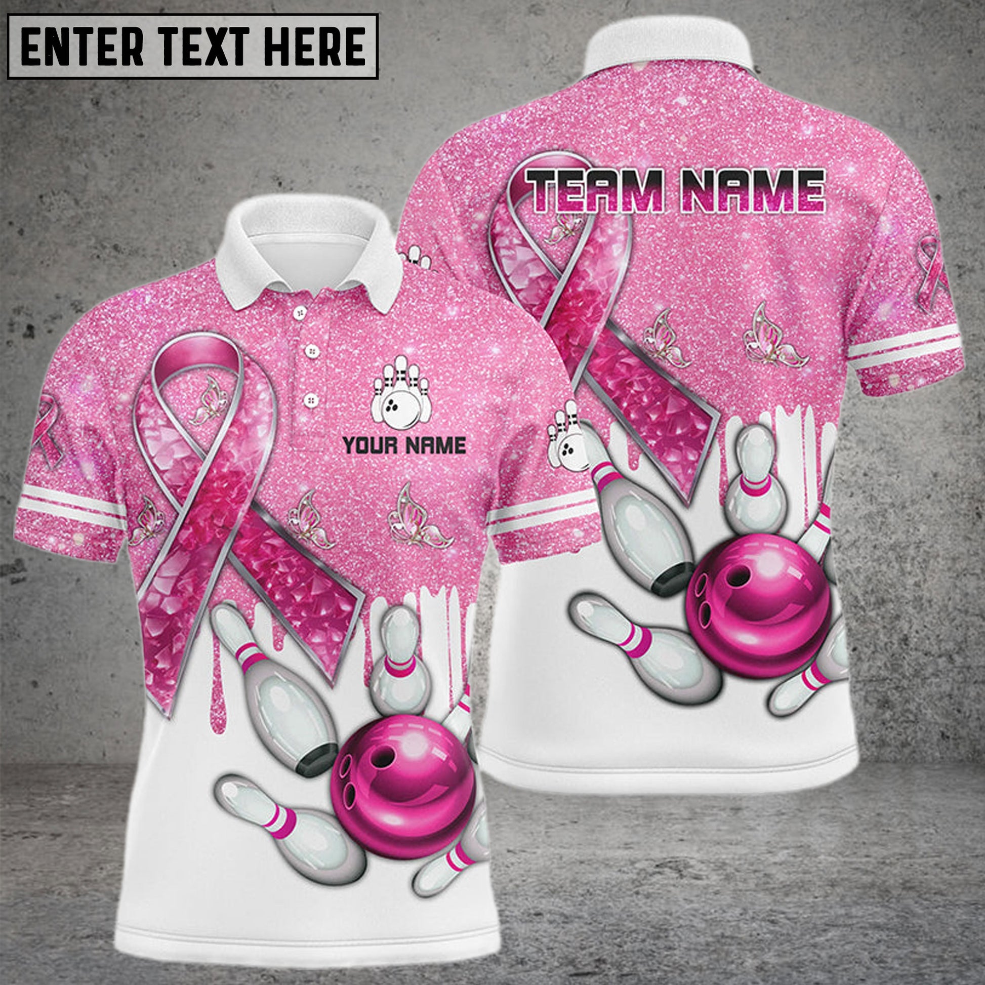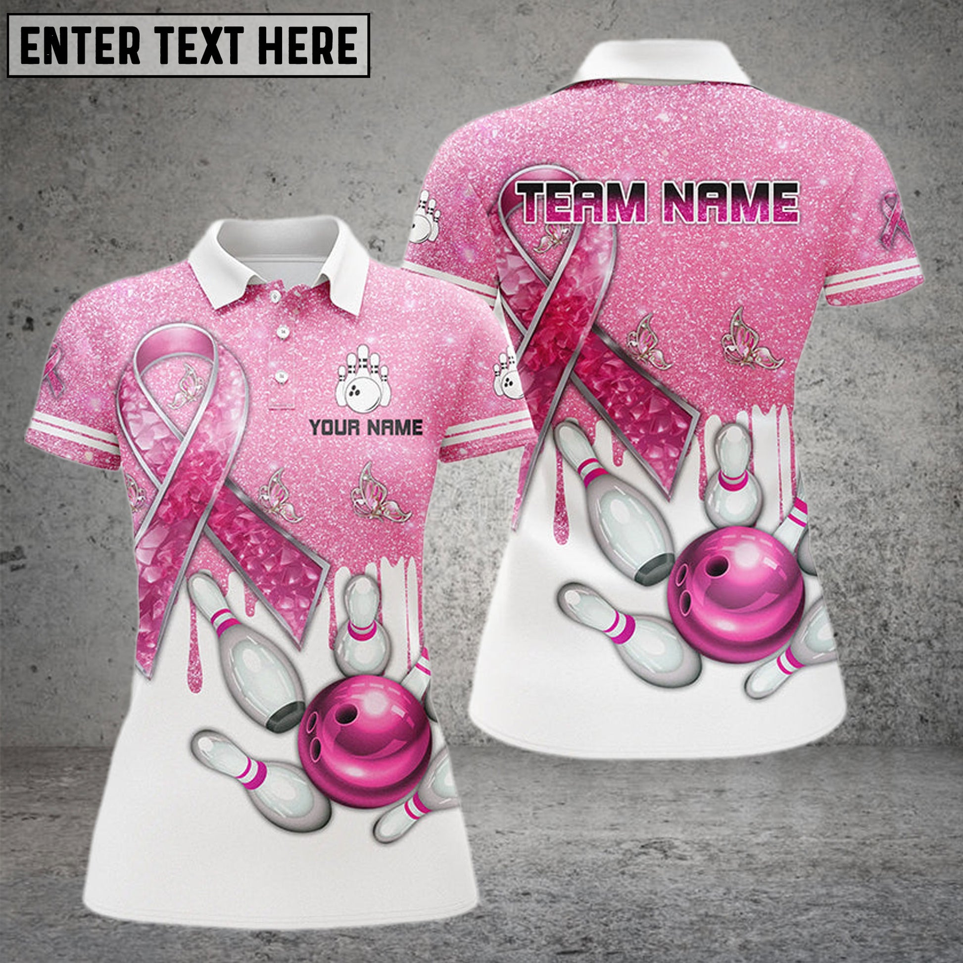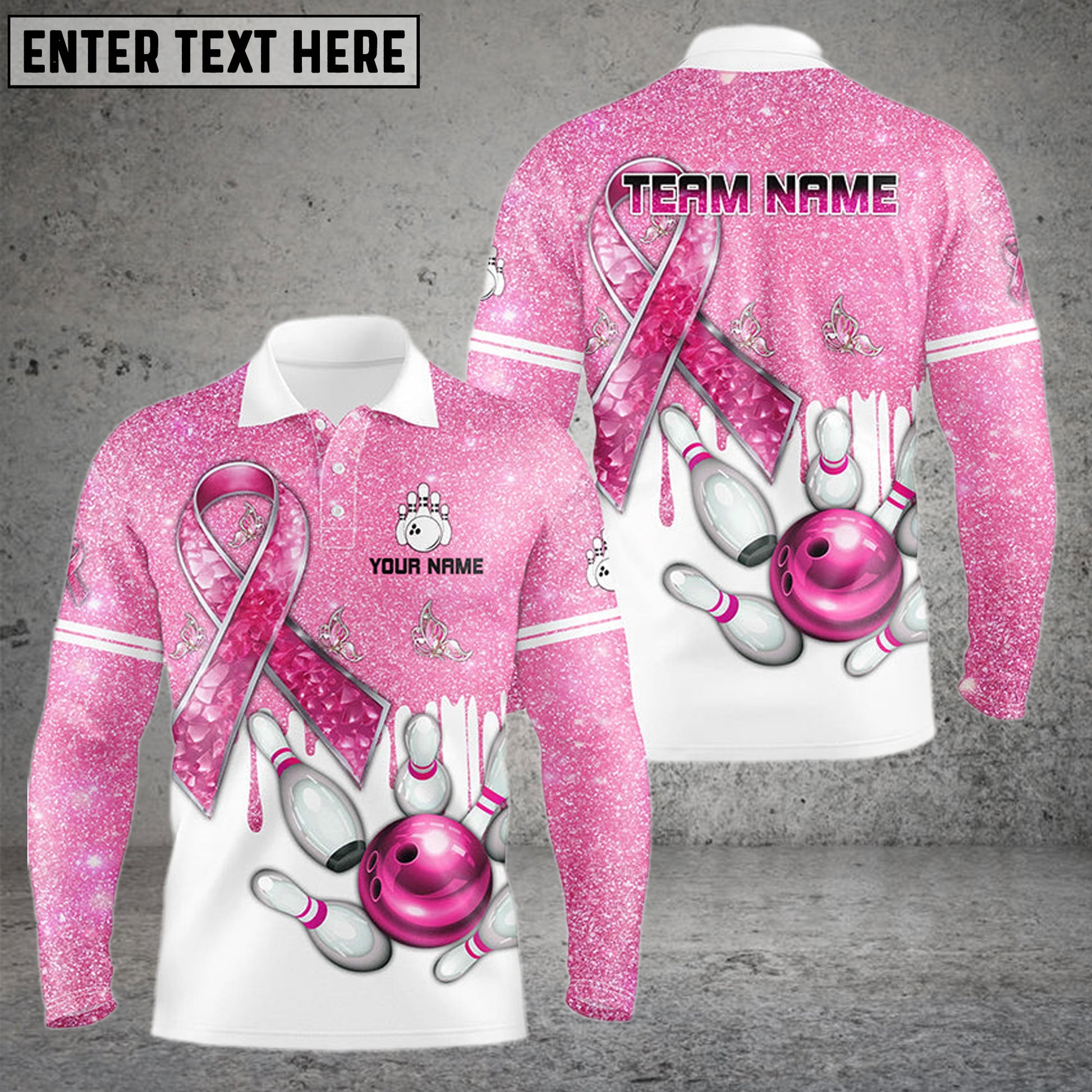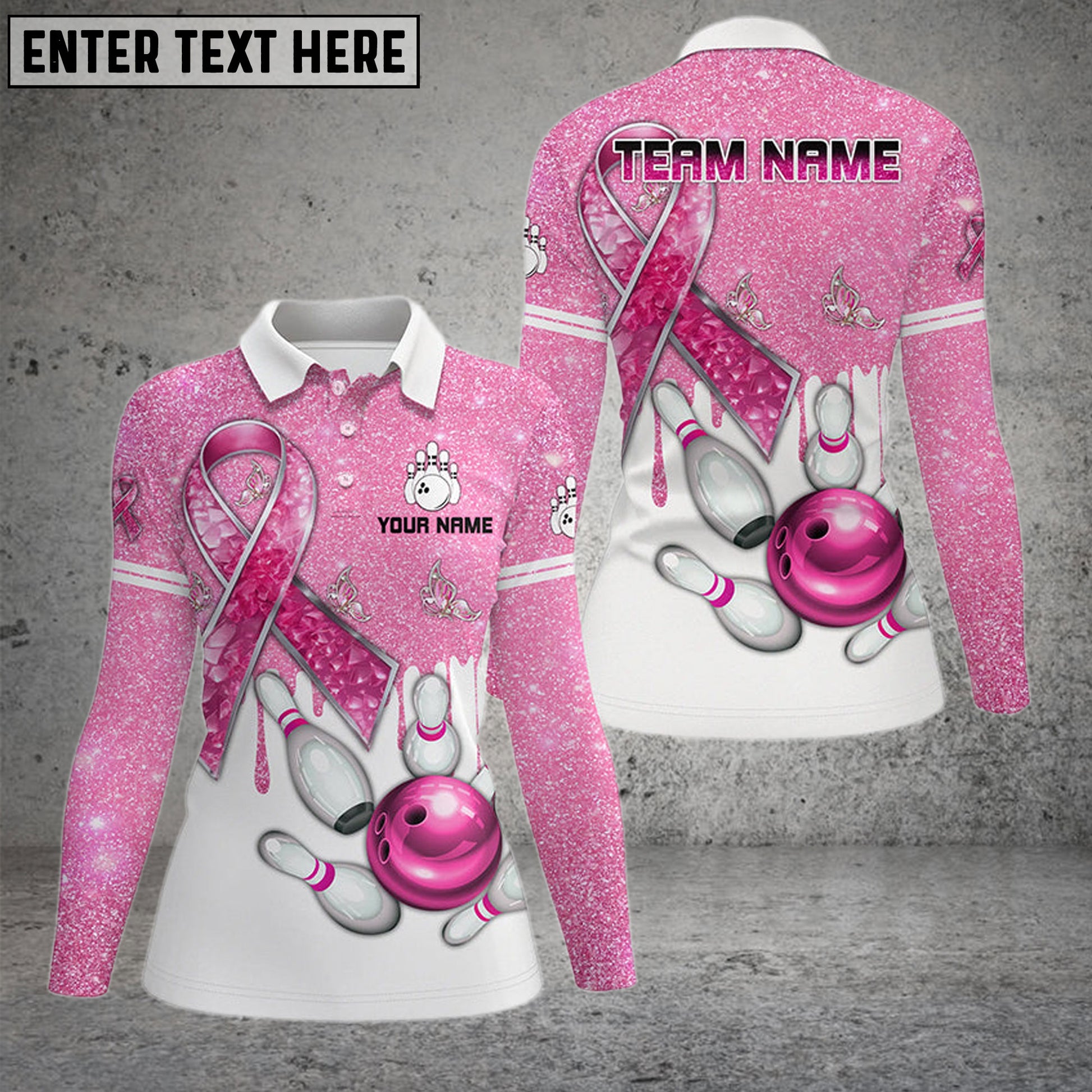 BlueJose Bowling And Pins Pink Ribbons Breast Cancer Bling Pattern Personalized Name 3D Shirts