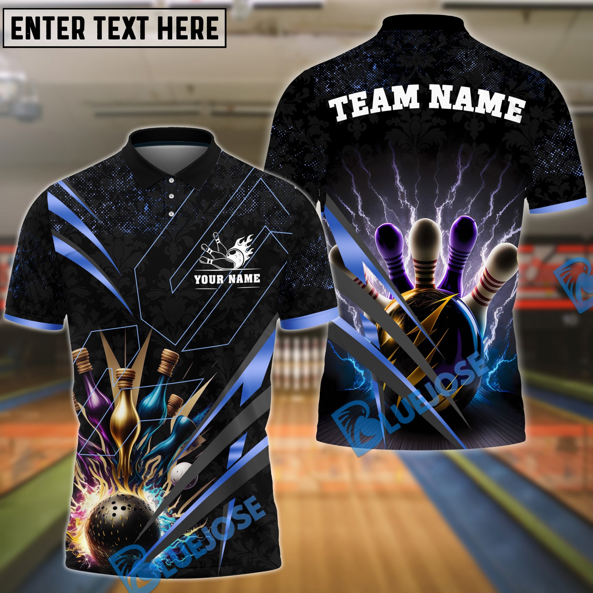 BlueJose Bowling And Pins Premium Multicolor Customized Name 3D Shirt (4 Colors)
