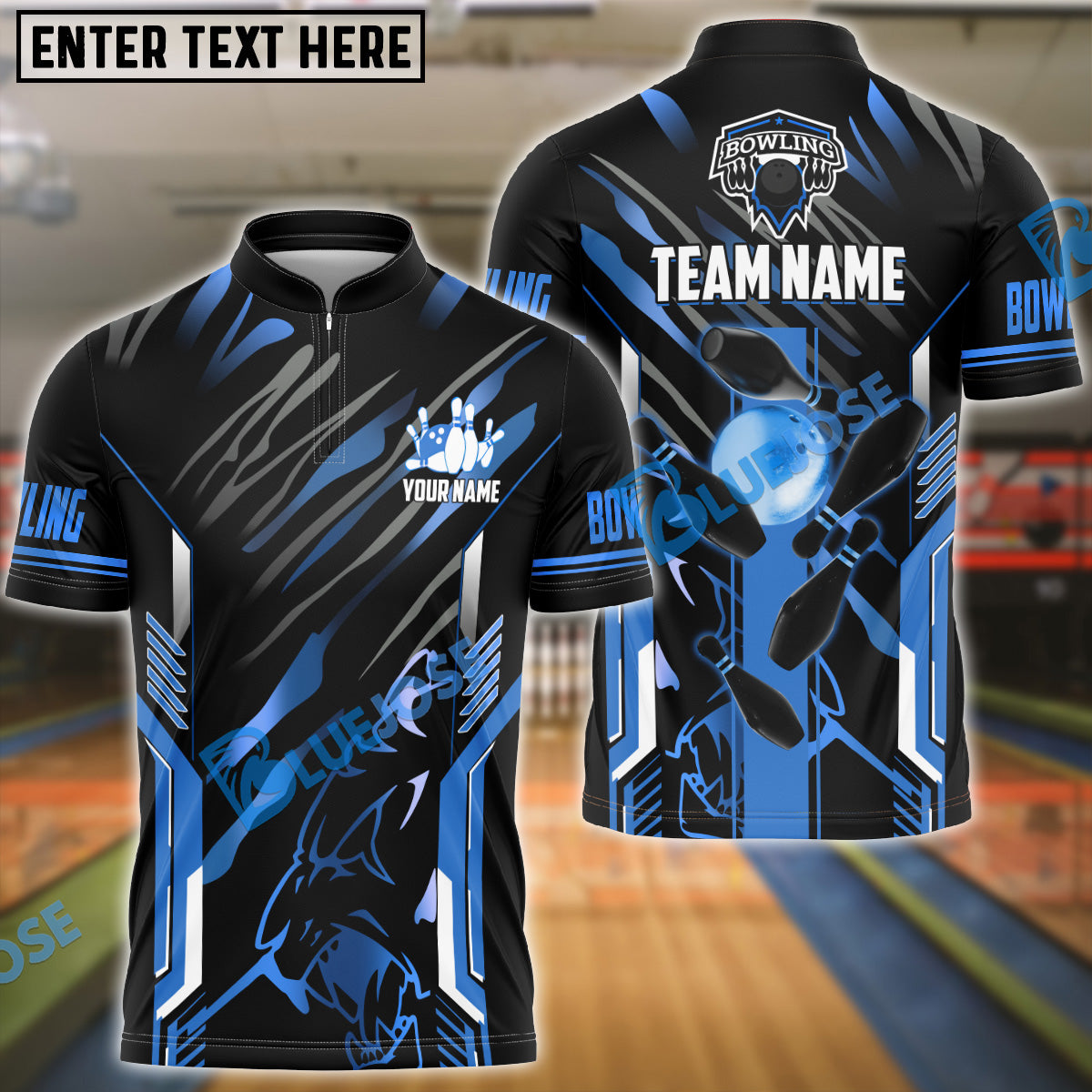 BlueJose Bowling And Pins Premium Panther Pattern Customized Name 3D Shirt (4 Colors)