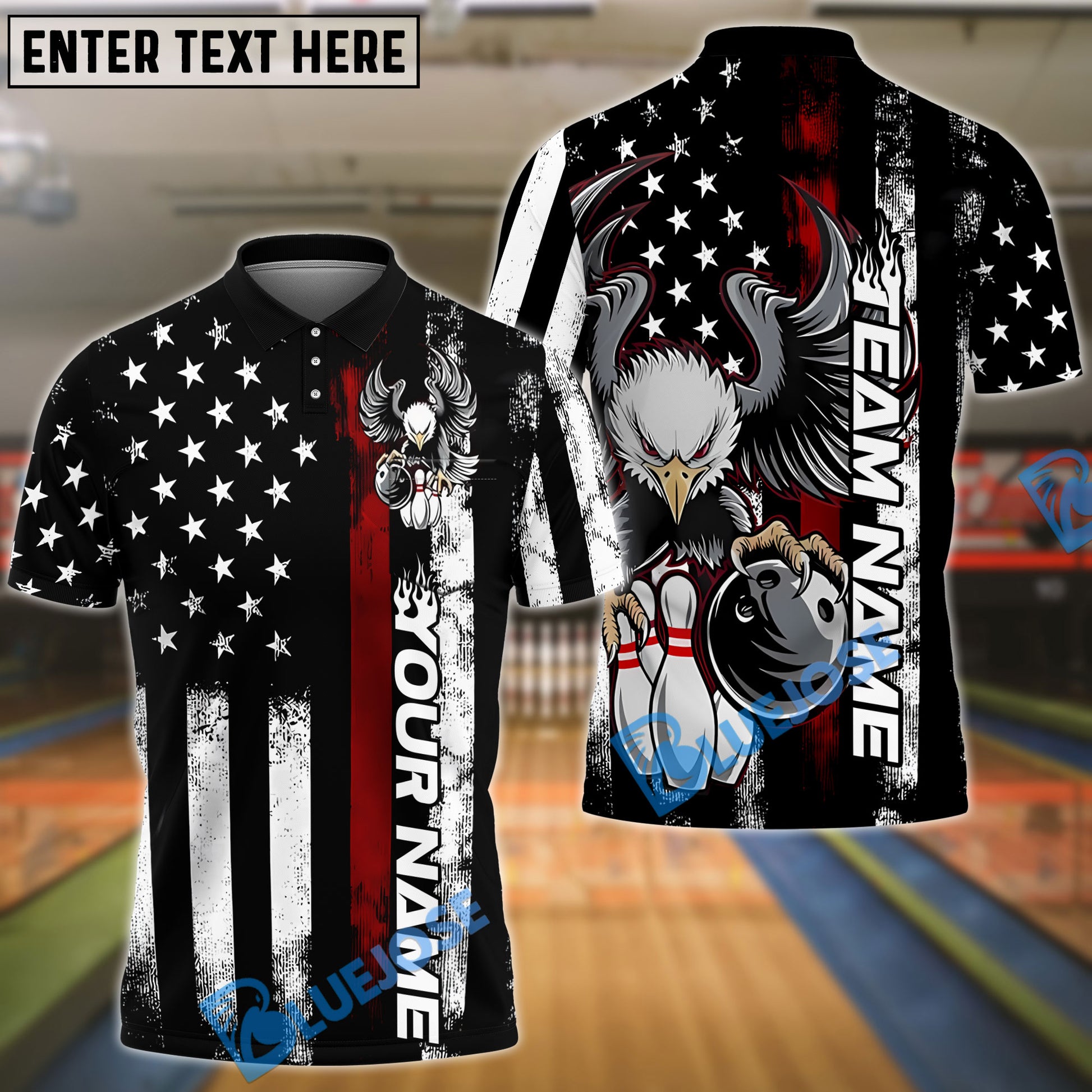 BlueJose Bowling And Pins Retro Eagle US Flag Customized Name And Team Name 3D Shirt (4 Colors)